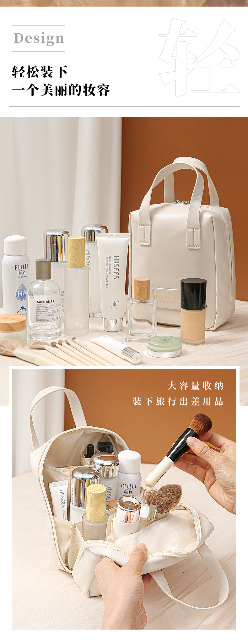 휴대용 쉘 화장품 가방, 대용량, 고급, 여행용 휴대용 다층 분류 세면도구 가방, 여성용 소형 기내 가방스토어 가기