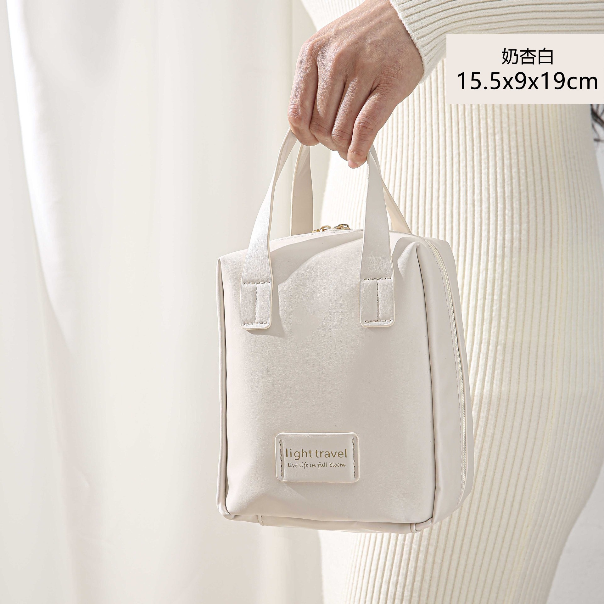 • 두꺼운 주름진 작은 가방-흰색 우유 살구색