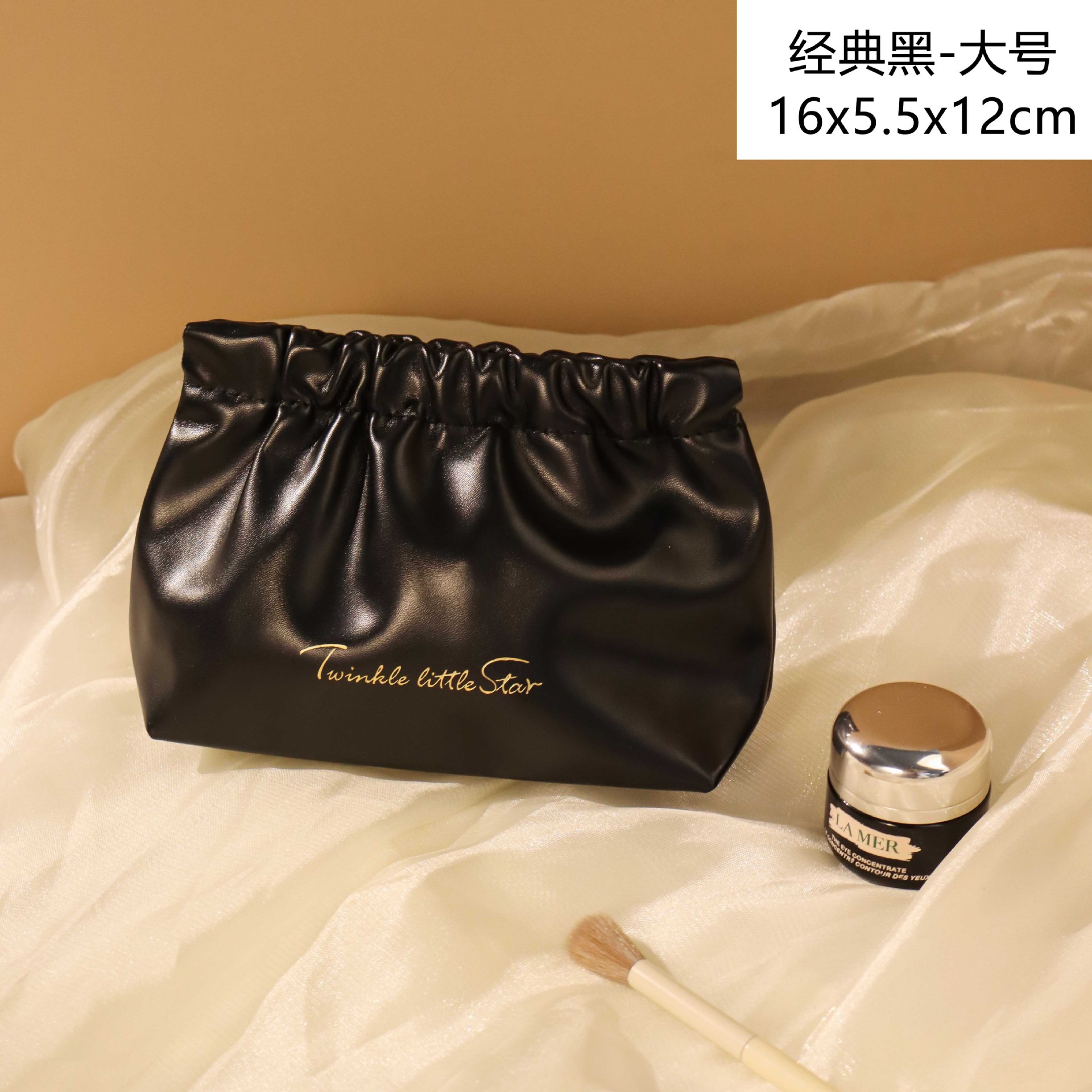 • 두꺼운 구겨진 파우치-클래식 블랙