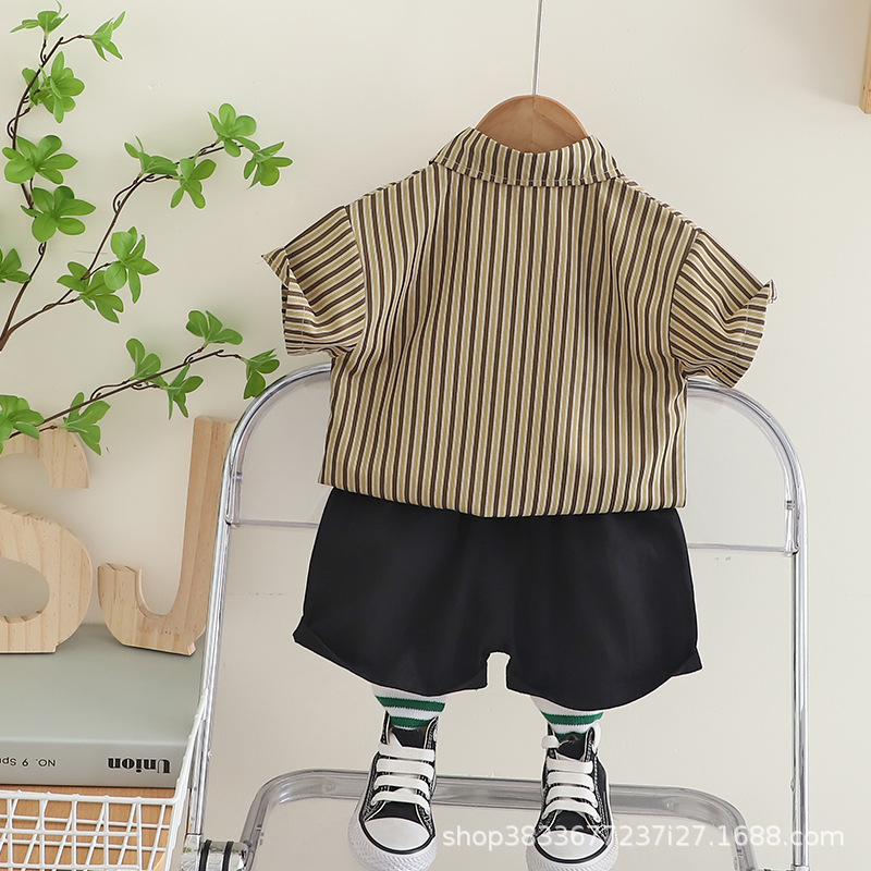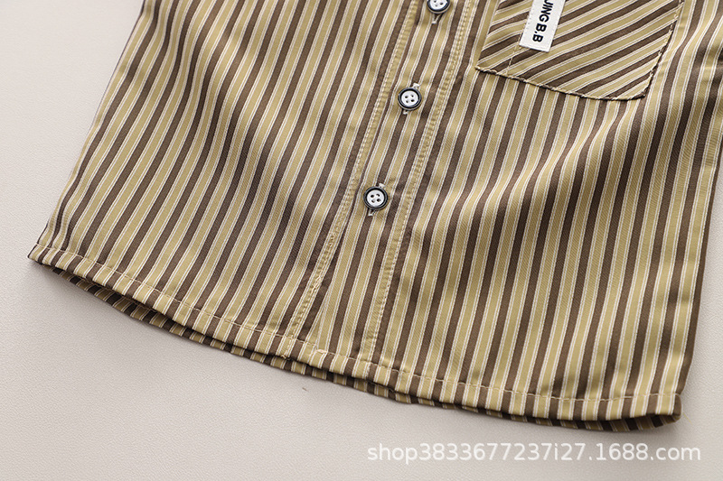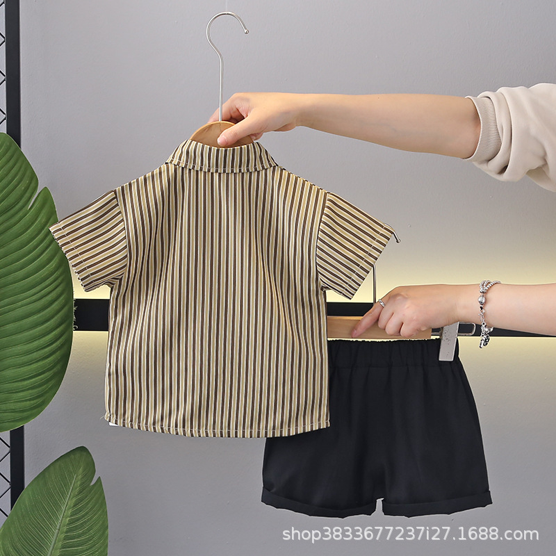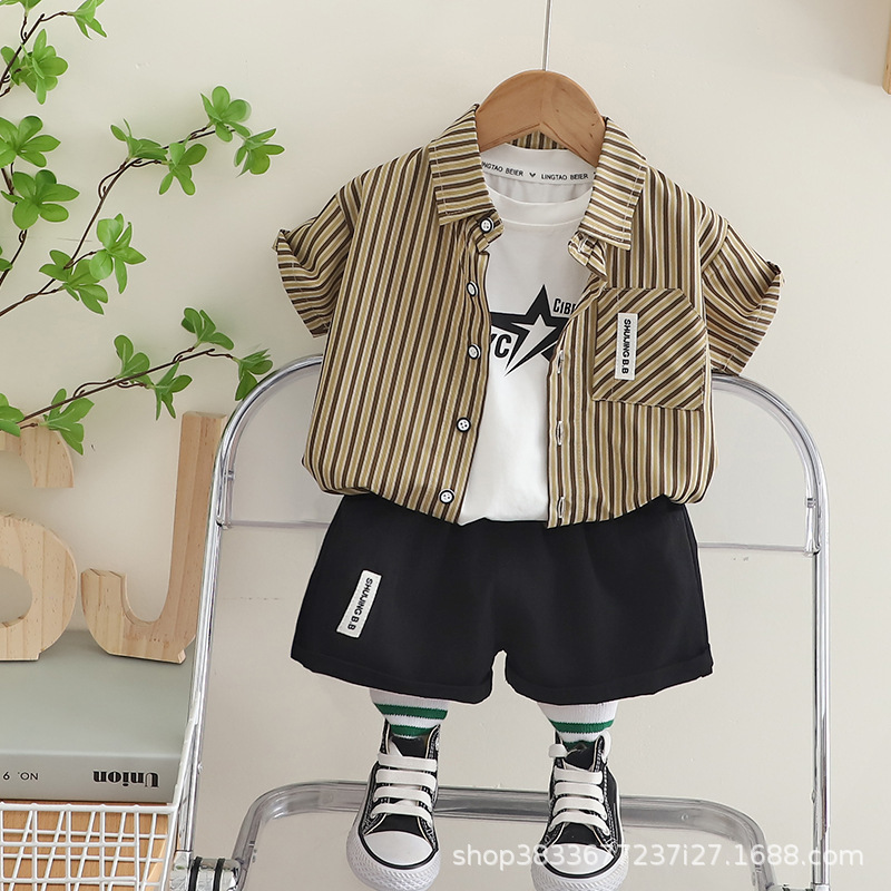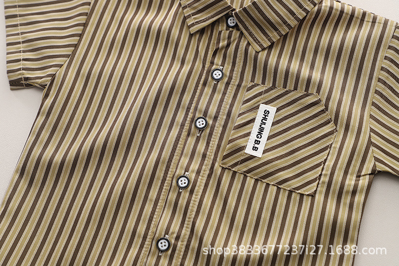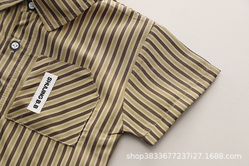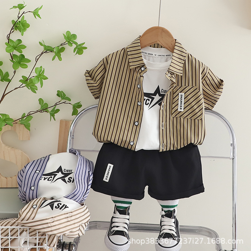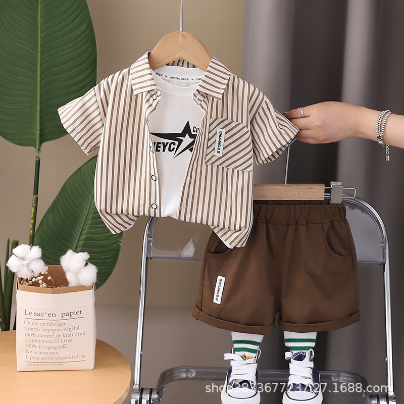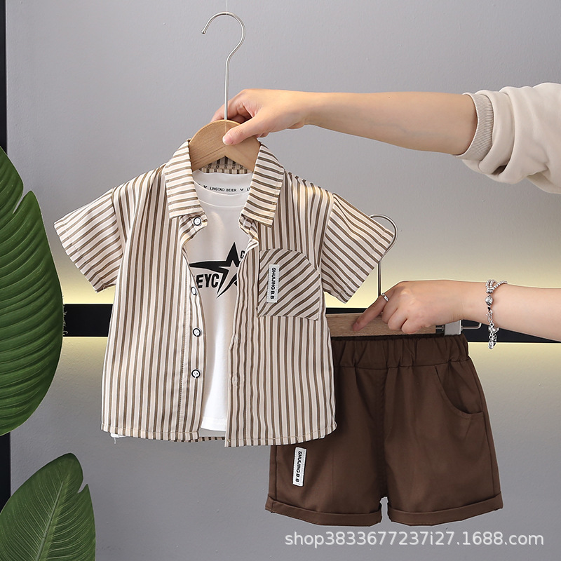 남자들의 여름 셔츠 세트 새로운 짧은 소매 반바지 서양식 어린이 수평 포켓 카디건 3 종 머리카락 세트