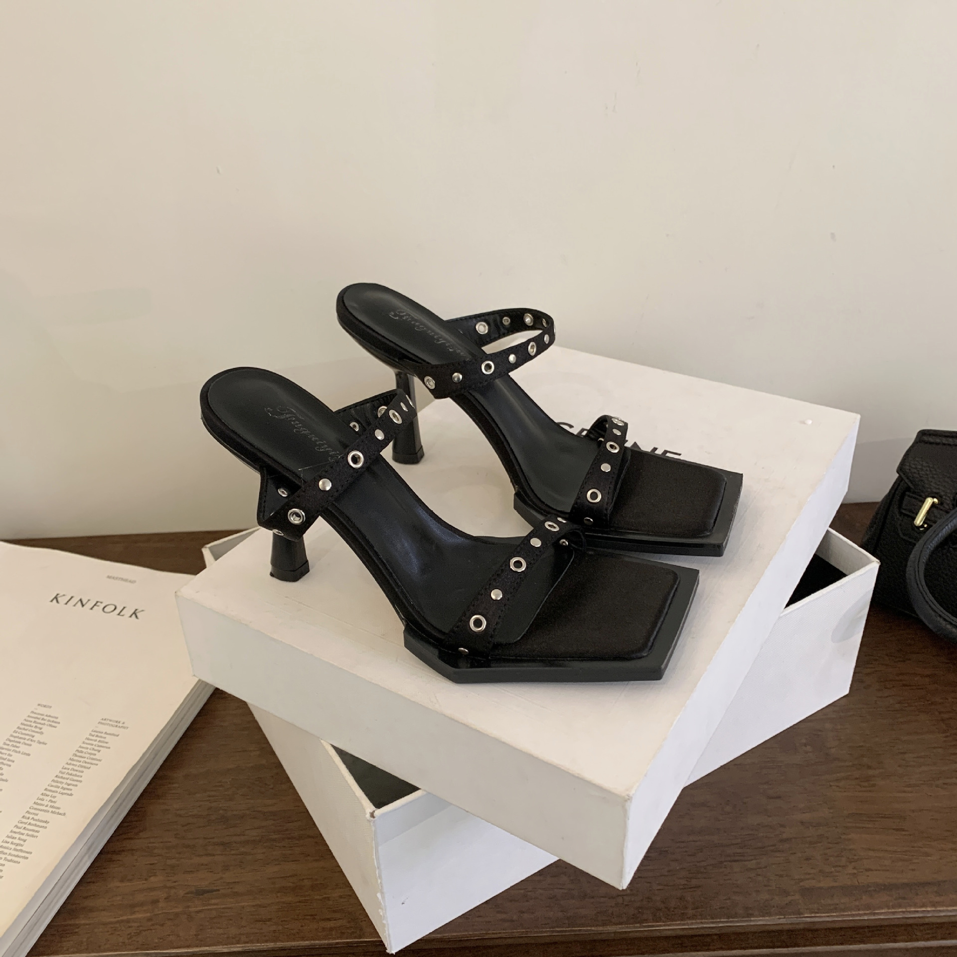 2024 새로운 패션 스퀘어 발가락 오픈 발가락 다재다능한 패션 하이힐 하프롭 여성용 샌들