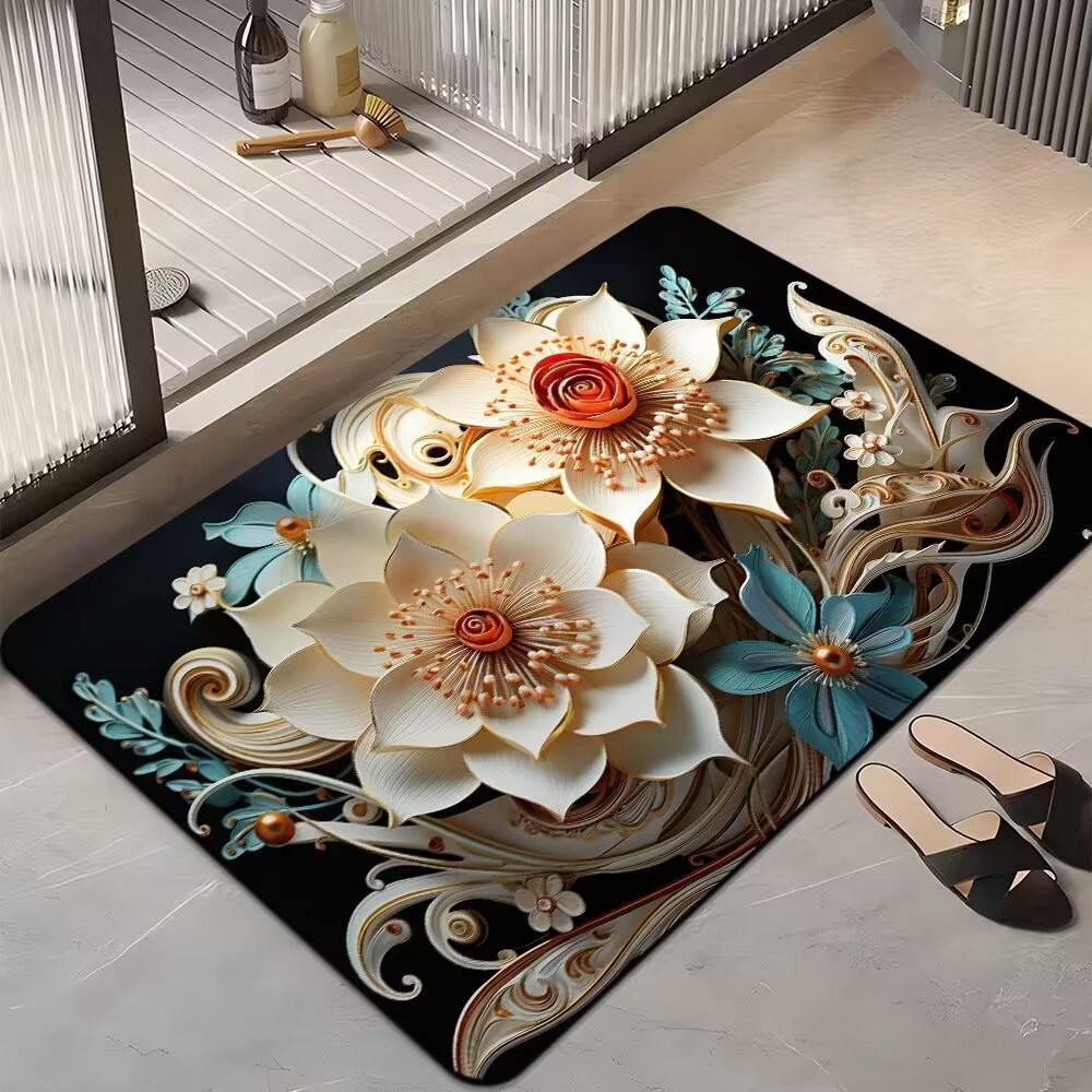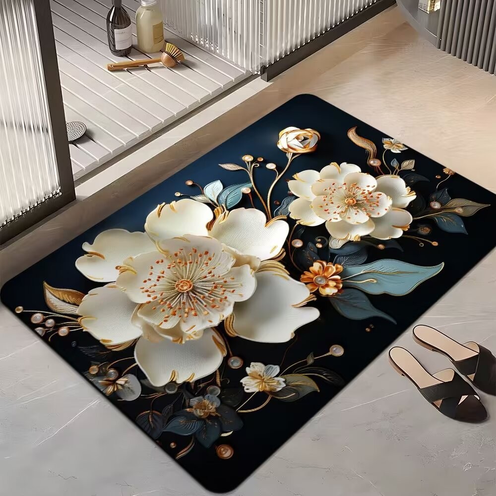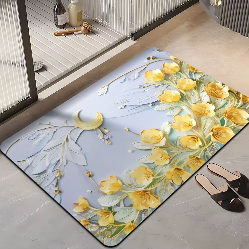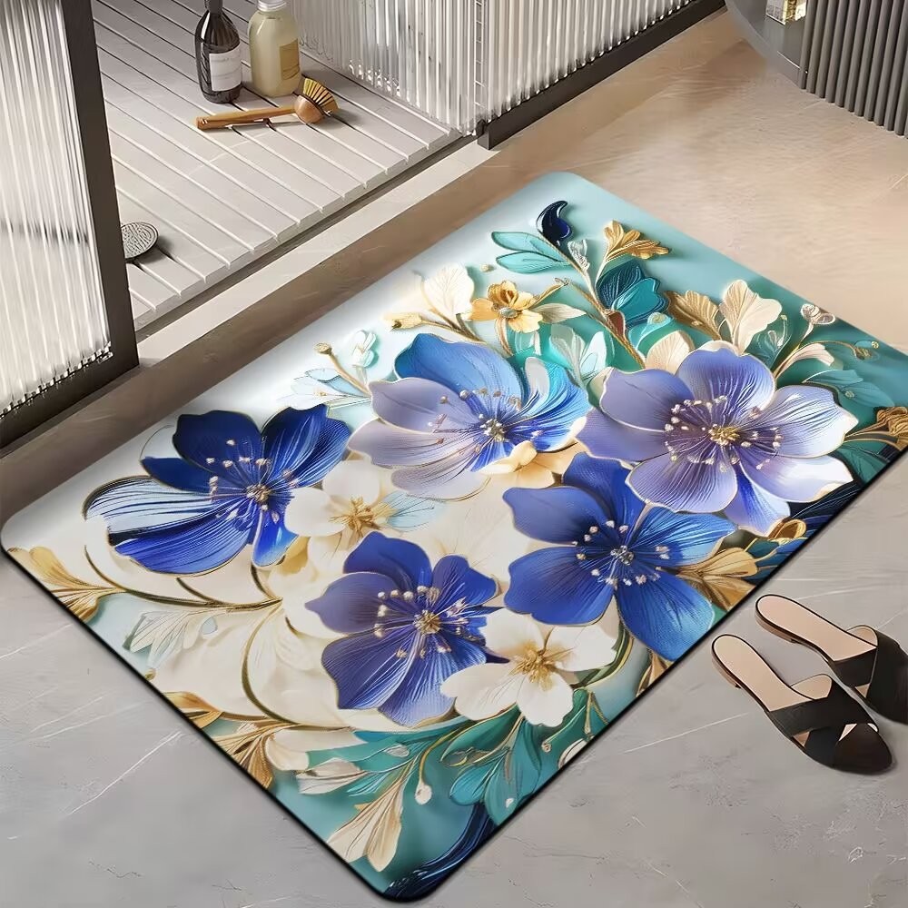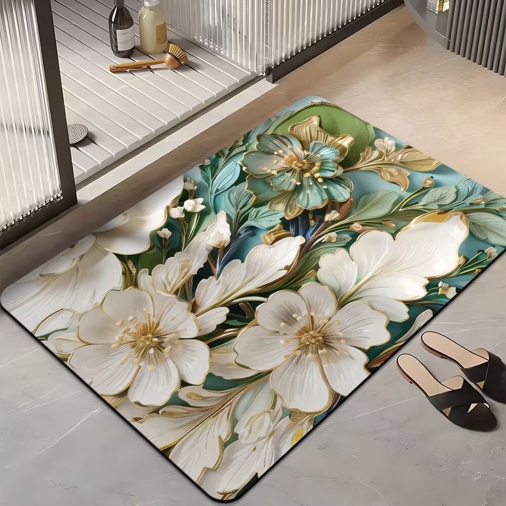 국경 간 꽃 미끄럼 방지 욕실 흡수성 바닥 매트 가정용 빠른 건조 발 매트 욕실 침실 카펫 문 매트