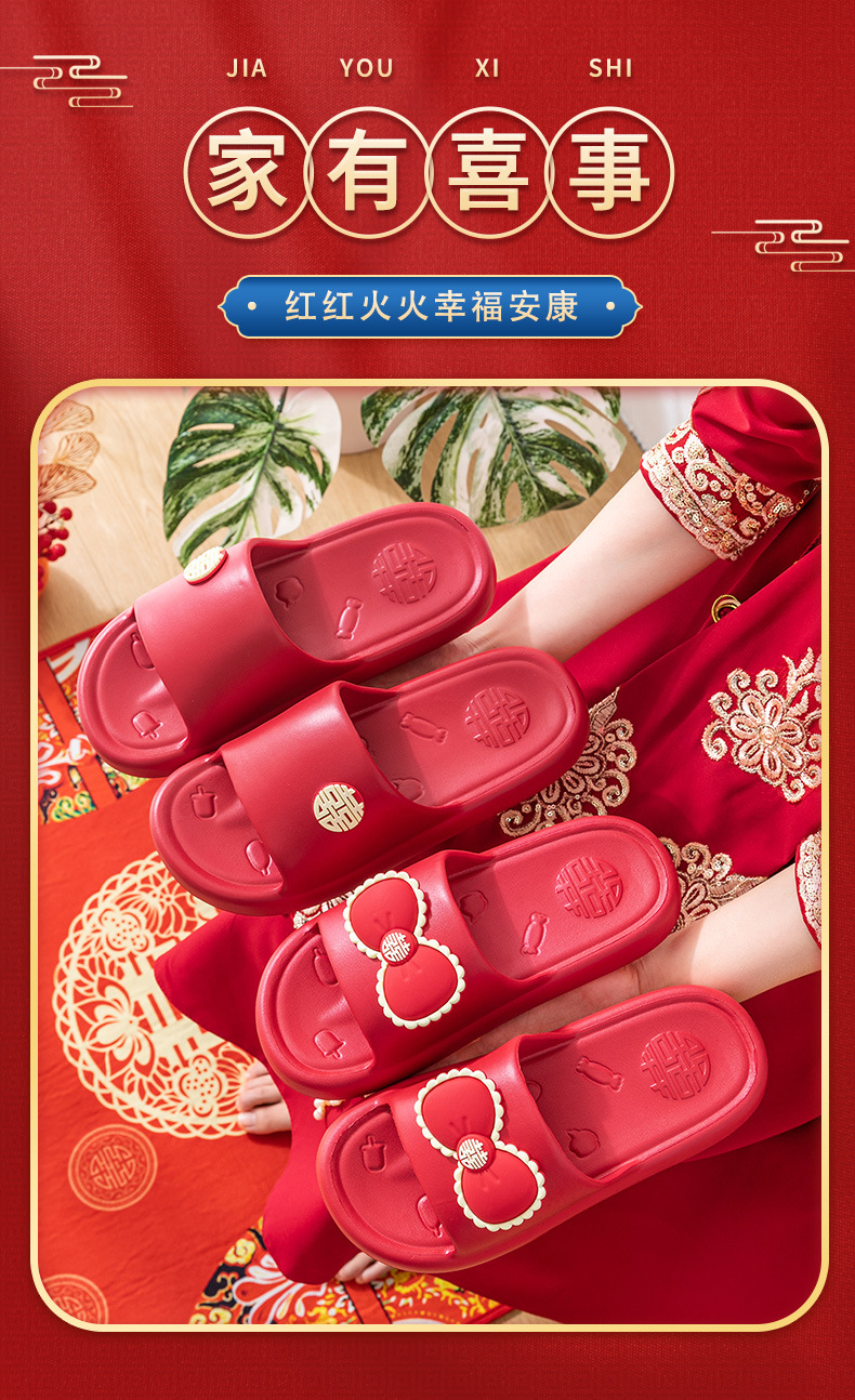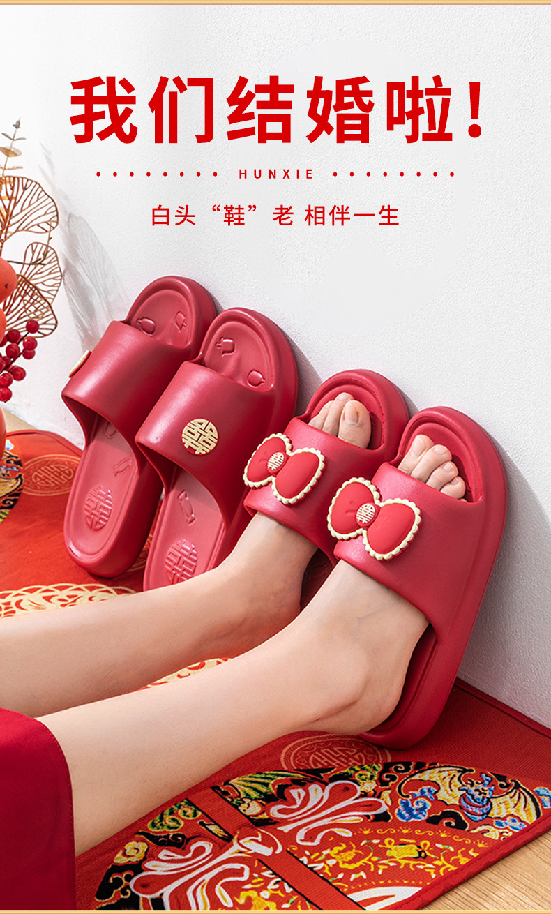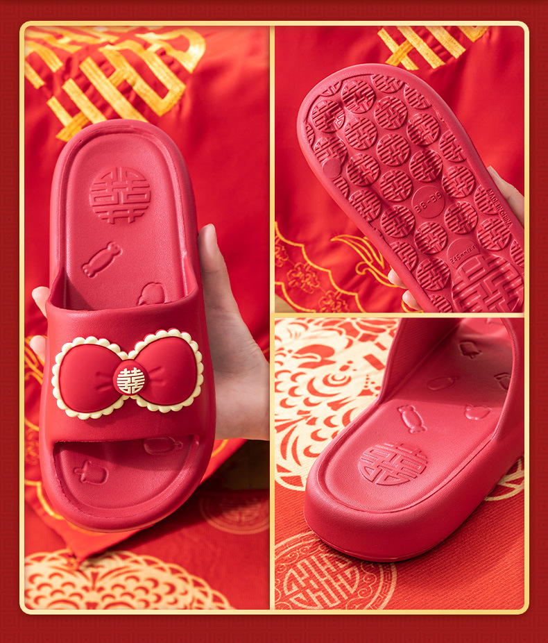 배설물 EVA를 밟는 여성을위한 웨딩 슬리퍼 올해 붉은 축제 홈 2024 새로운 두꺼운 밑창 웨딩 슈즈 여름스토어 가기