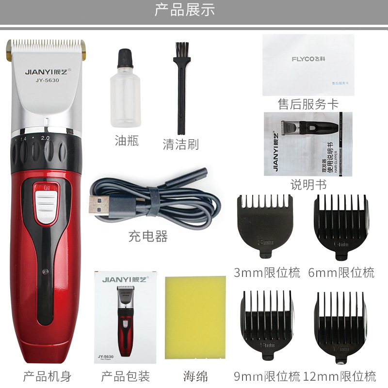 Jianyi 전기 클리퍼 5630 리튬 배터리 USB 충전식 전기 클리퍼 이발기 성인 이발기