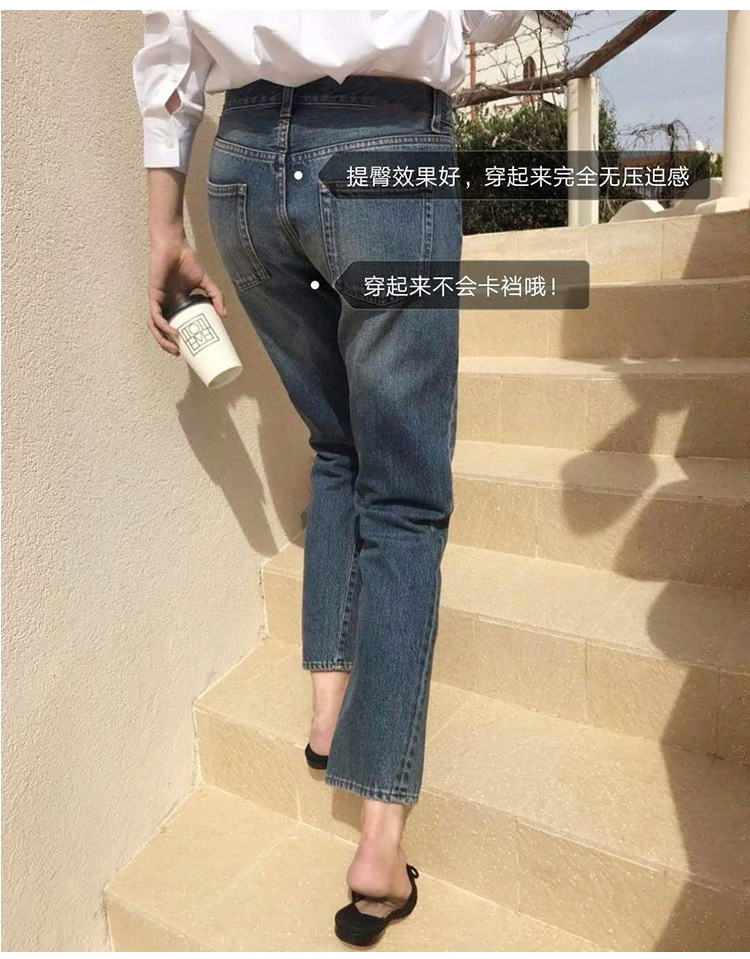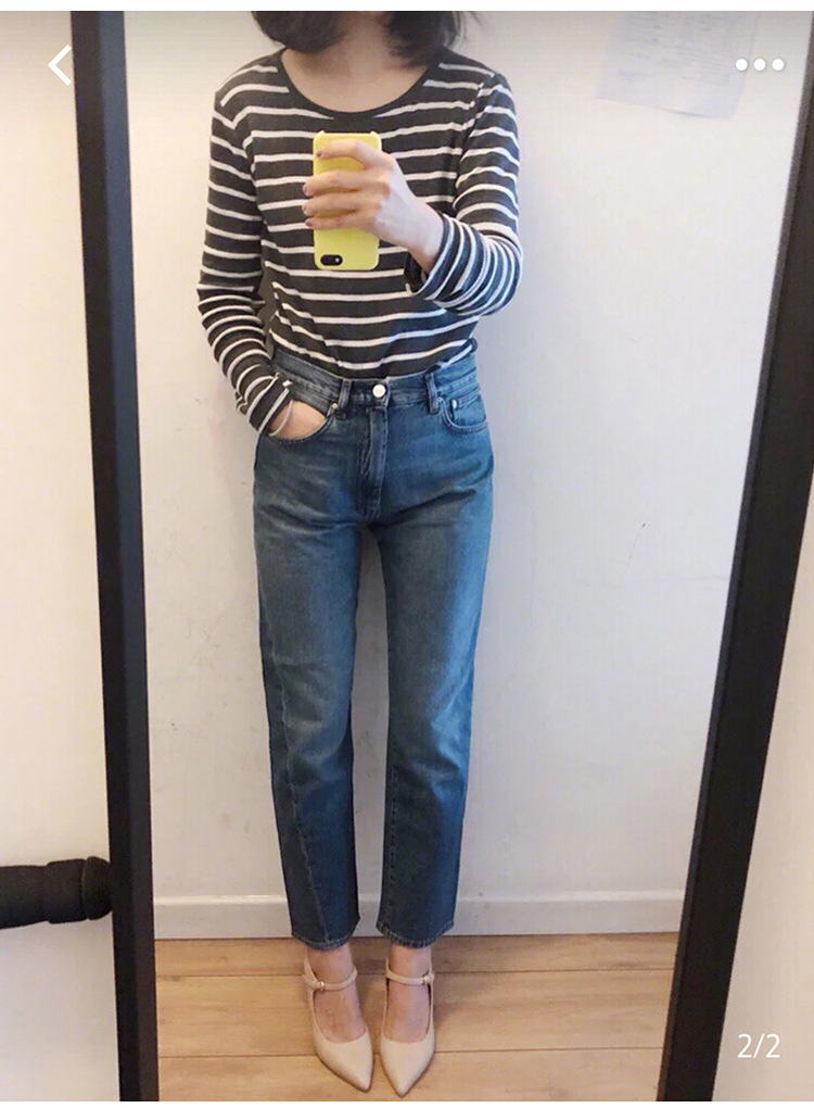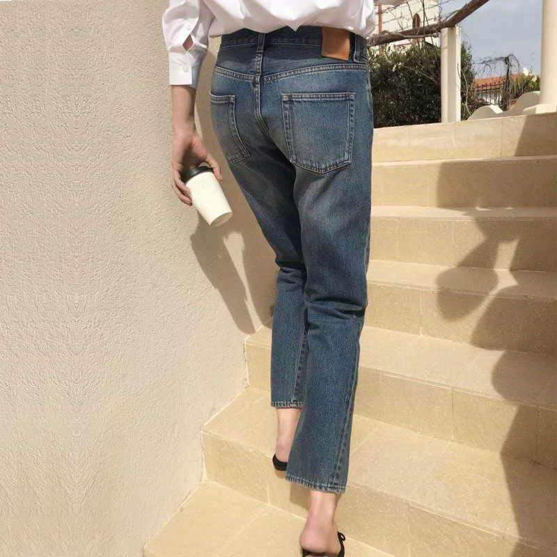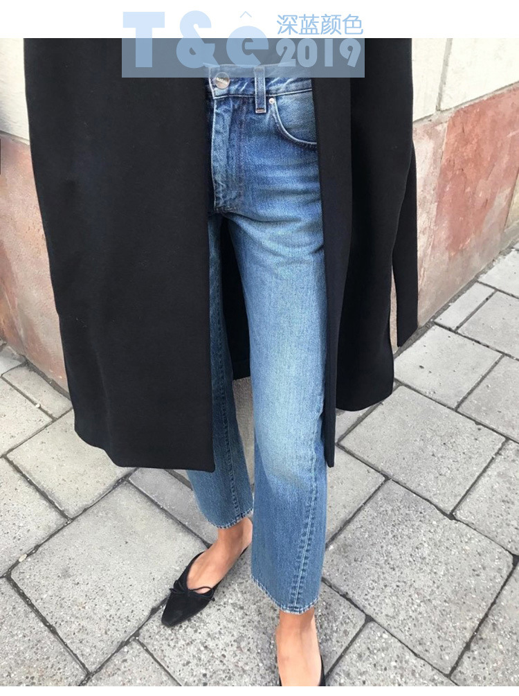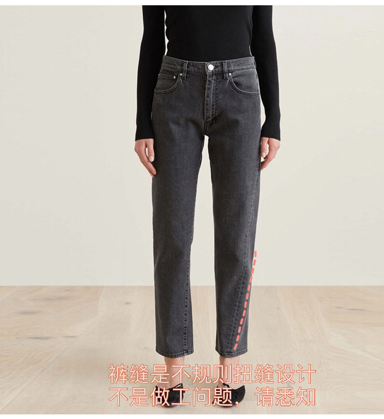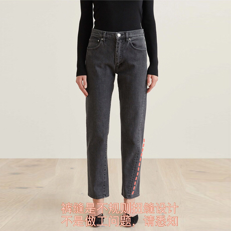 스팟 TOT 청바지 여성 Liu Wen 같은 스타일 봄과 가을 새로운 슬리밍 트위스트 스티치 높은 허리 스트레이트 인 자른 바지 바지스토어 가기