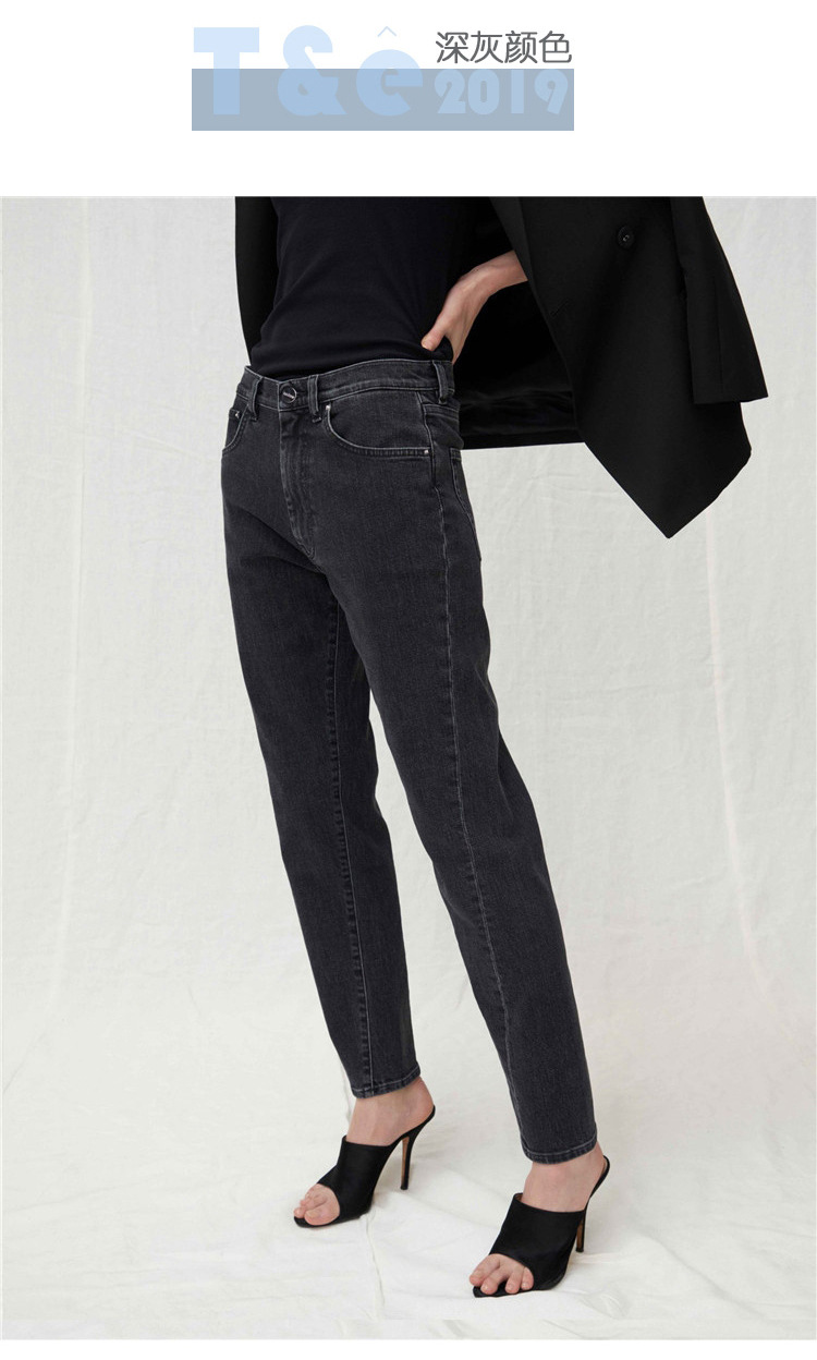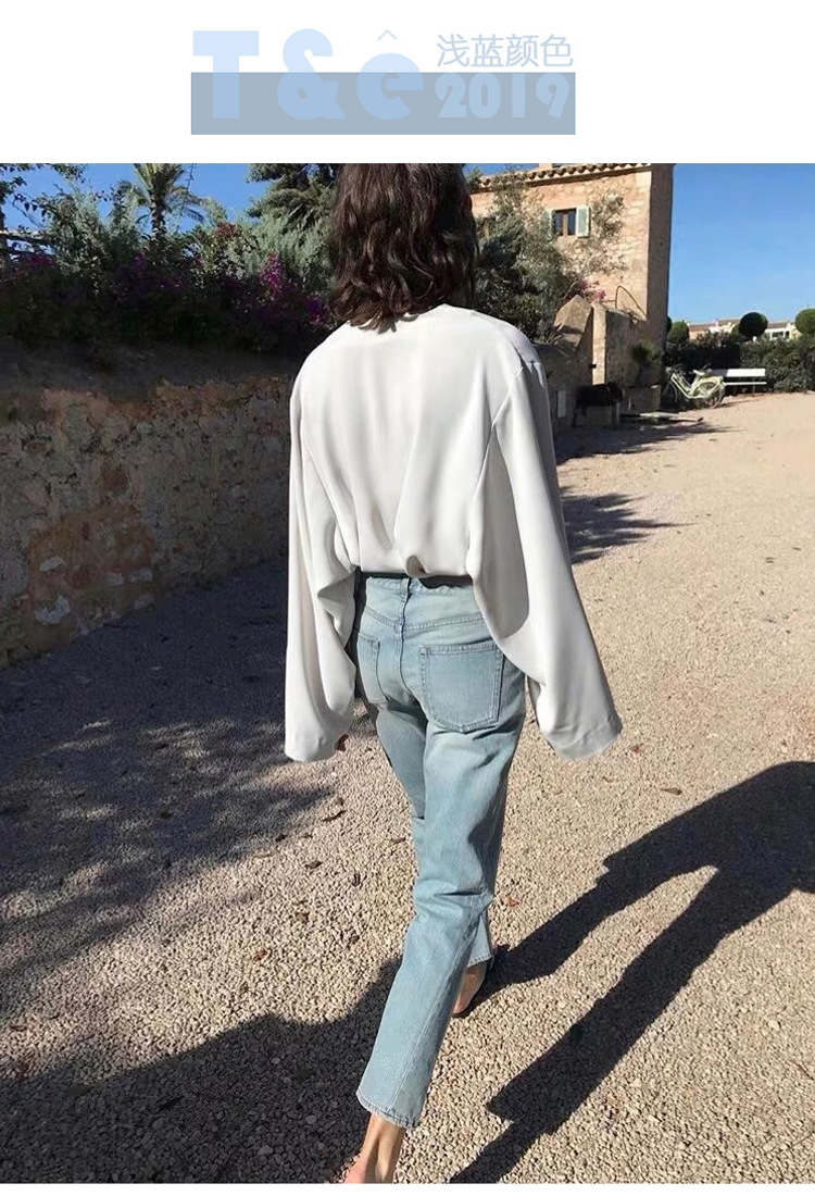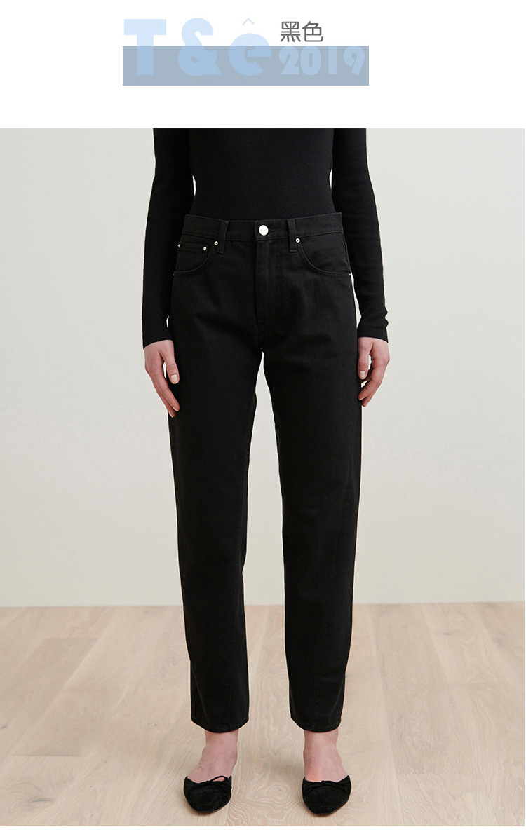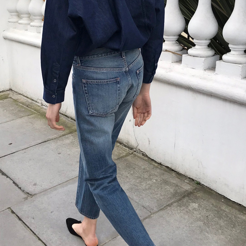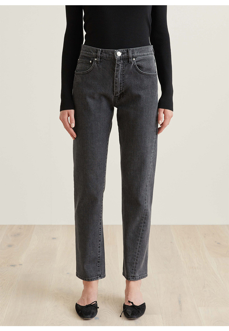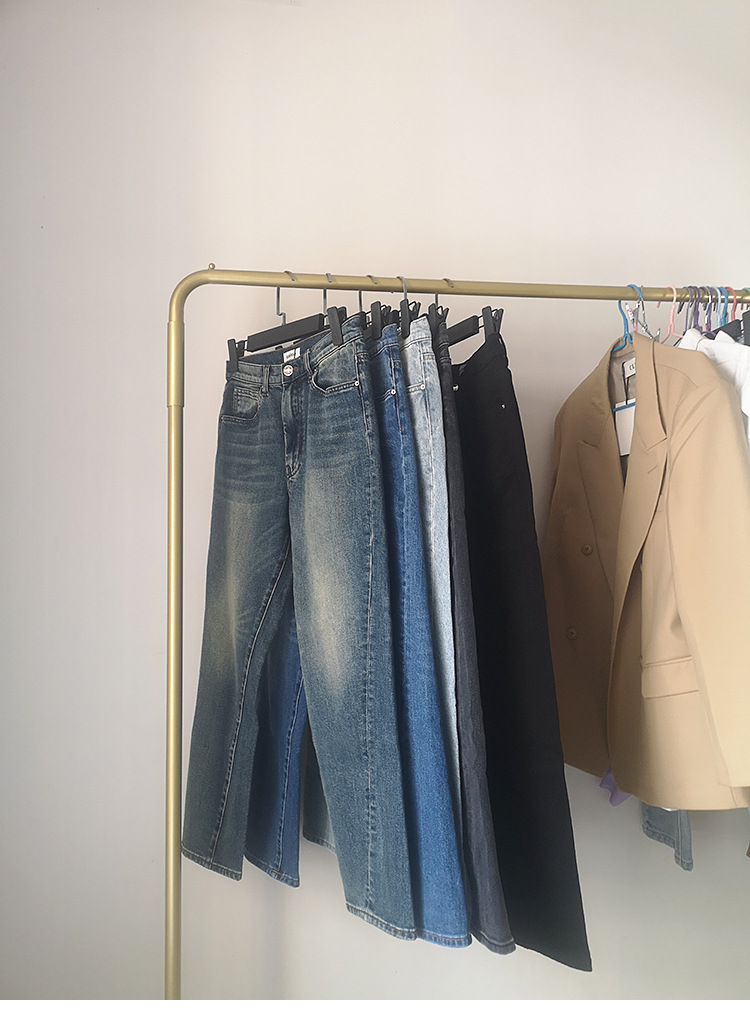 스팟 TOT 청바지 여성 Liu Wen 같은 스타일 봄과 가을 새로운 슬리밍 트위스트 스티치 높은 허리 스트레이트 인 자른 바지 바지스토어 가기