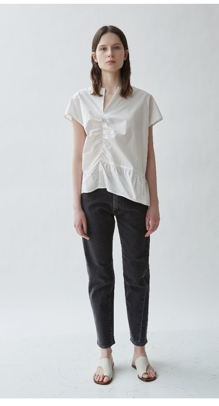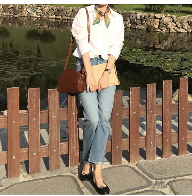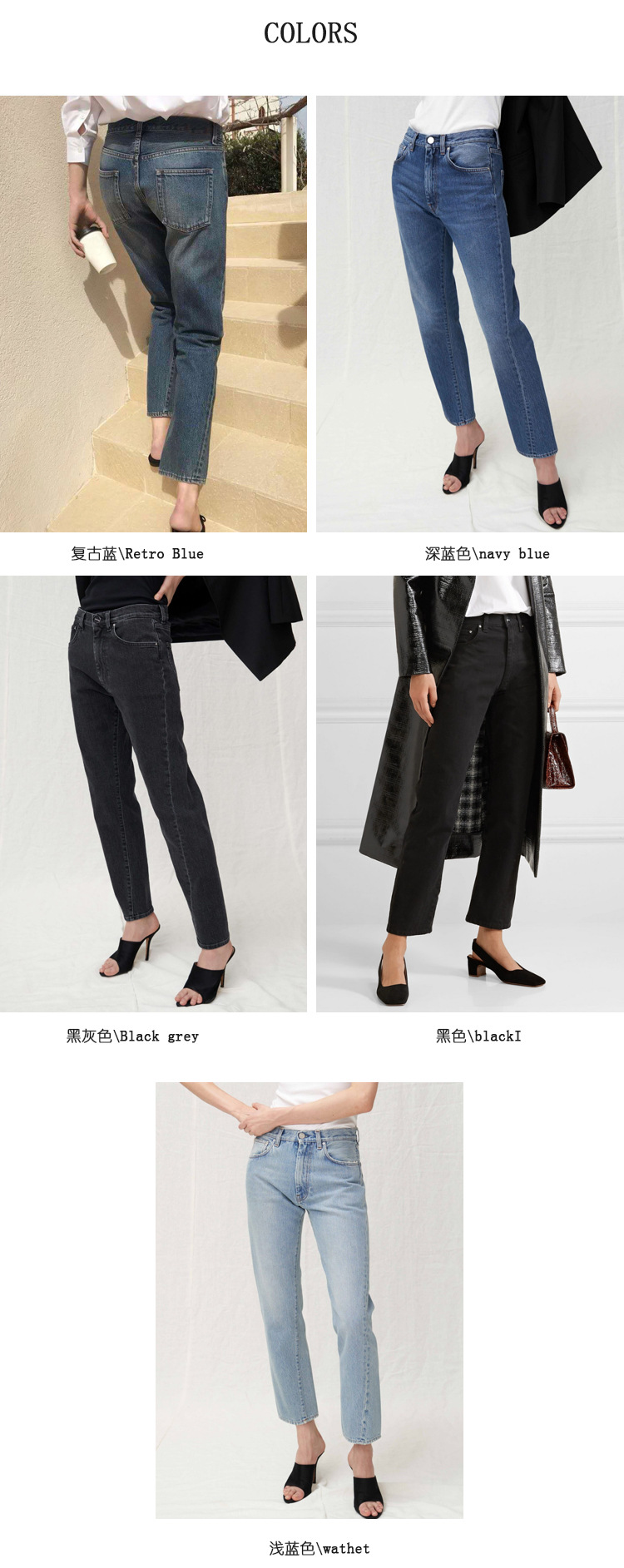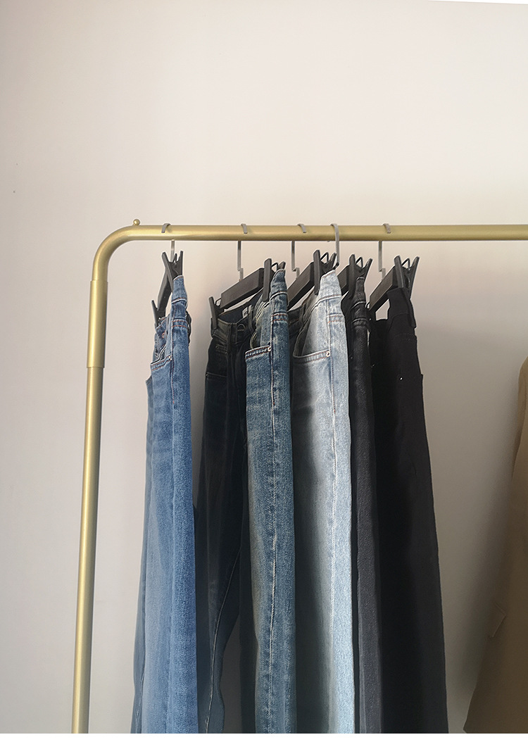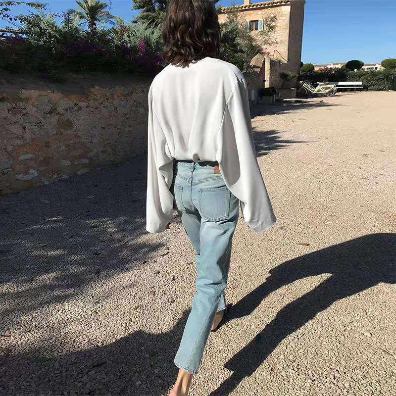 스팟 TOT 청바지 여성 Liu Wen 같은 스타일 봄과 가을 새로운 슬리밍 트위스트 스티치 높은 허리 스트레이트 인 자른 바지 바지스토어 가기