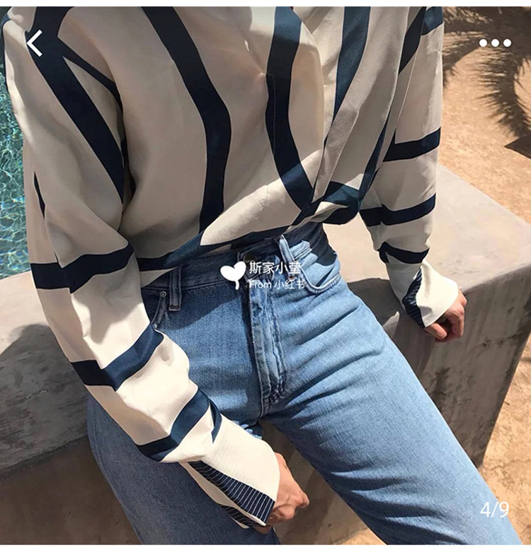 스팟 TOT 청바지 여성 Liu Wen 같은 스타일 봄과 가을 새로운 슬리밍 트위스트 스티치 높은 허리 스트레이트 인 자른 바지 바지