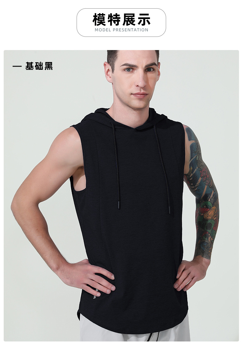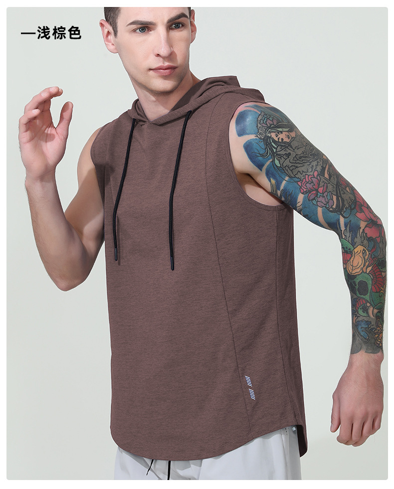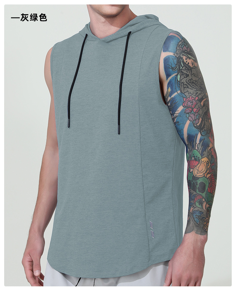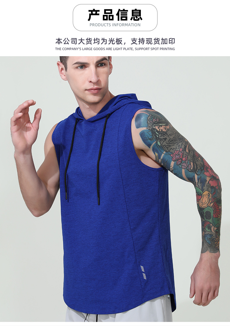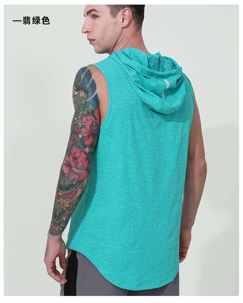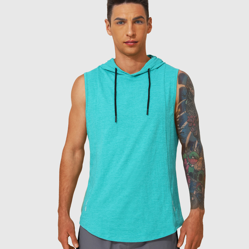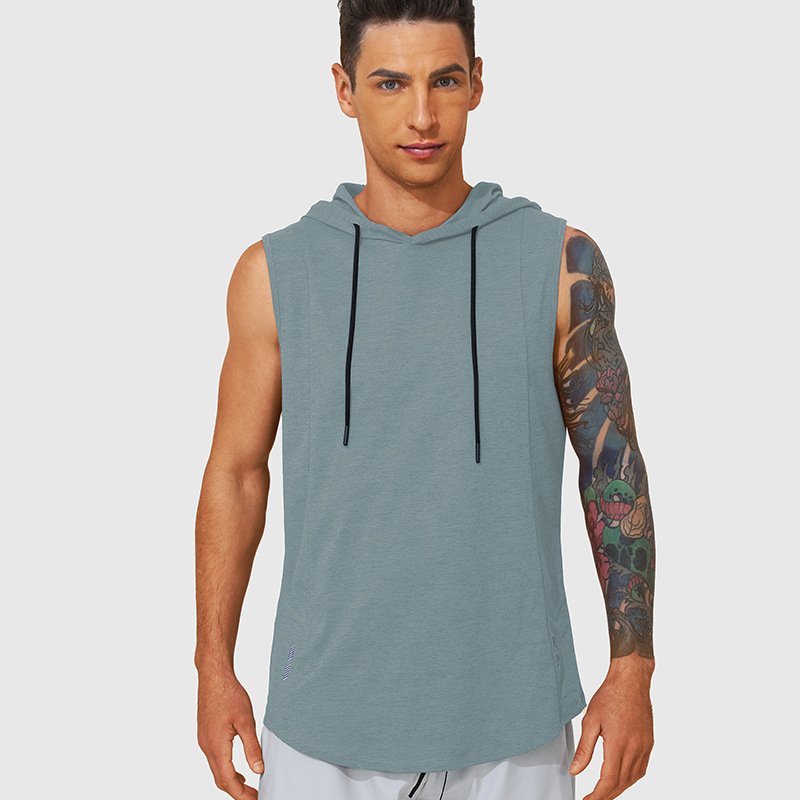 국경을 넘는 신상 남성 스포츠 조끼 여름 통기성 빠른 건조 훈련용 민소매 후드 달리기 피트니스 속건스토어 가기