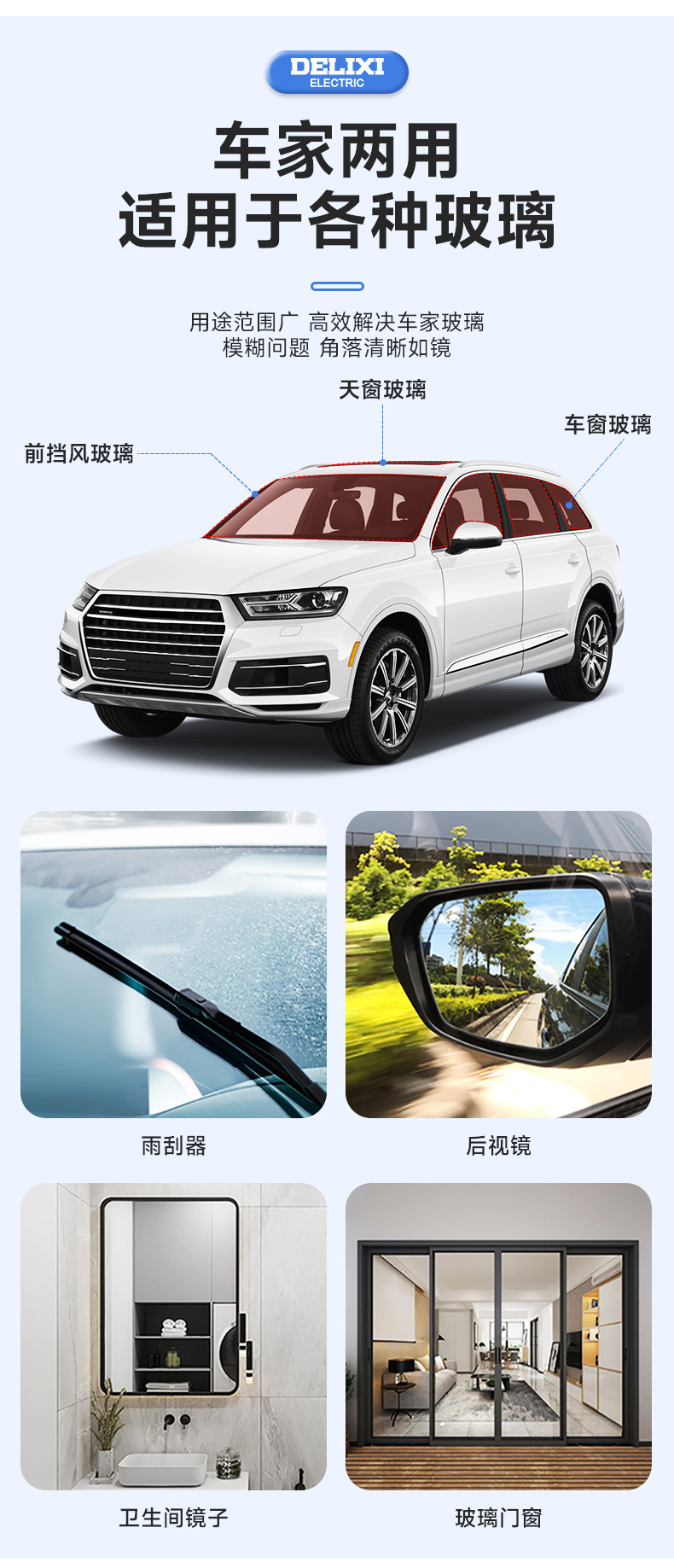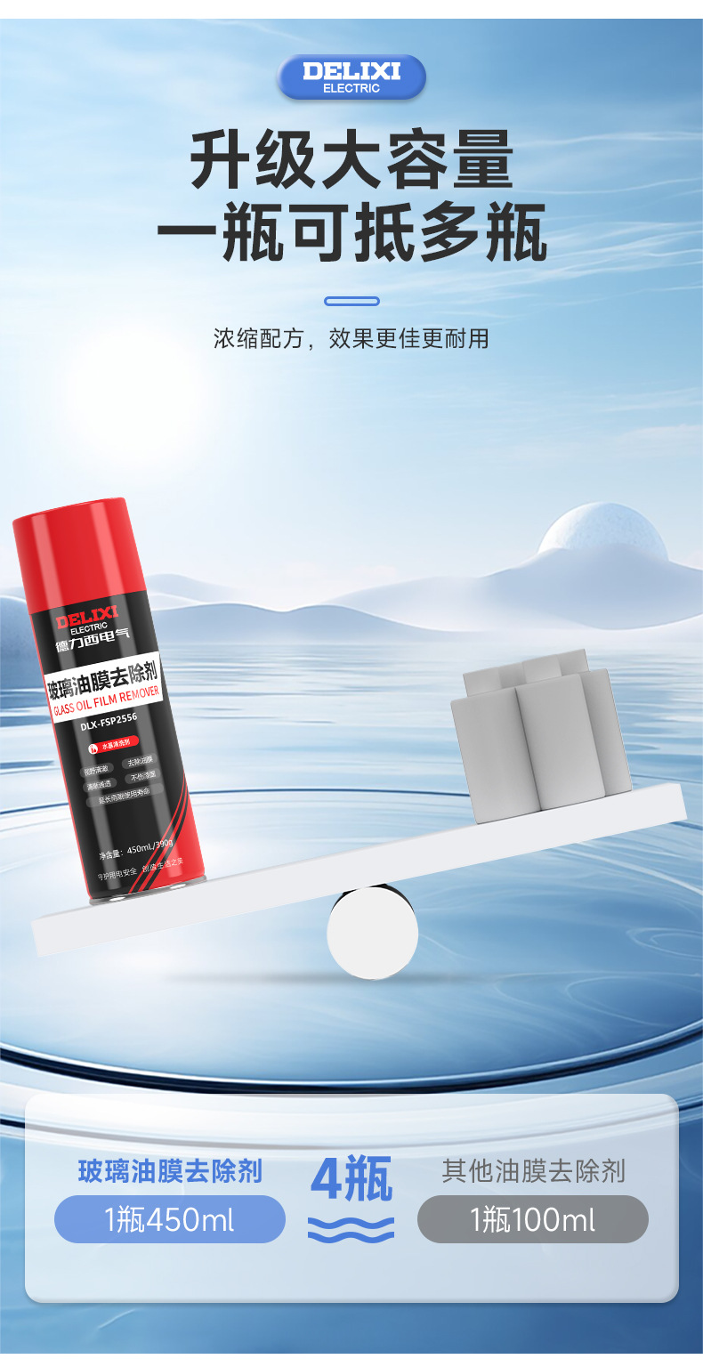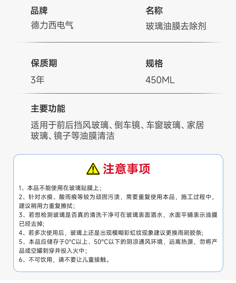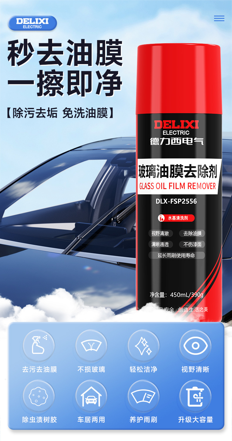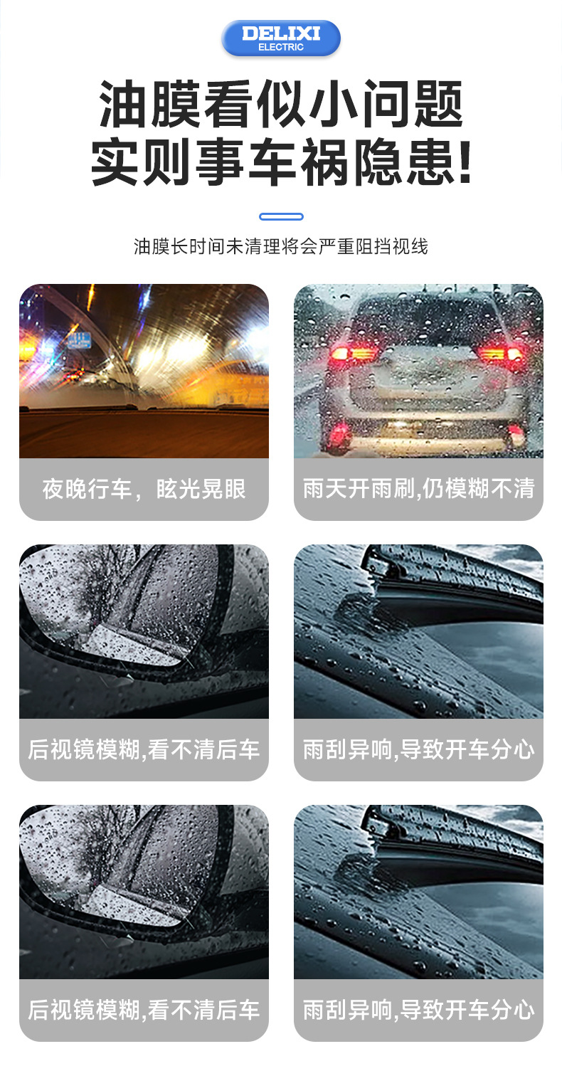 Delixi 자동차 유리 오일 필름 리무버 앞 유리 오일 필름 그물 강력한 오염 제거 창 청소기