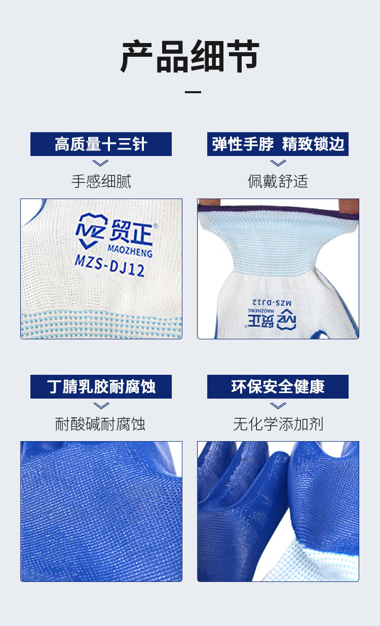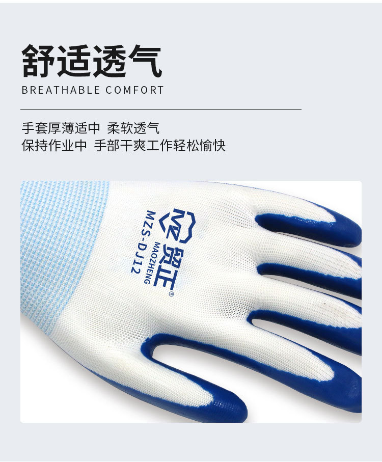 접착제로 코팅 된 블루 팜 내유성 노동 장갑으로 함침된 무역 포지티브 오일 내성 니트릴 장갑스토어 가기