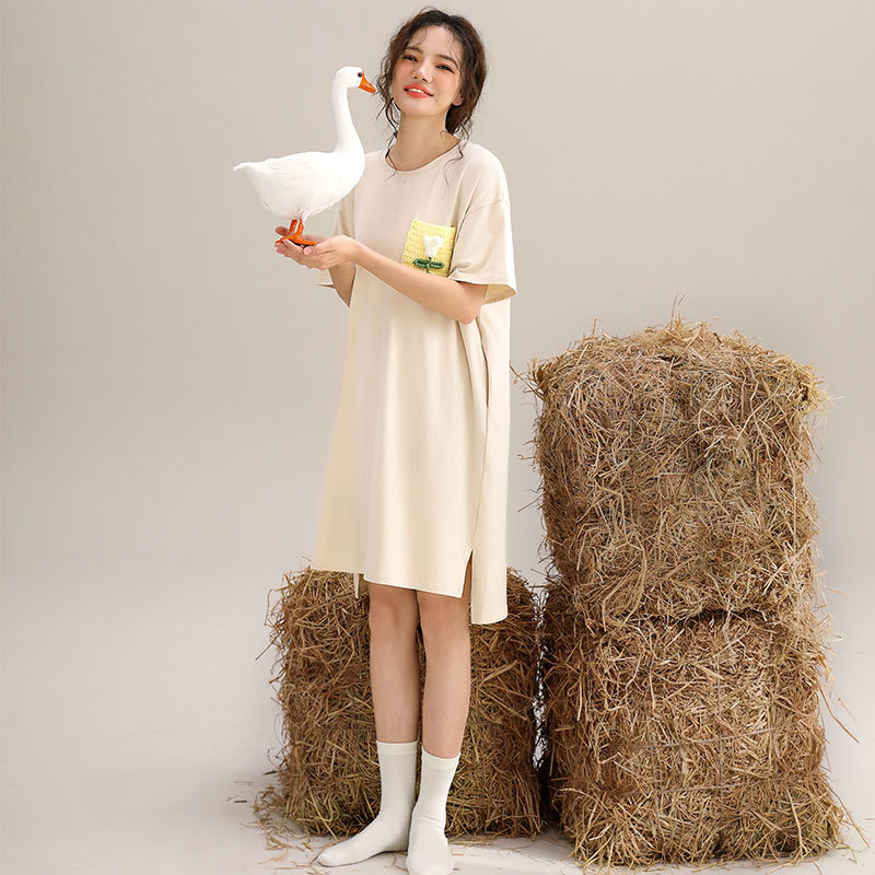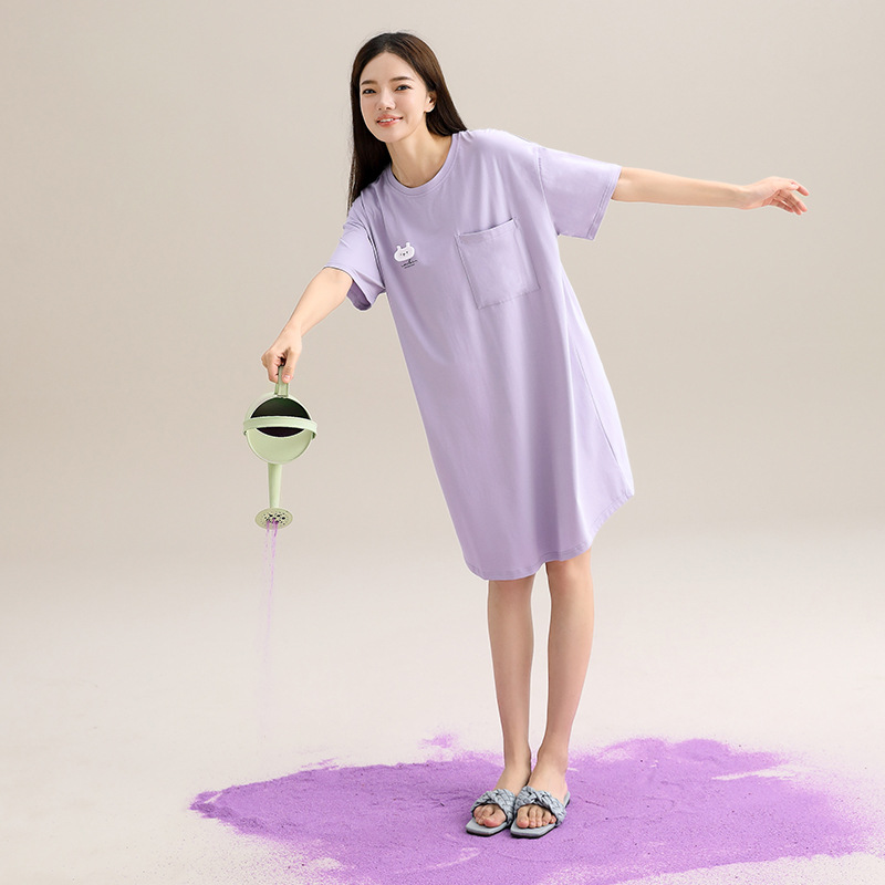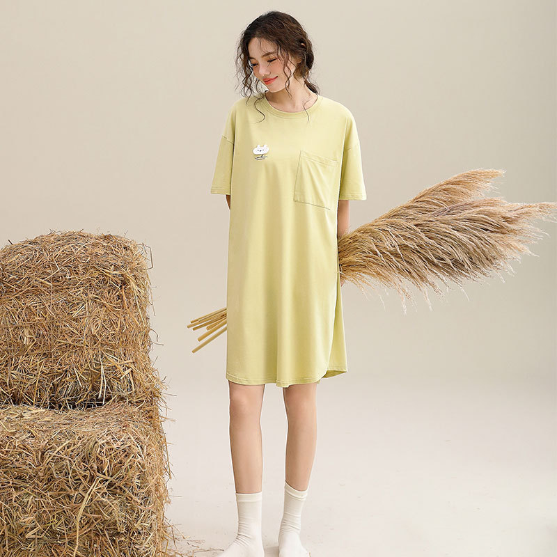 나이트가운 여성의 여름 코튼 반팔 얇은 여름 잠옷 2024 새로운 여성의 여름 대형 원피스