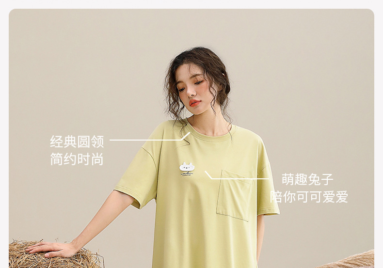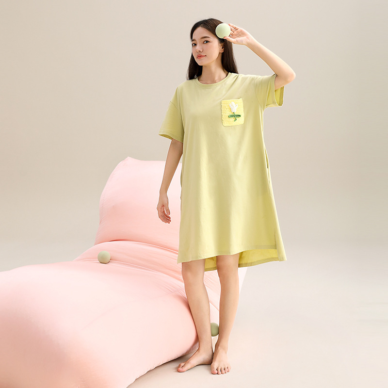 나이트가운 여성의 여름 코튼 반팔 얇은 여름 잠옷 2024 새로운 여성의 여름 대형 원피스스토어 가기
