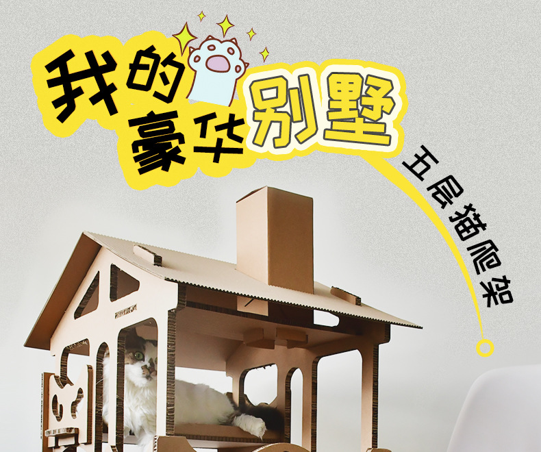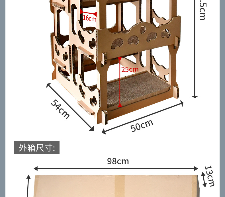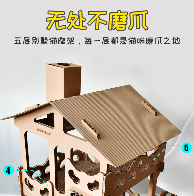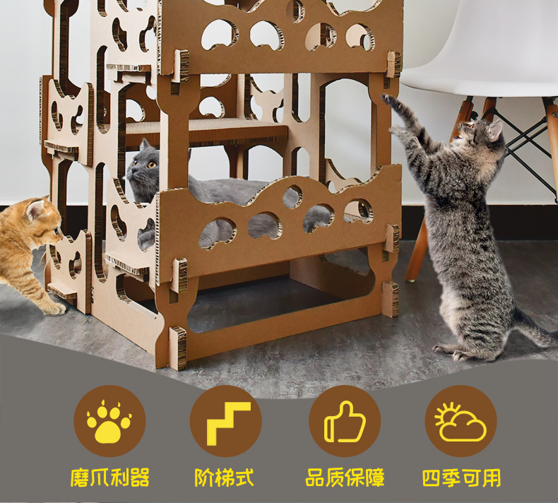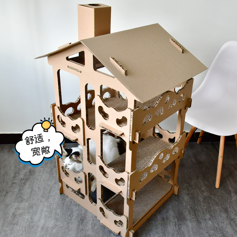 Big30 골판지 고양이 집 4층 고양이 빌라 DIY 고양이 클라이밍 프레임, 고양이 스크래치 보드, 고양이 둥지, 고양이 장난감, 무료 고양이 잔디