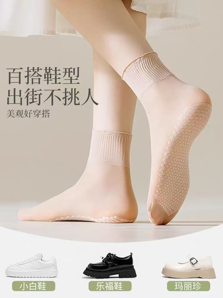 벨벳 면화 바닥 강철 스타킹 여성 짧은 튜브 2 세대 봄과 여름 얇은 땀 흡수성 미끄럼 방지 마모 방지 후크 실크 주지 양말