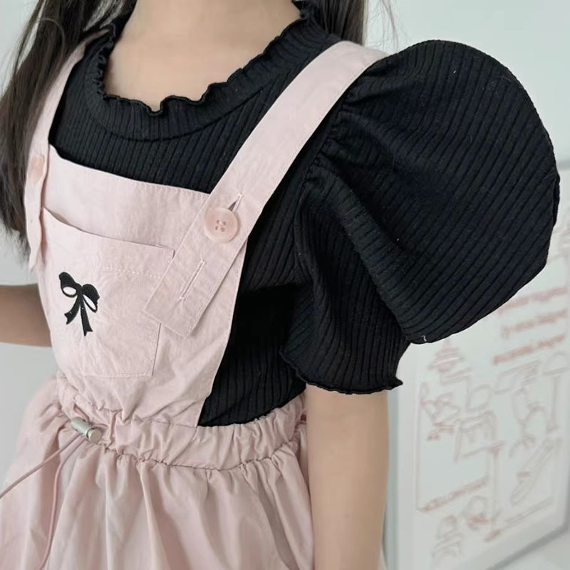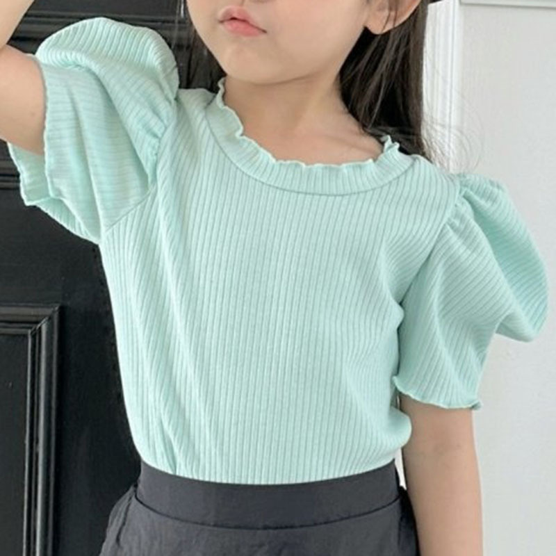여아 여름 아동 반팔 티셔츠 여아 여름옷 고탄력 티셔츠 퍼프 소매 여아 이너웨어스토어 가기