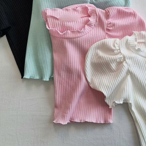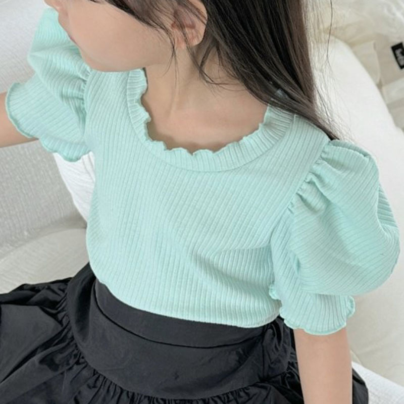 여아 여름 아동 반팔 티셔츠 여아 여름옷 고탄력 티셔츠 퍼프 소매 여아 이너웨어