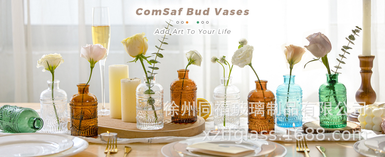 프랑스 스타일 레트로 스타일 엠보싱 미니 작은 꽃병 투명 수경 꽃 배열 꽃 유리 꽃병 거실 장식 장식품스토어 가기