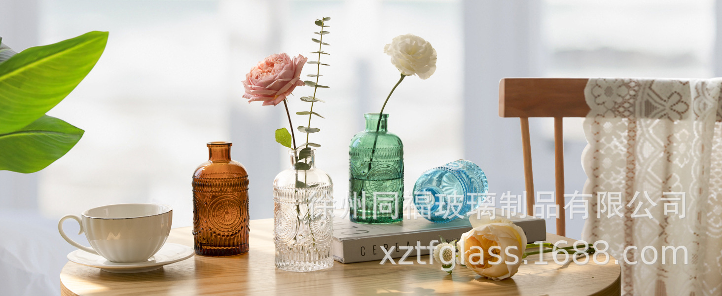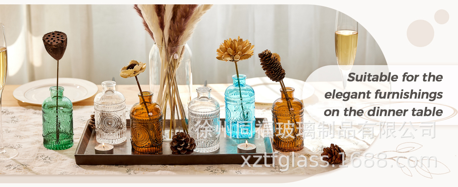 프랑스 스타일 레트로 스타일 엠보싱 미니 작은 꽃병 투명 수경 꽃 배열 꽃 유리 꽃병 거실 장식 장식품