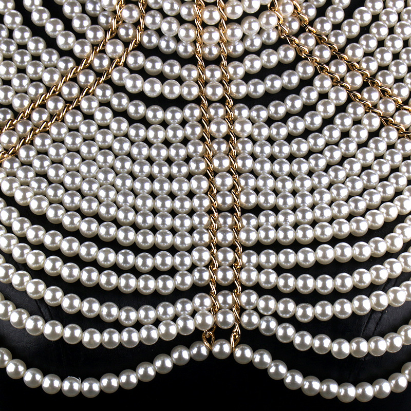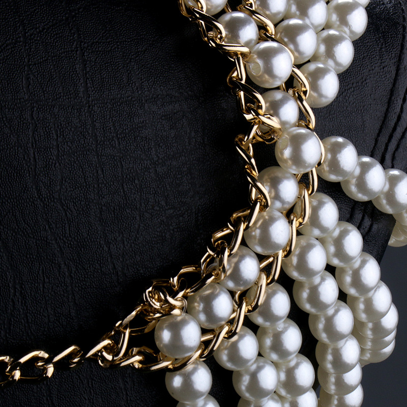 새로운 국경 핫 판매 진주 수제 어깨 체인 유럽과 미국의 인기있는 목걸이 강도 체인 다층 백 체인
