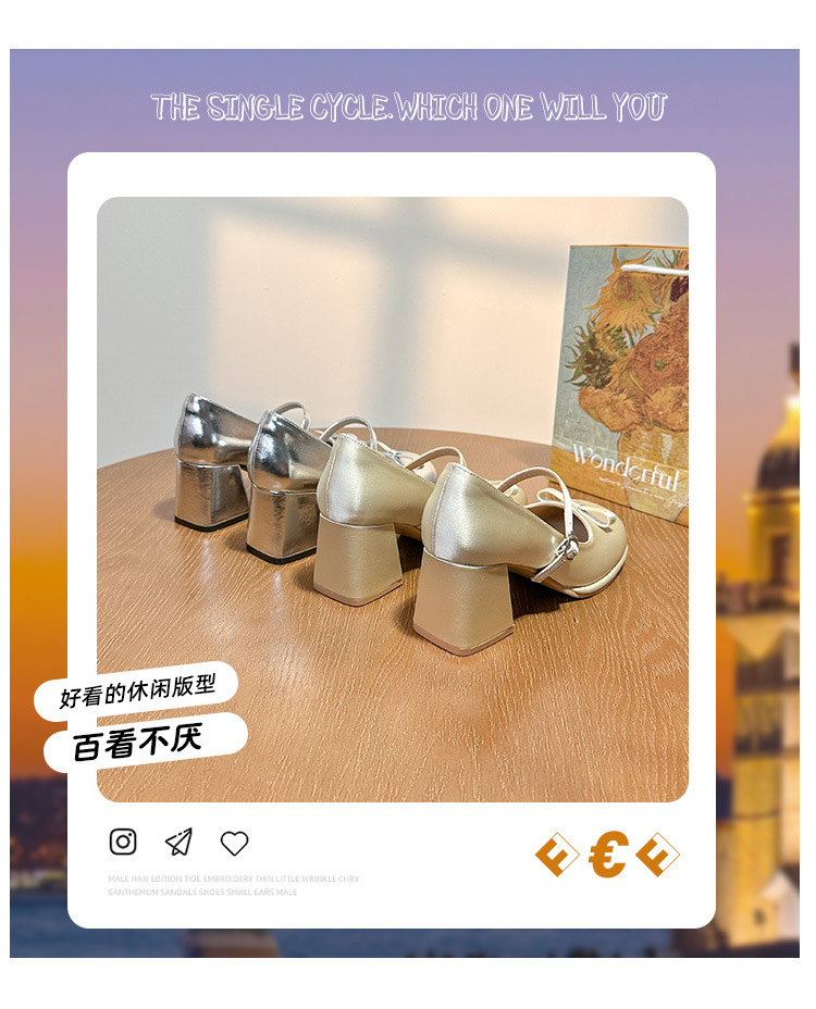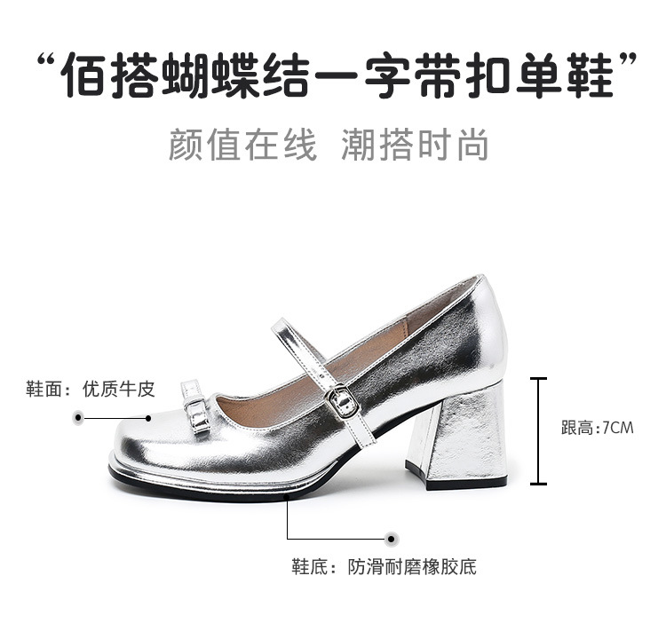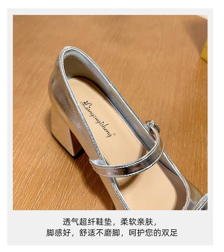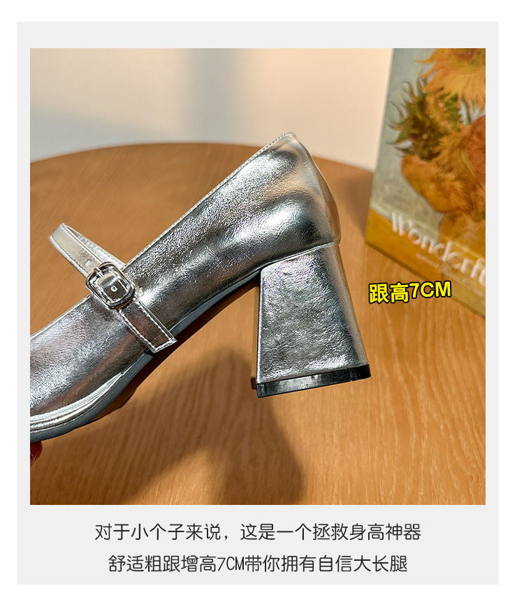 작은 은색 신발, 새로운 중국 스타일 메리제인 은색 하이힐, 여성용 봄 가을 중국풍 치파오 신발, 마면 스커트 신발, 두꺼운 굽 단화스토어 가기