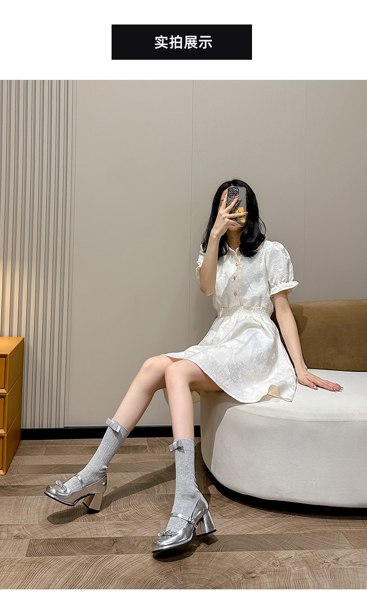 작은 은색 신발, 새로운 중국 스타일 메리제인 은색 하이힐, 여성용 봄 가을 중국풍 치파오 신발, 마면 스커트 신발, 두꺼운 굽 단화