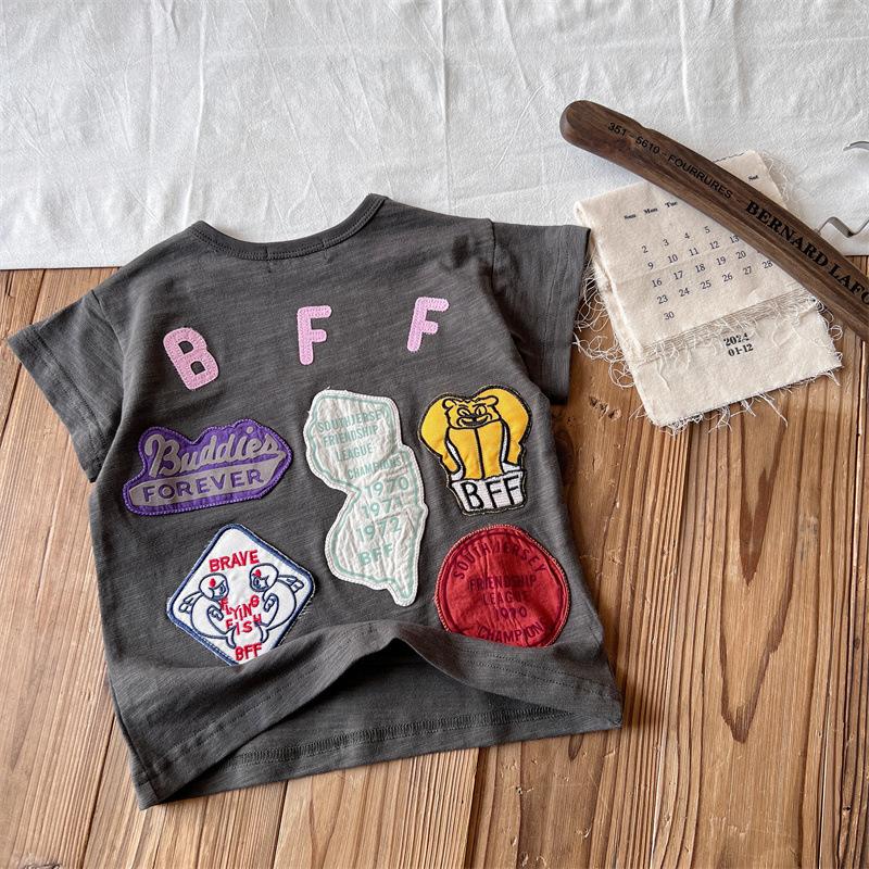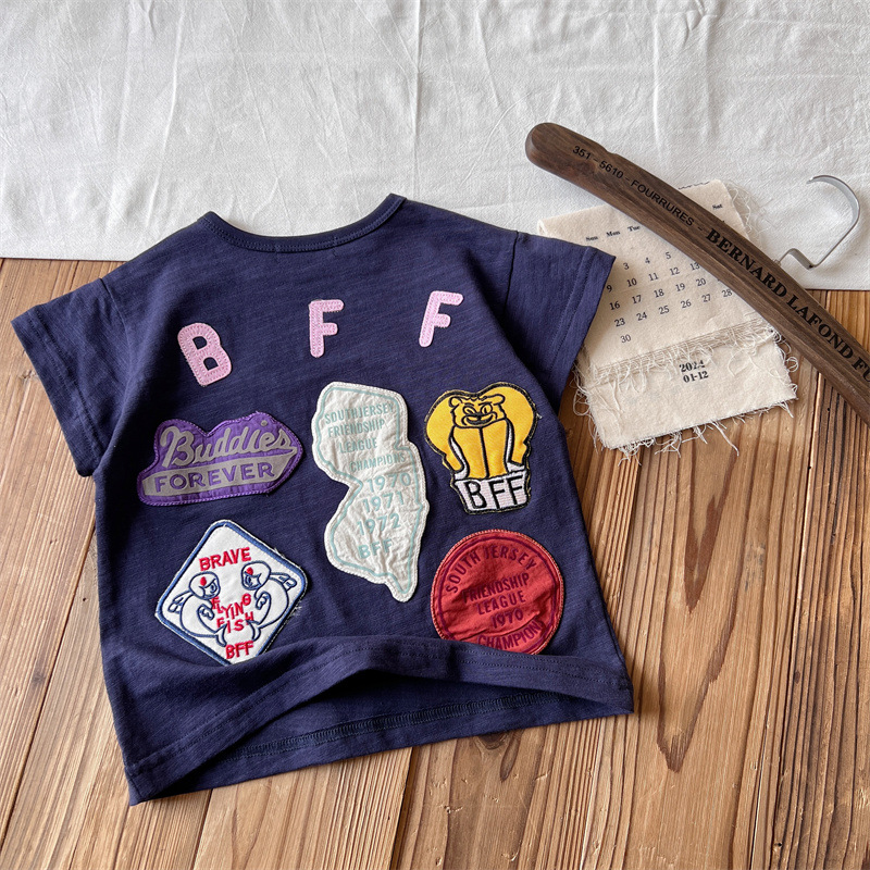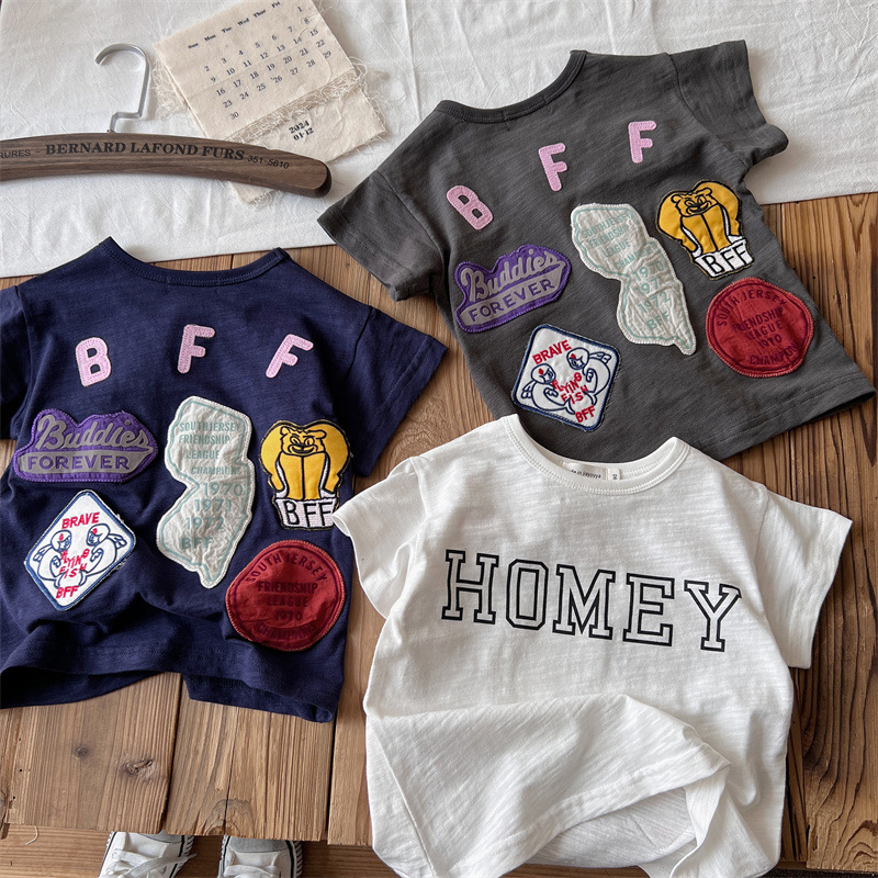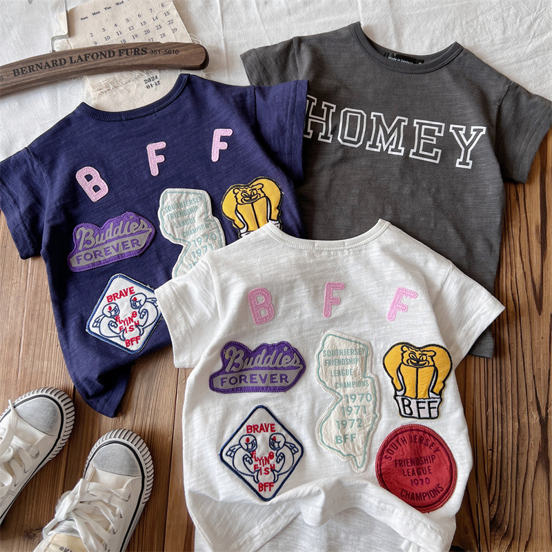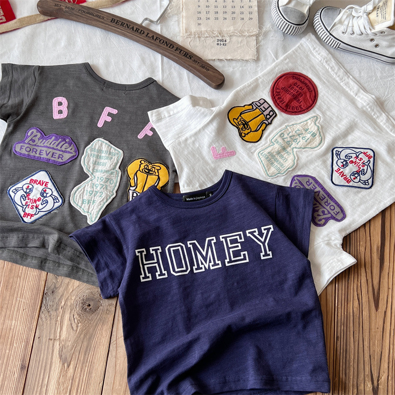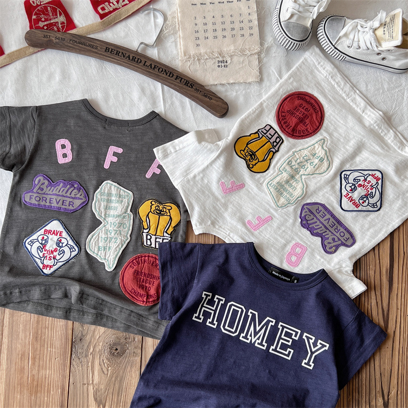 [현장] 일본 아동복 중고 DD 여름 어린이 배지 반팔 티셔츠