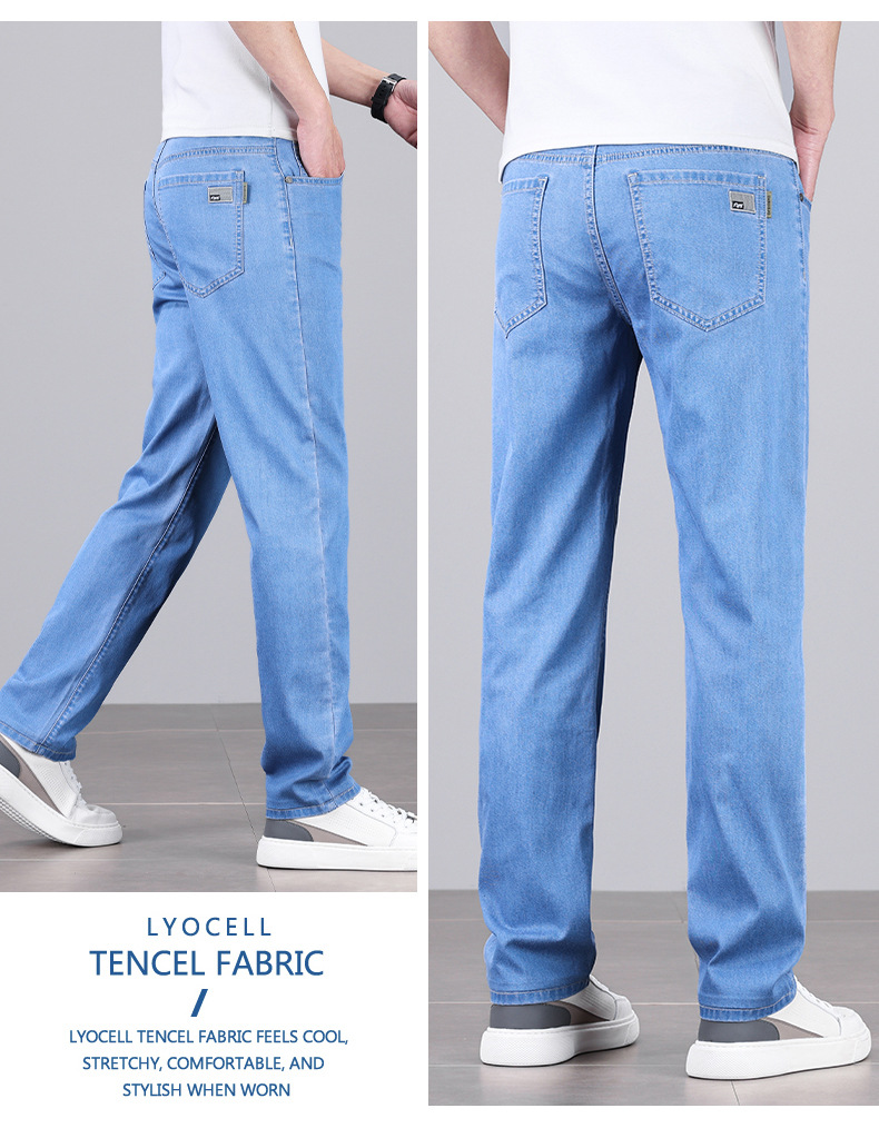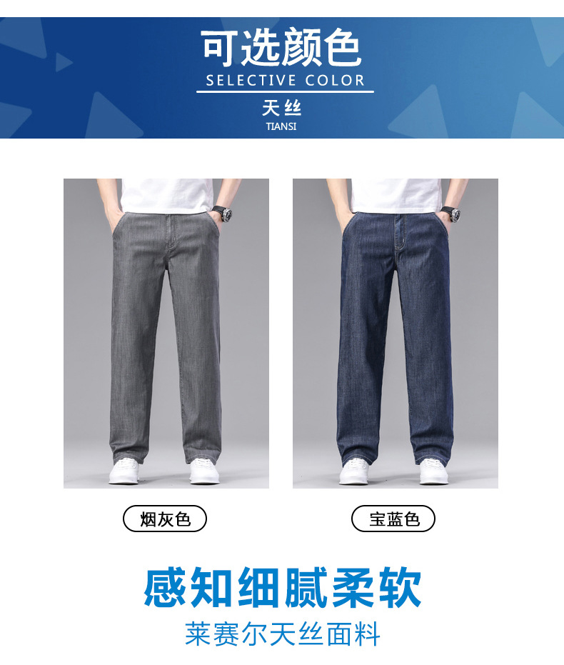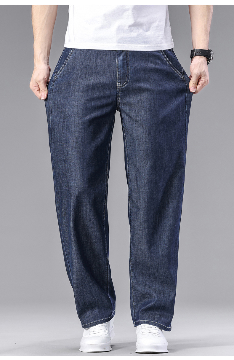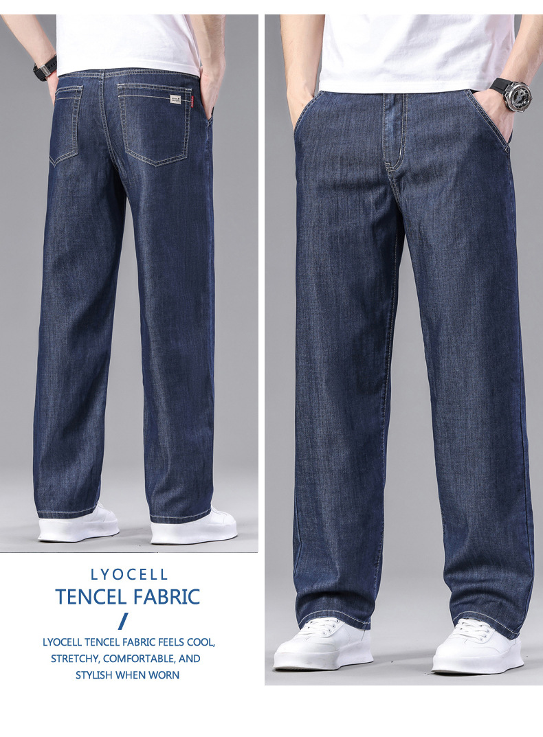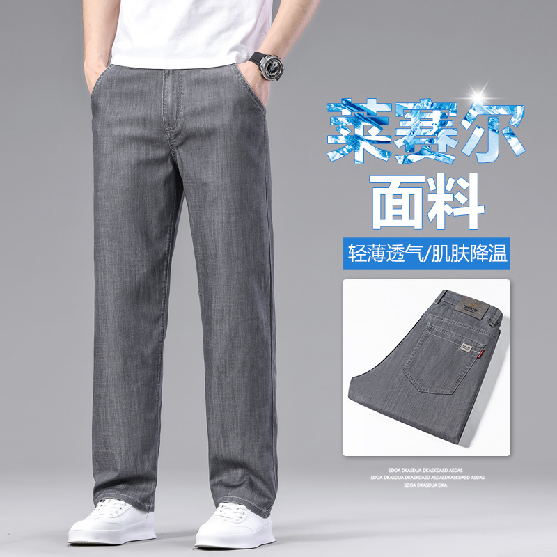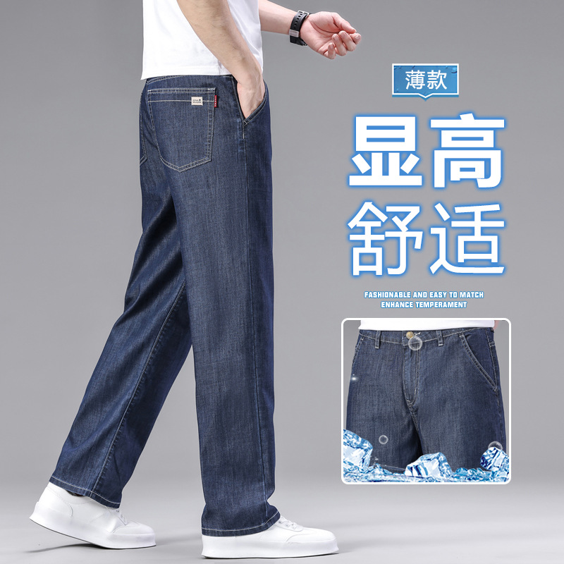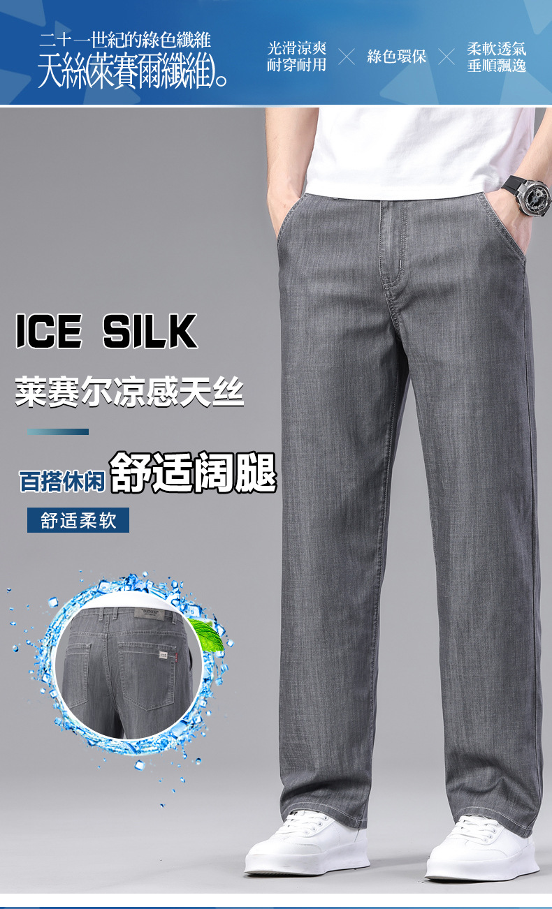 초박형 텐셀 아이스옥시전바 청바지 남성 비즈니스 캐주얼 루즈핏 스트레이트 데님 팬츠 다용도 가볍고 얇은 스타일