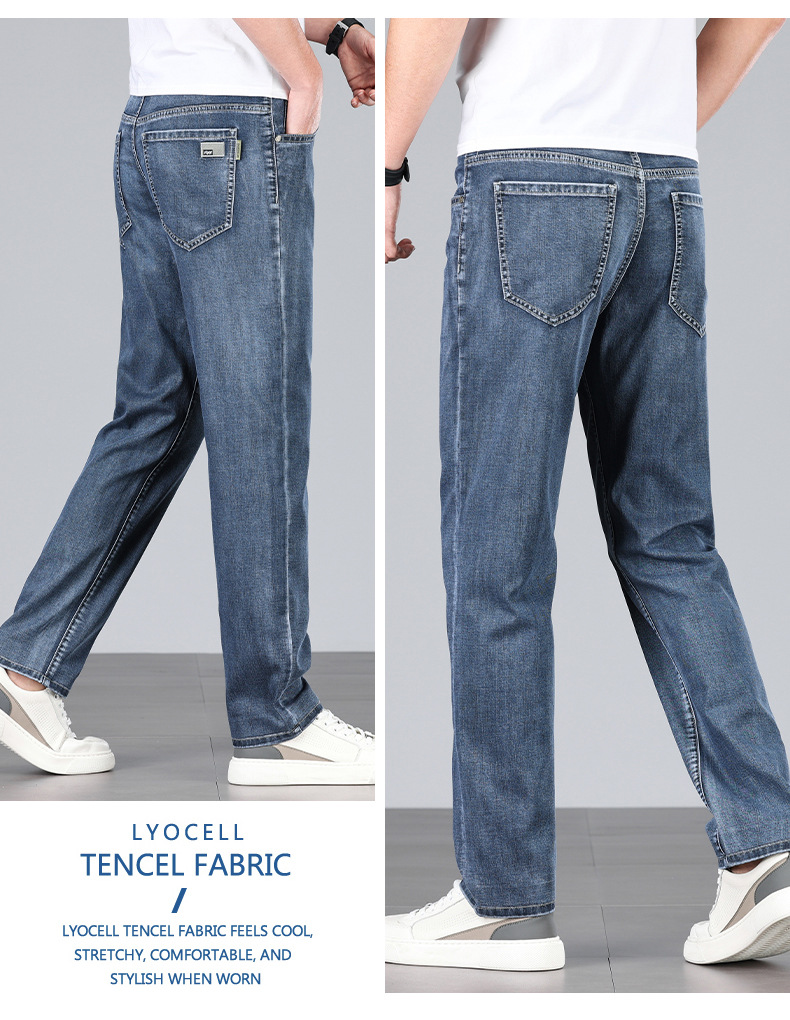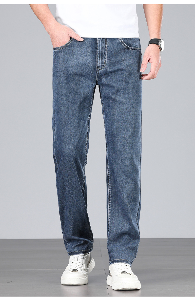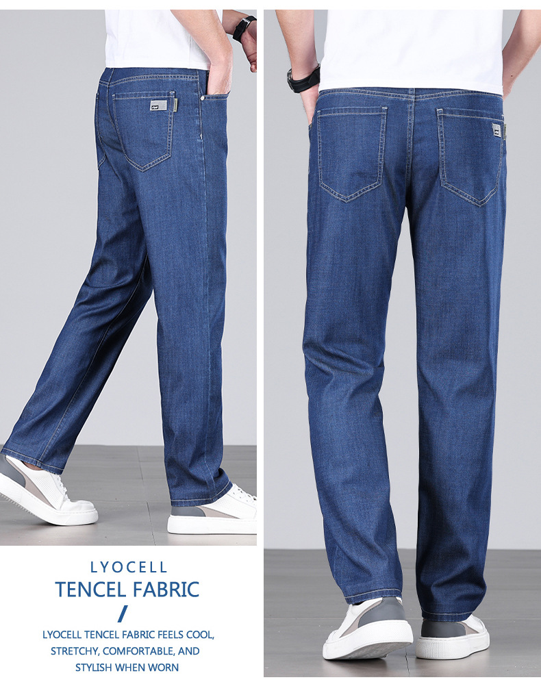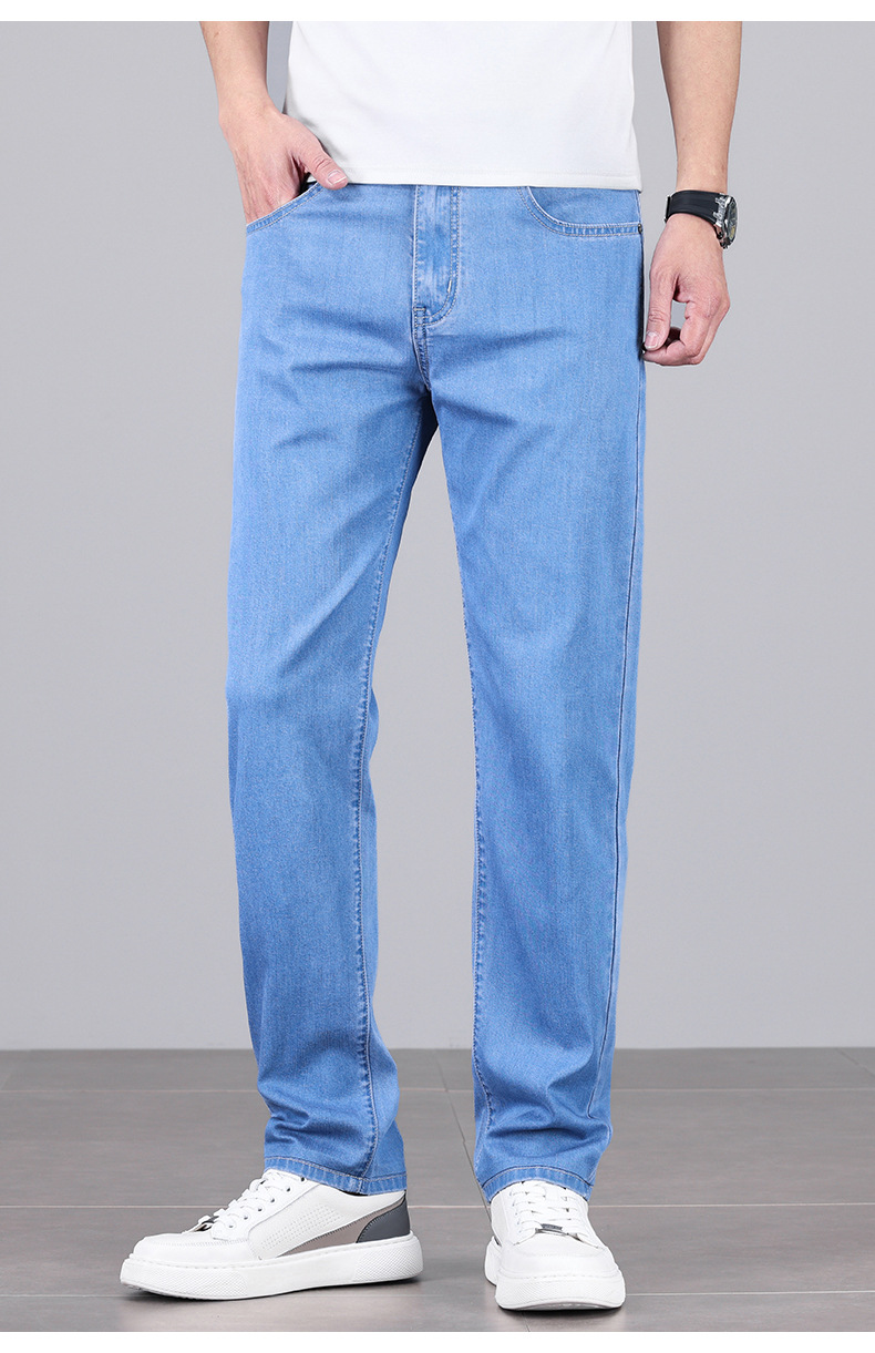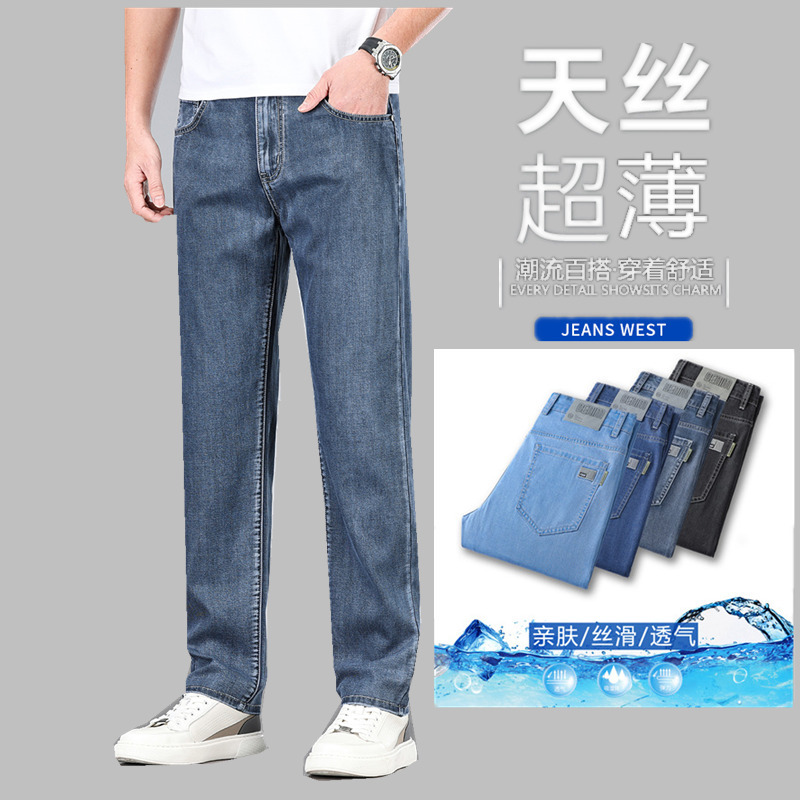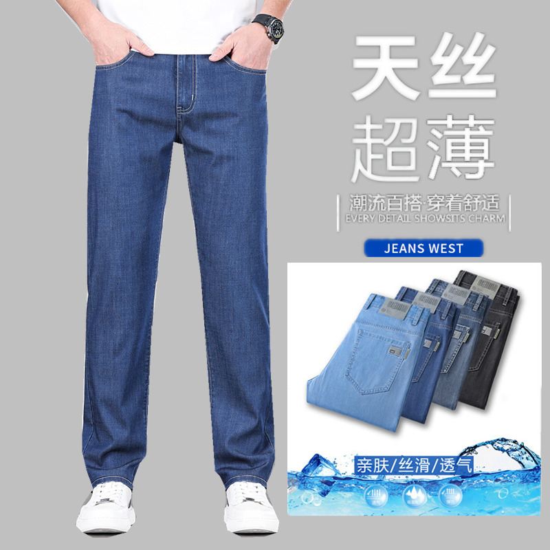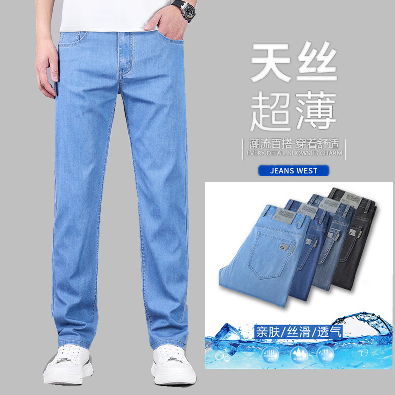 초박형 텐셀 아이스옥시전바 청바지 남성 비즈니스 캐주얼 루즈핏 스트레이트 데님 팬츠 다용도 가볍고 얇은 스타일