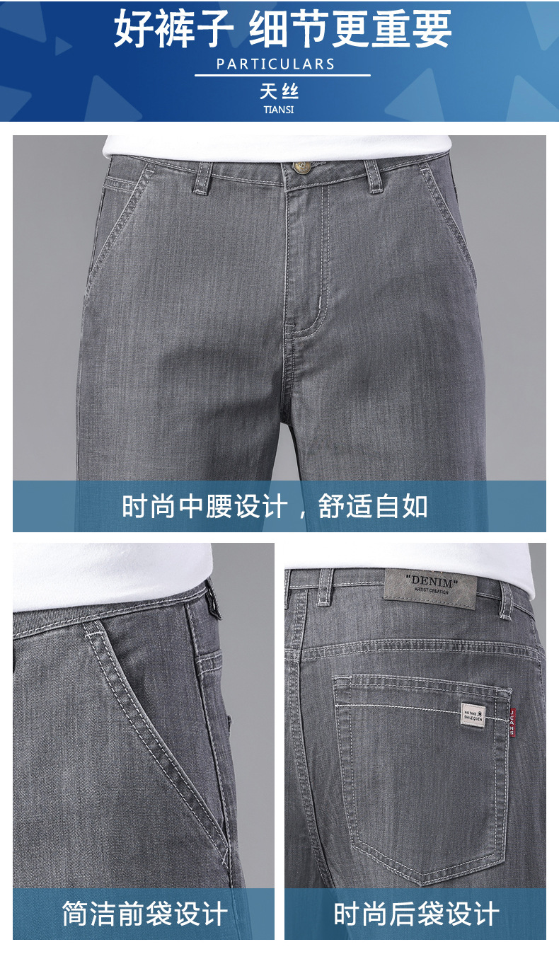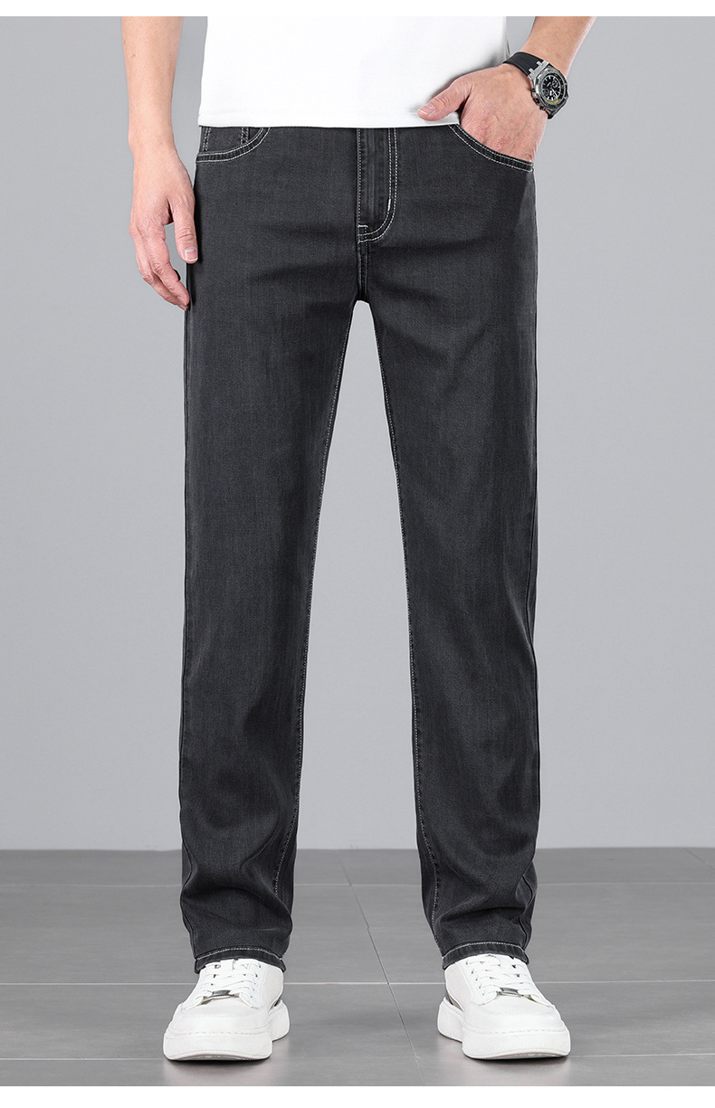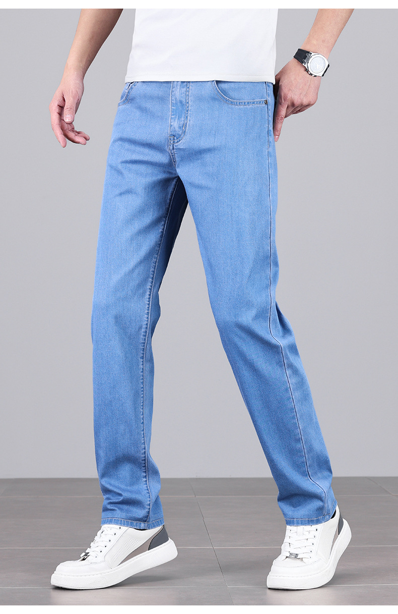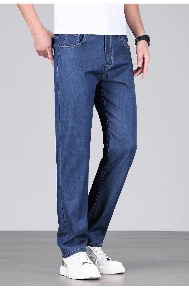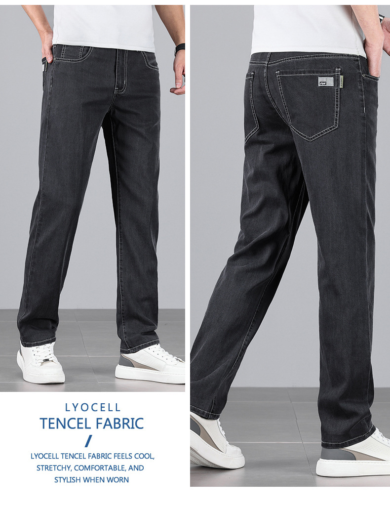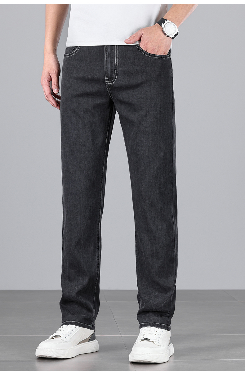 초박형 텐셀 아이스옥시전바 청바지 남성 비즈니스 캐주얼 루즈핏 스트레이트 데님 팬츠 다용도 가볍고 얇은 스타일
