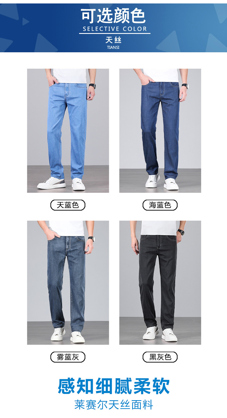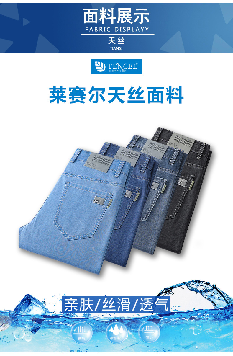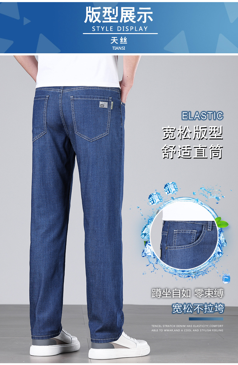 초박형 텐셀 아이스옥시전바 청바지 남성 비즈니스 캐주얼 루즈핏 스트레이트 데님 팬츠 다용도 가볍고 얇은 스타일스토어 가기