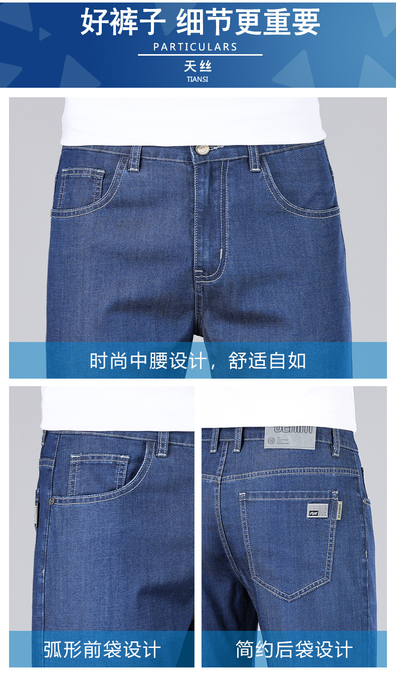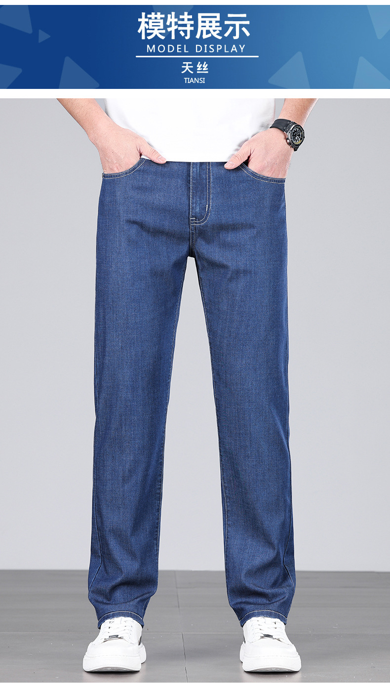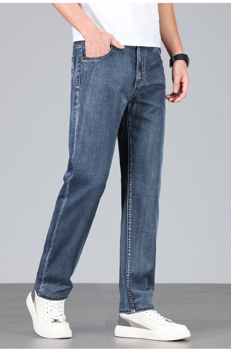 초박형 텐셀 아이스옥시전바 청바지 남성 비즈니스 캐주얼 루즈핏 스트레이트 데님 팬츠 다용도 가볍고 얇은 스타일스토어 가기