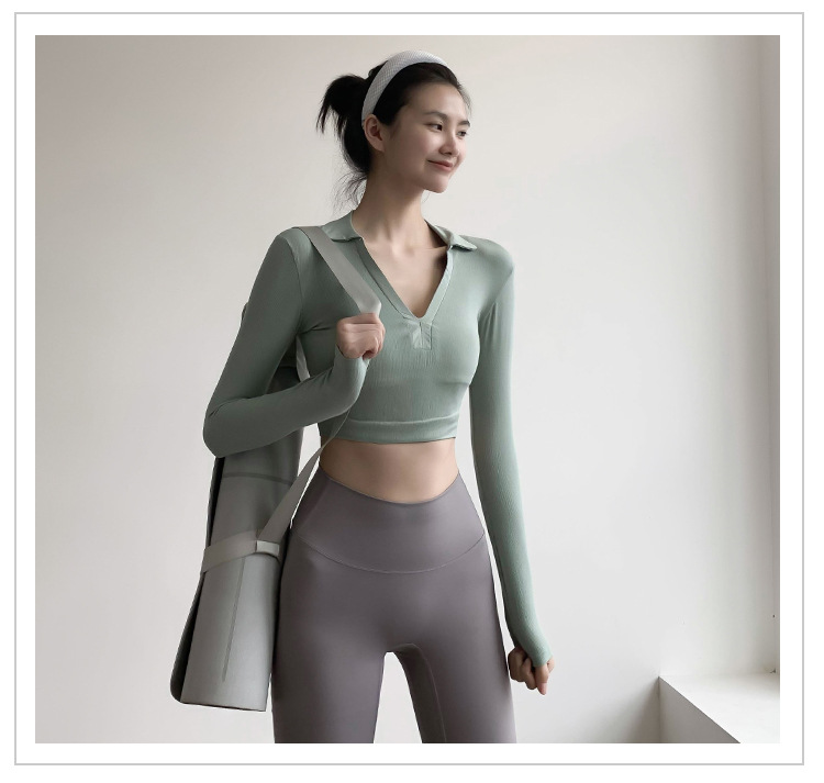봄과 가을 스포츠 최고 여성의 우아한 슬림 핏 긴팔 티셔츠 캐주얼 러닝 빠른 건조 통기성 피트니스 요가 의류 트렌디스토어 가기