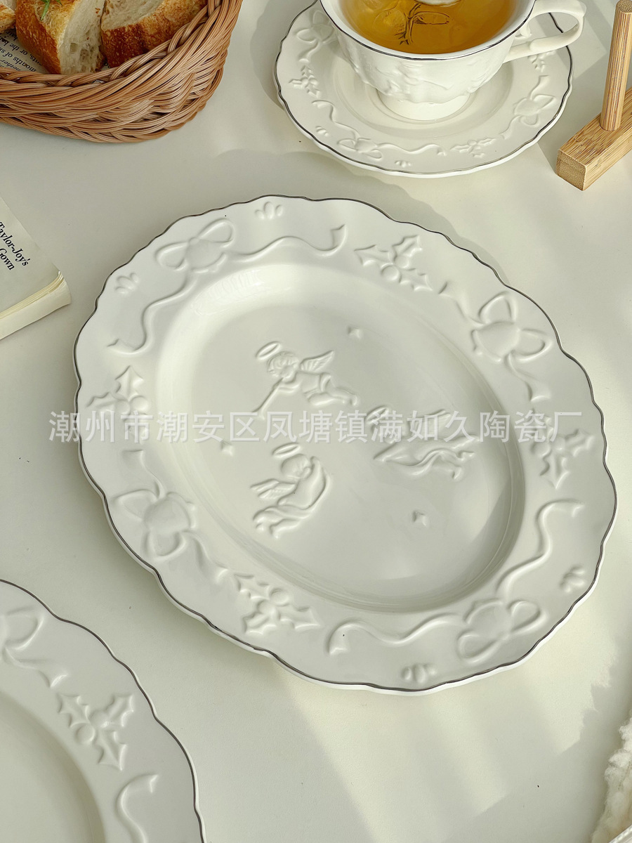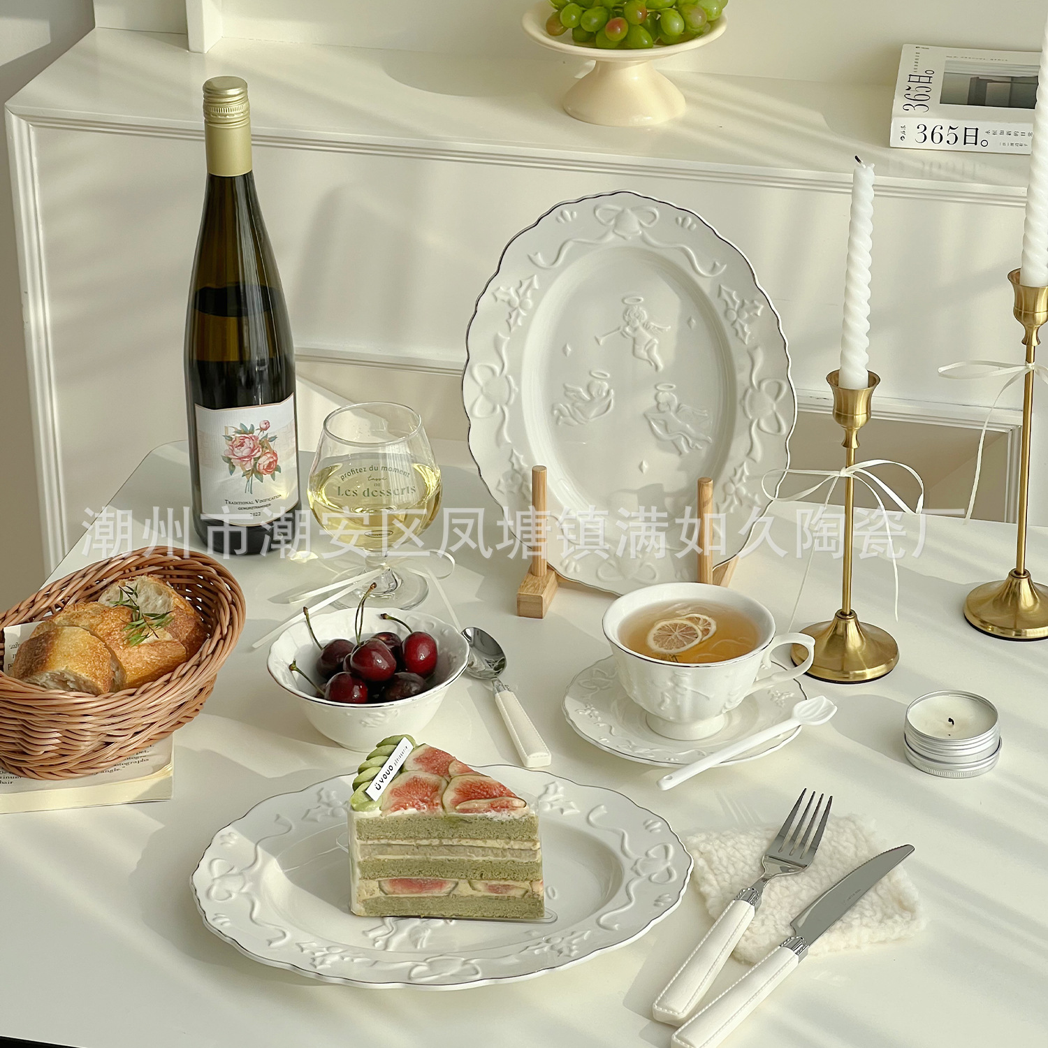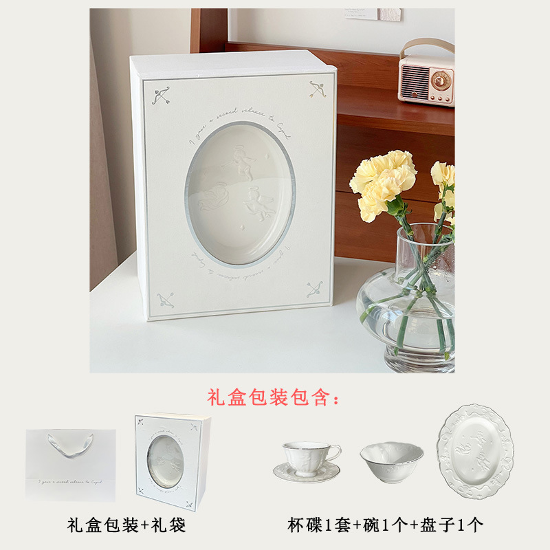 느리게 흐르는 시간 - 엠보싱 천사 세라믹 핸드페인팅 금장 커피잔과 접시 세트, 인스 스타일 프렌치 고급 감성, 소수 감성 제품스토어 가기
