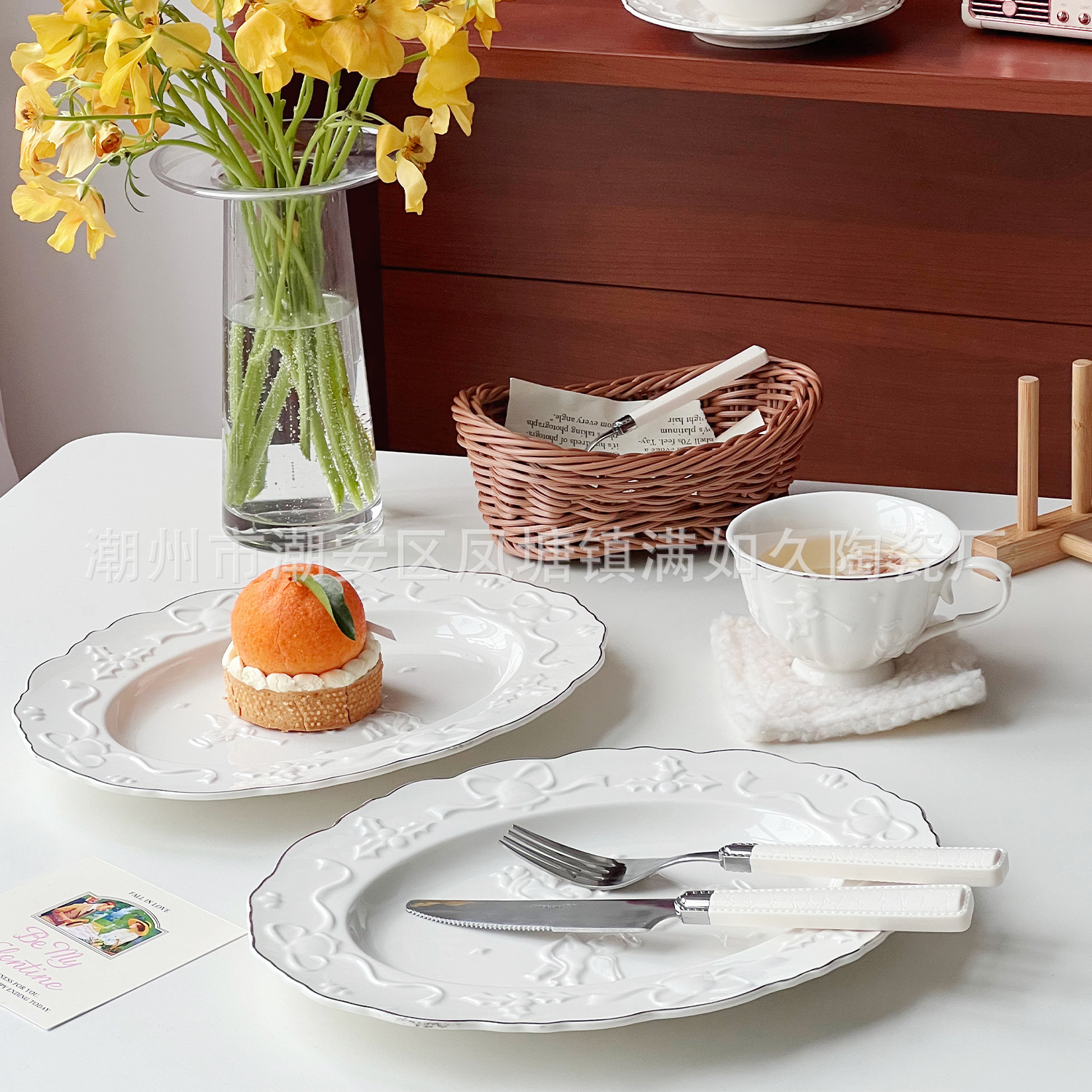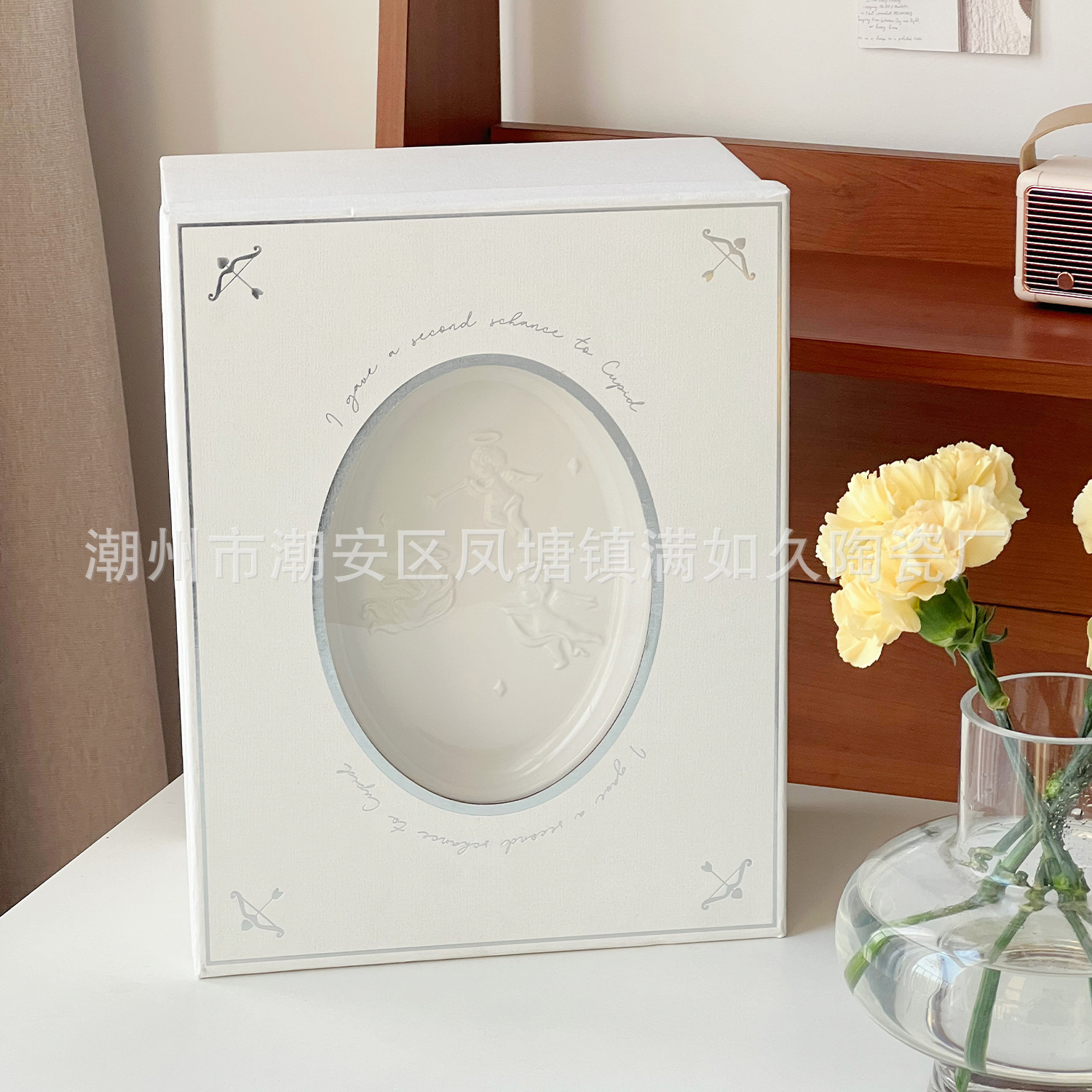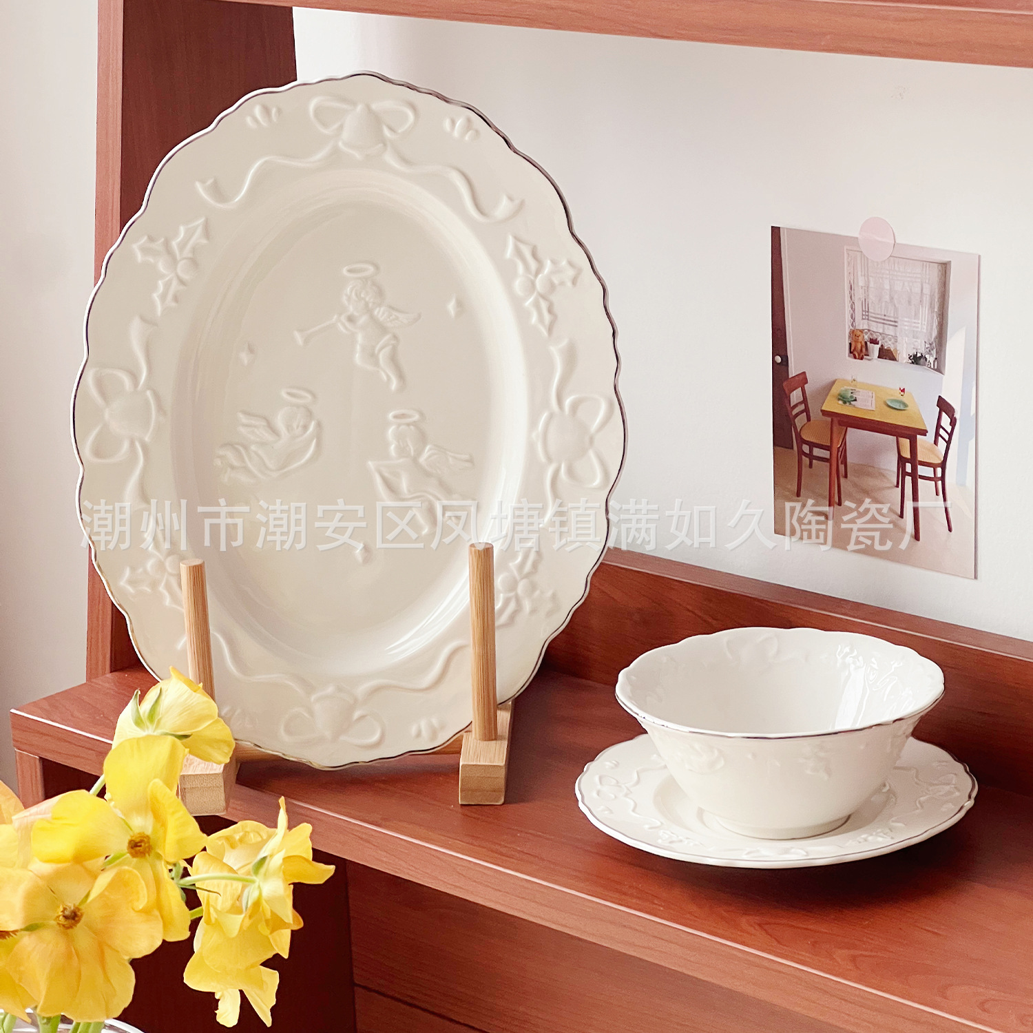 느리게 흐르는 시간 - 엠보싱 천사 세라믹 핸드페인팅 금장 커피잔과 접시 세트, 인스 스타일 프렌치 고급 감성, 소수 감성 제품스토어 가기