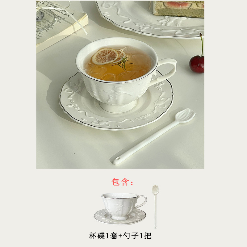 느리게 흐르는 시간 - 엠보싱 천사 세라믹 핸드페인팅 금장 커피잔과 접시 세트, 인스 스타일 프렌치 고급 감성, 소수 감성 제품