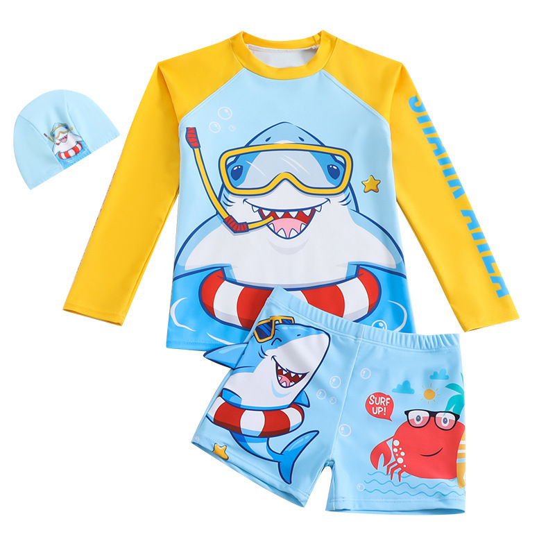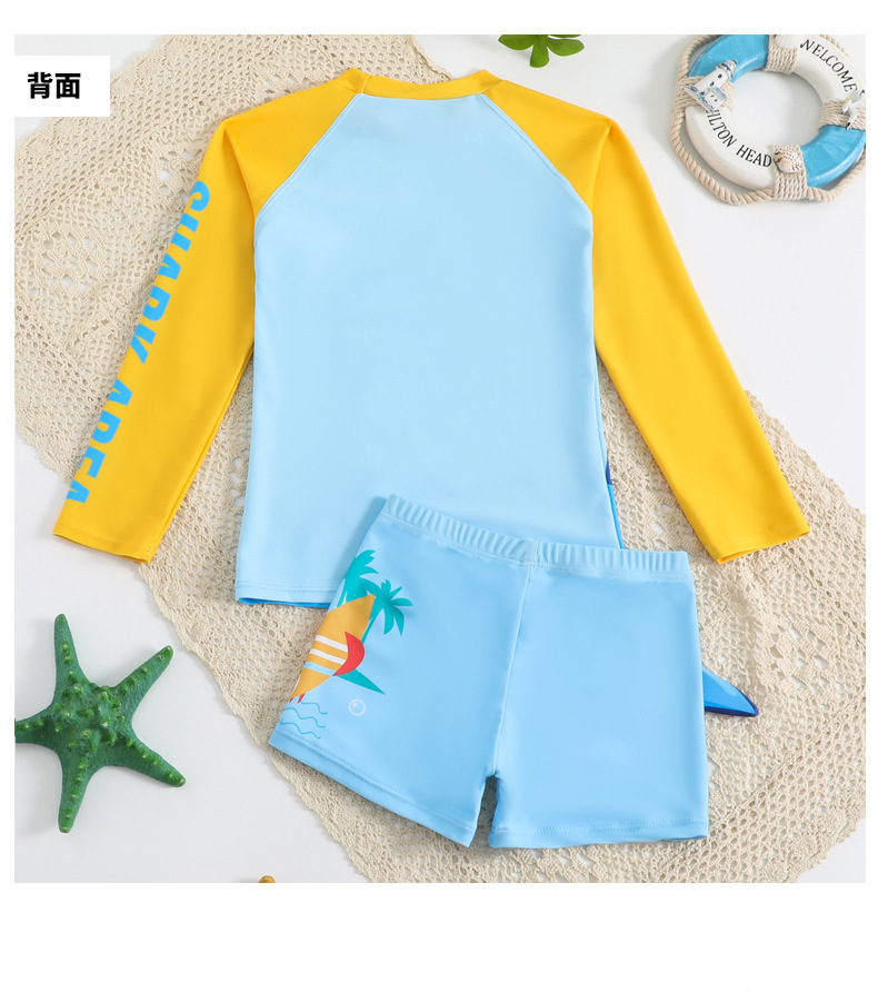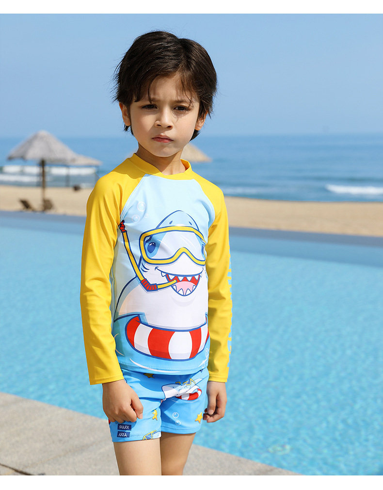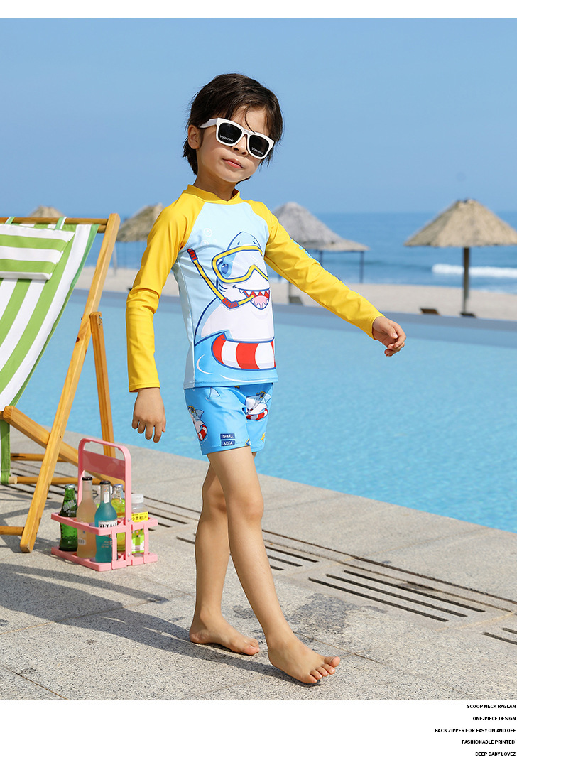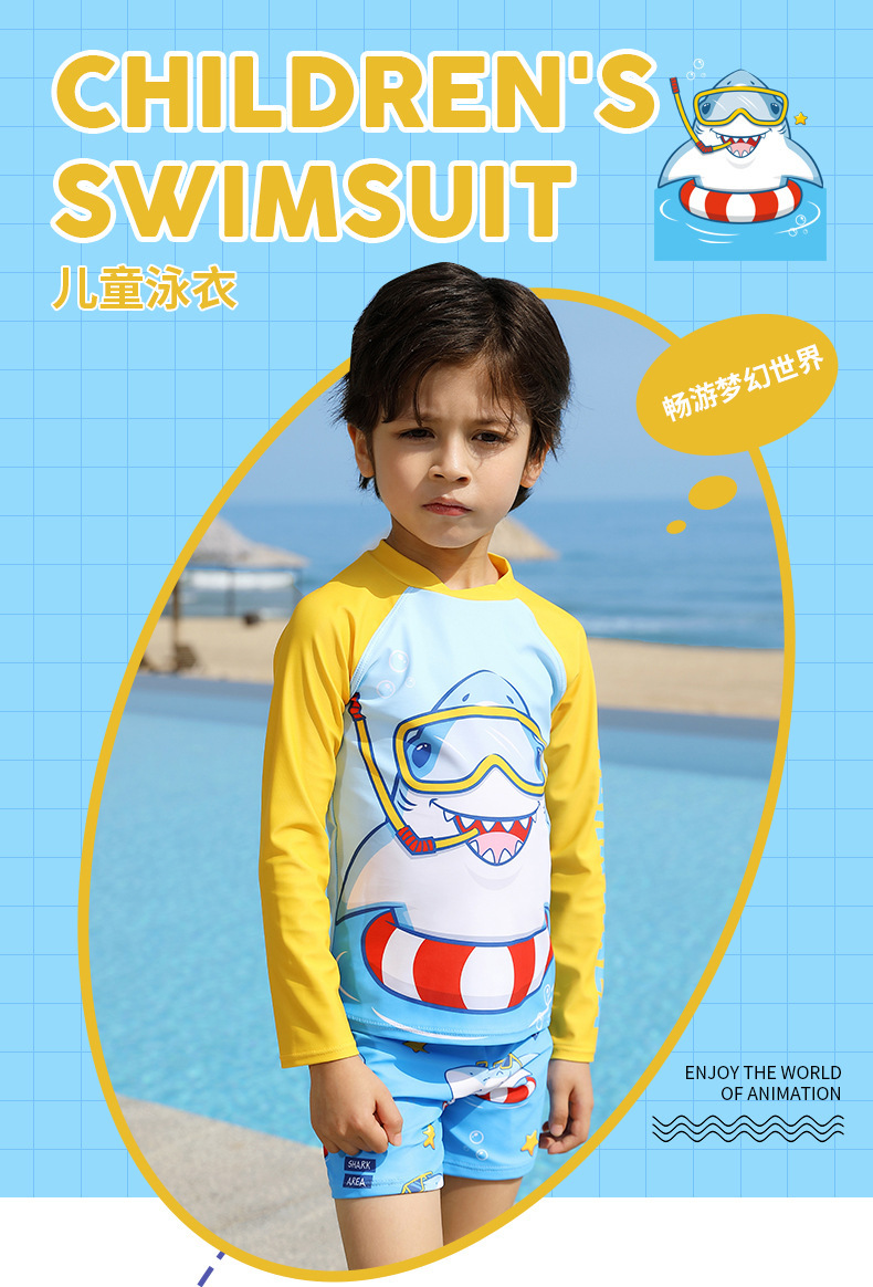국경 간 어린이 수영복 수영 트렁크 세트 긴팔 복서 보수적 인 태양 보호 만화 어린이 분할 소년 수영복스토어 가기