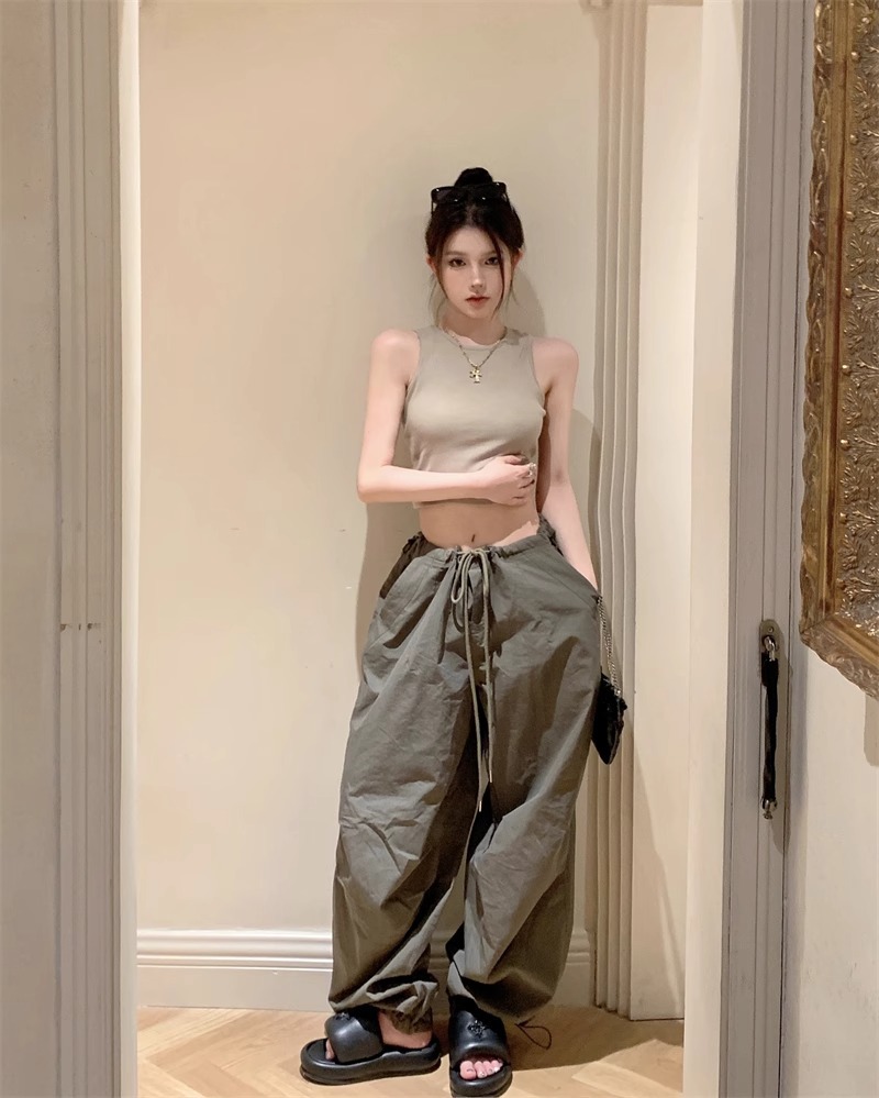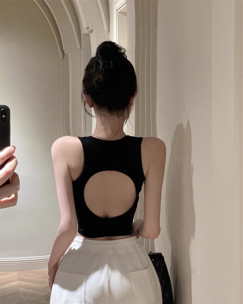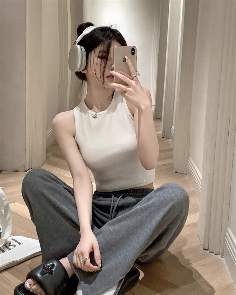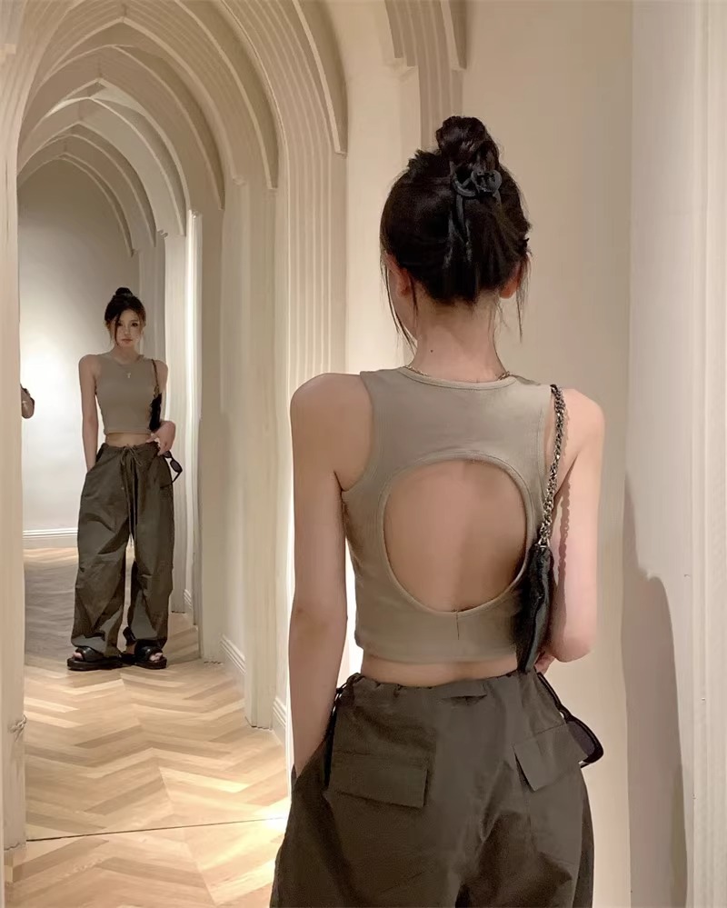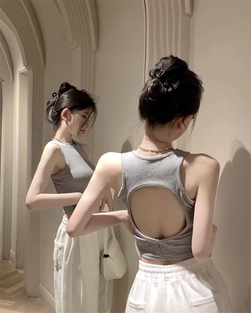 회색 아름다운 뒤 I 자형 작은 카미 솔 조끼 여성 여름 스파이스 소녀 내부 입고 외부 착용 짧은 소매 없는 백탑스토어 가기