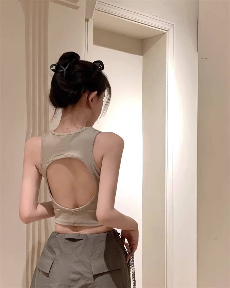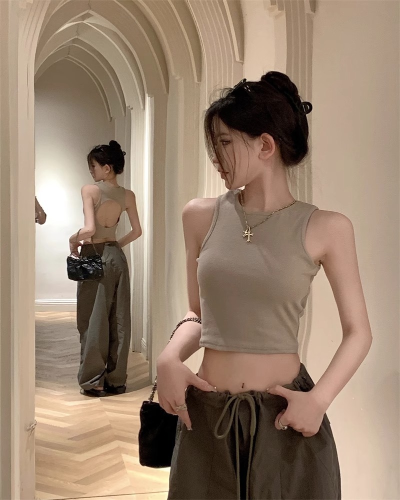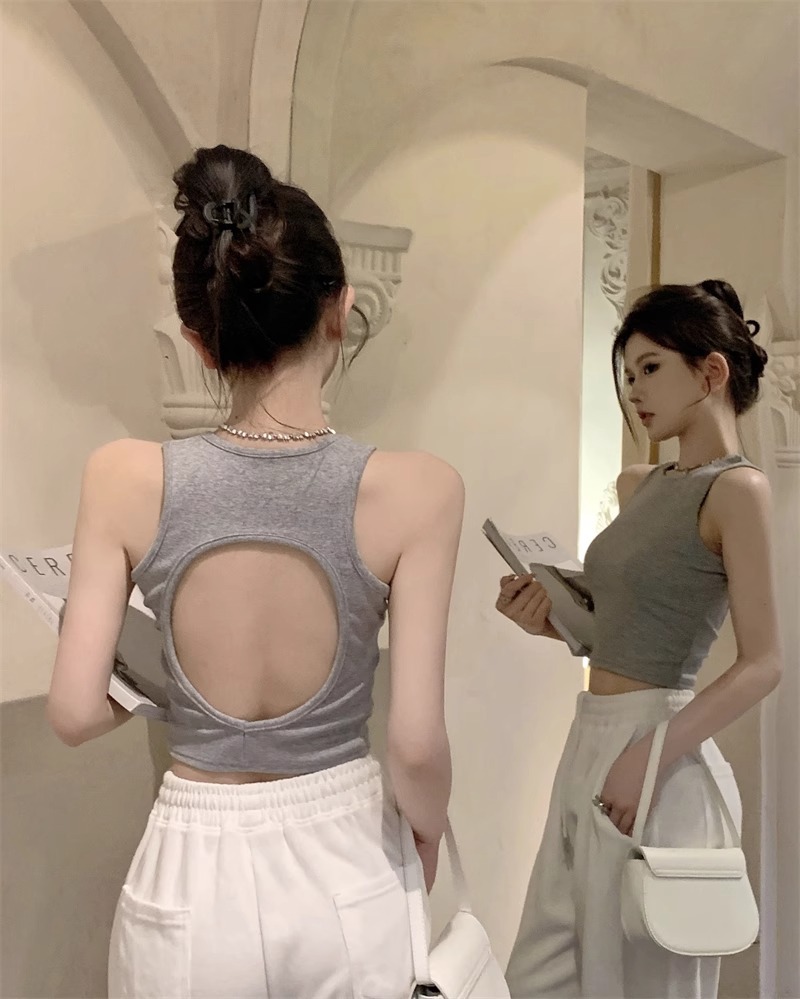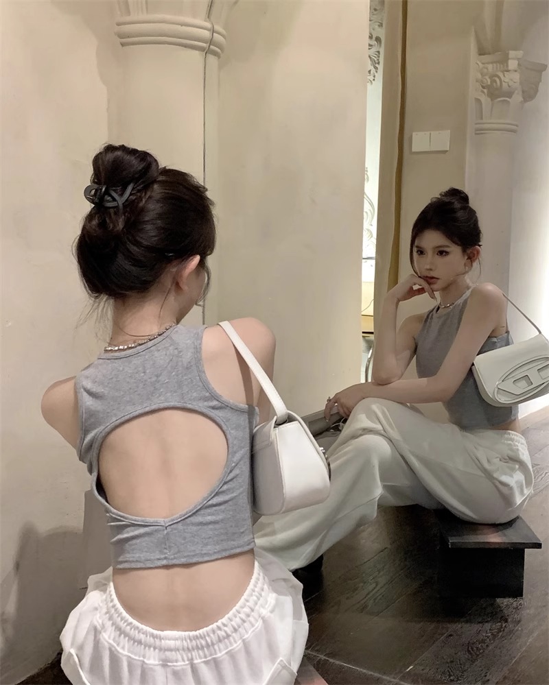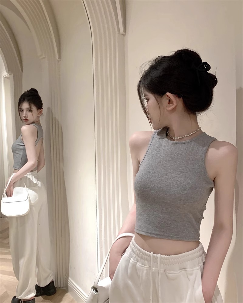 회색 아름다운 뒤 I 자형 작은 카미 솔 조끼 여성 여름 스파이스 소녀 내부 입고 외부 착용 짧은 소매 없는 백탑
