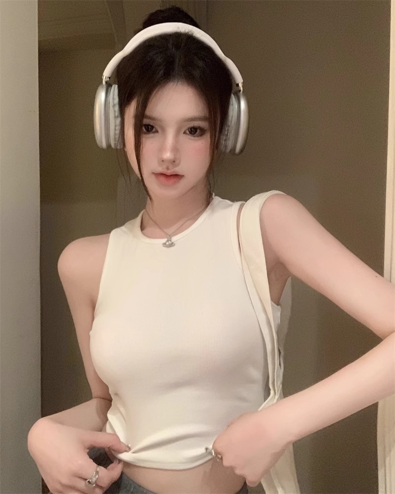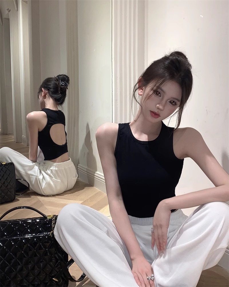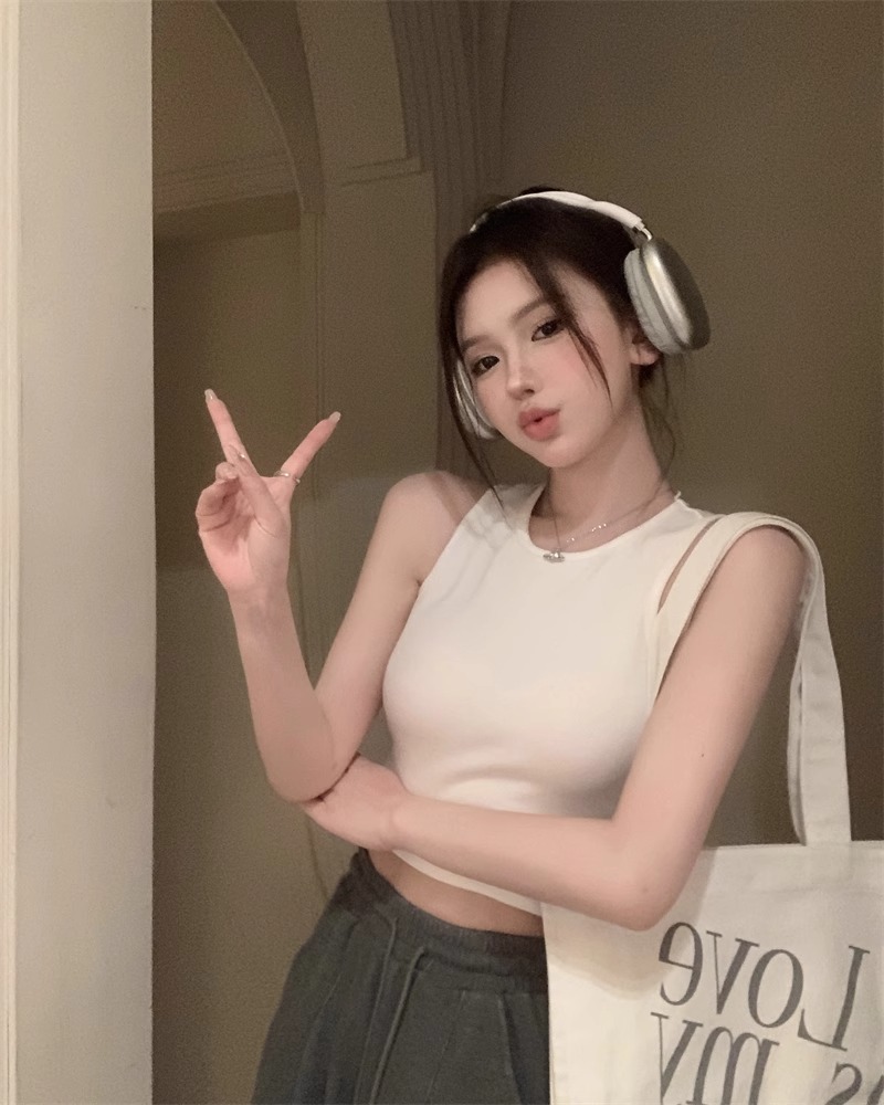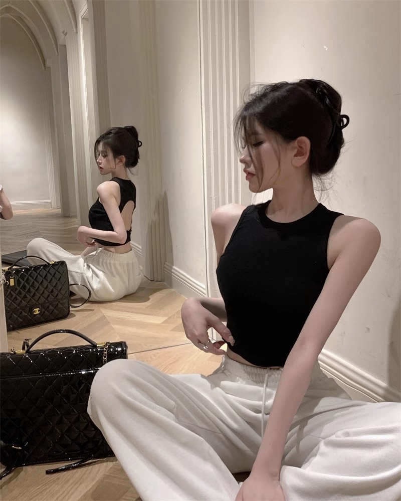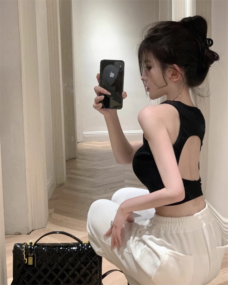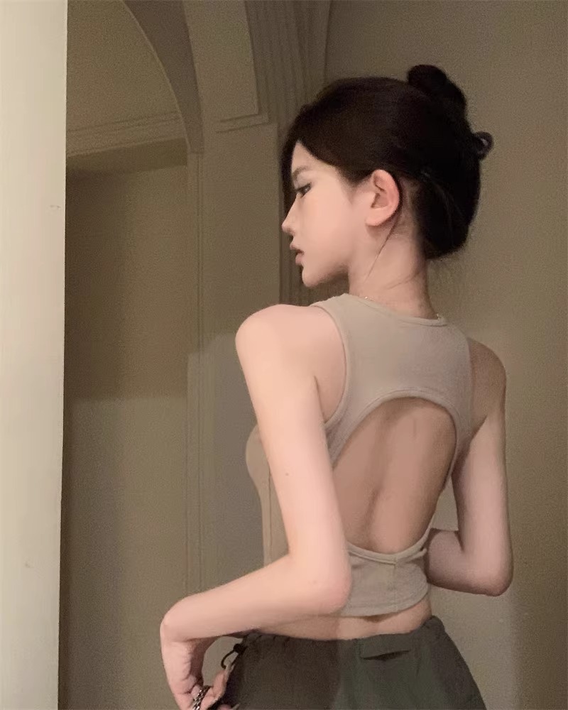 회색 아름다운 뒤 I 자형 작은 카미 솔 조끼 여성 여름 스파이스 소녀 내부 입고 외부 착용 짧은 소매 없는 백탑