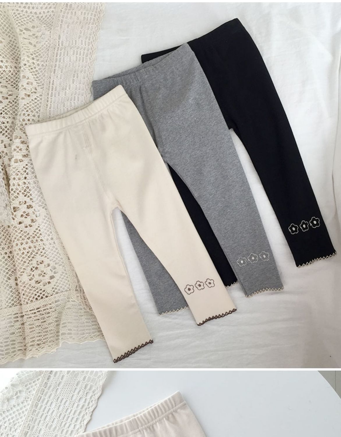 새로운 2024 봄과 가을 소녀 세 작은 꽃 레깅스 어린이 바지 아기 소녀 패션 유행 바지스토어 가기