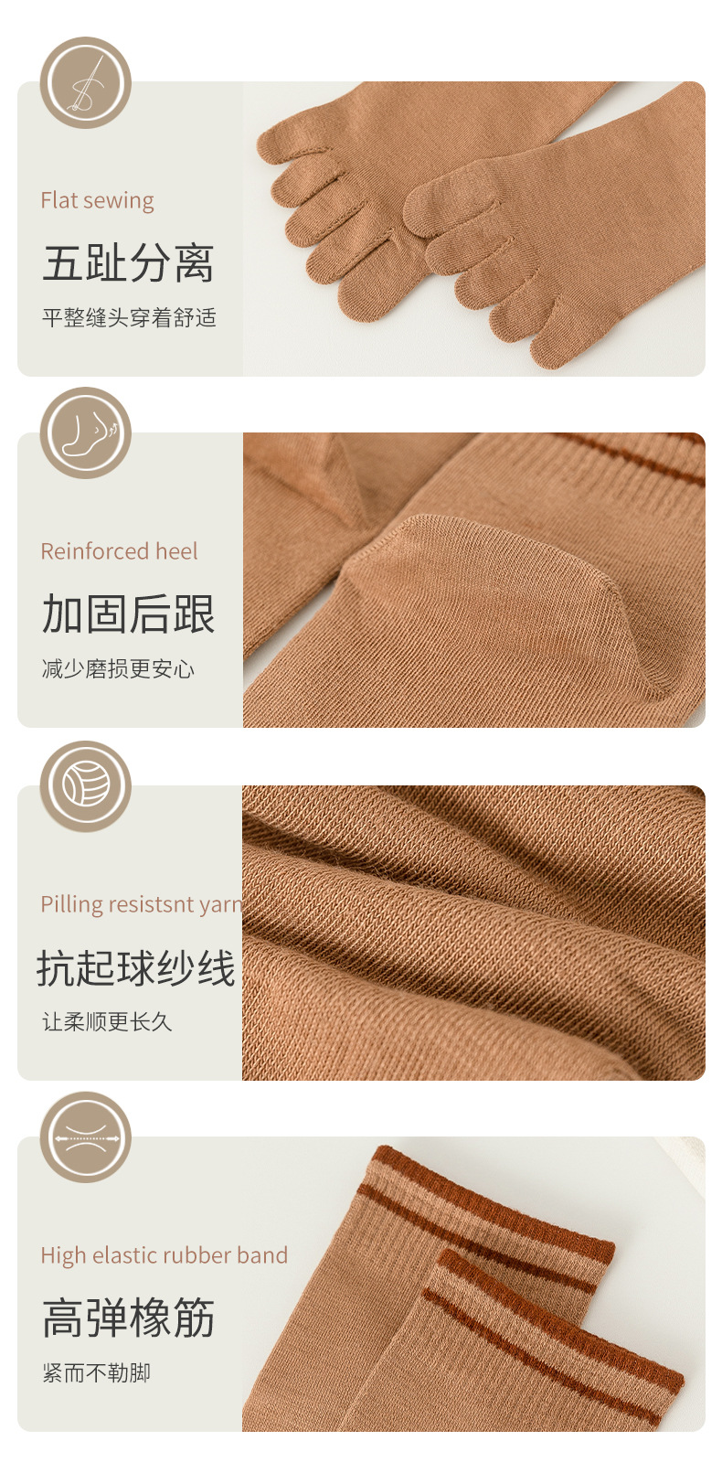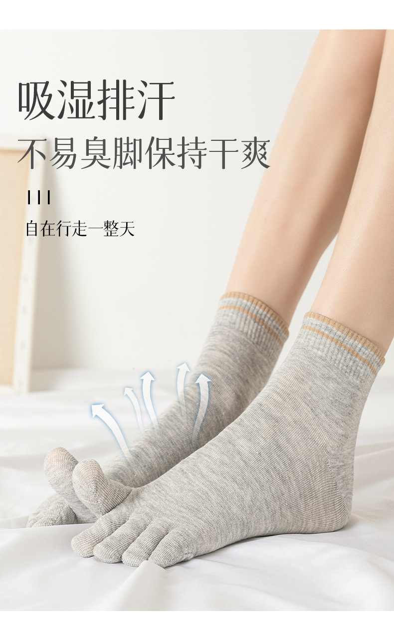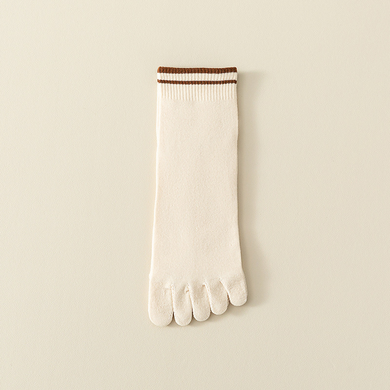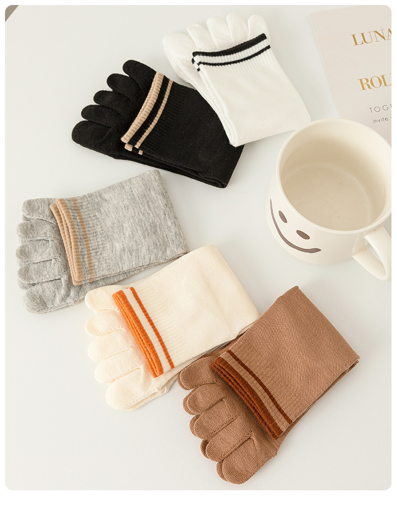 5 손가락 양말 숙녀 봄과 여름 스트라이프 미드 튜브 양말 안티 베리베리 미드 튜브면 양말 발가락 통기성 땀 흡수 스포츠 양말