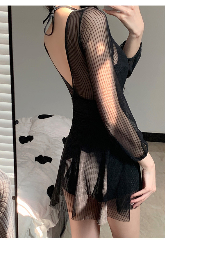 여성 수영복 2025 여름 인터넷 연예인 새로운 원피스 스커트 스타일 살을 덮고 슬리밍 레이스 긴팔 작은 가슴 푸시 업 휴가 수영복