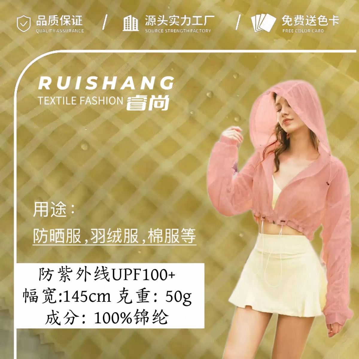 자외선 차단 UPF100 태양 보호 의류 직물 방수 태양 보호 의류 격자 무늬 패브릭 다운 재킷 윈드브레이커 패브릭