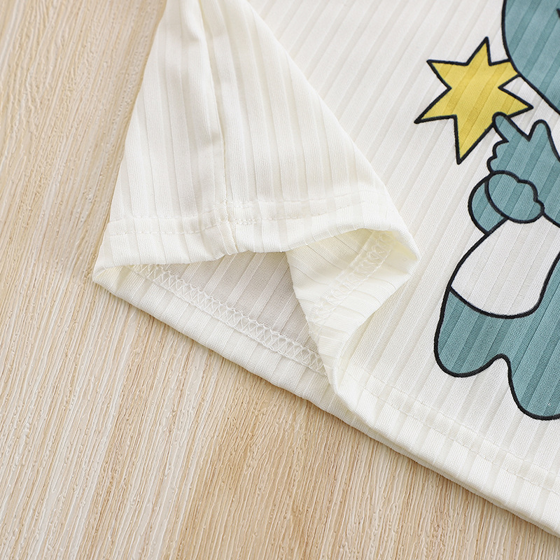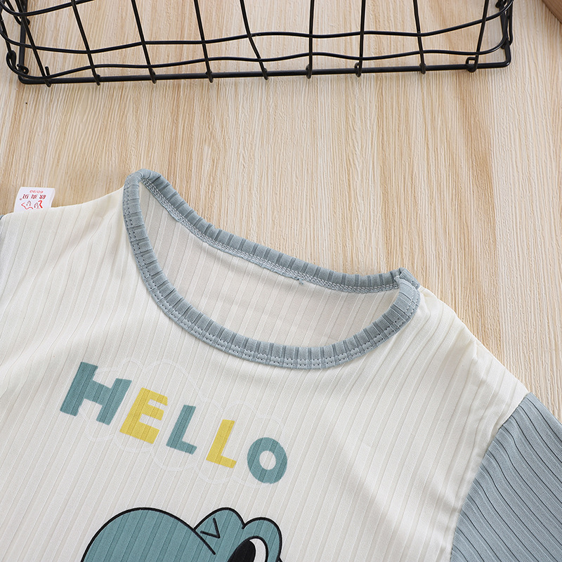 여름 어린이 반팔 티셔츠 세트 소년 잠옷 홈 옷 어린이 매일 레저 에어컨 옷 통기성 폭발