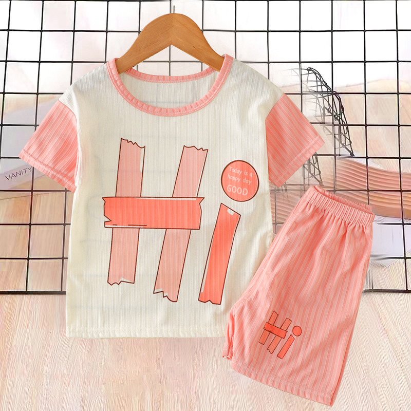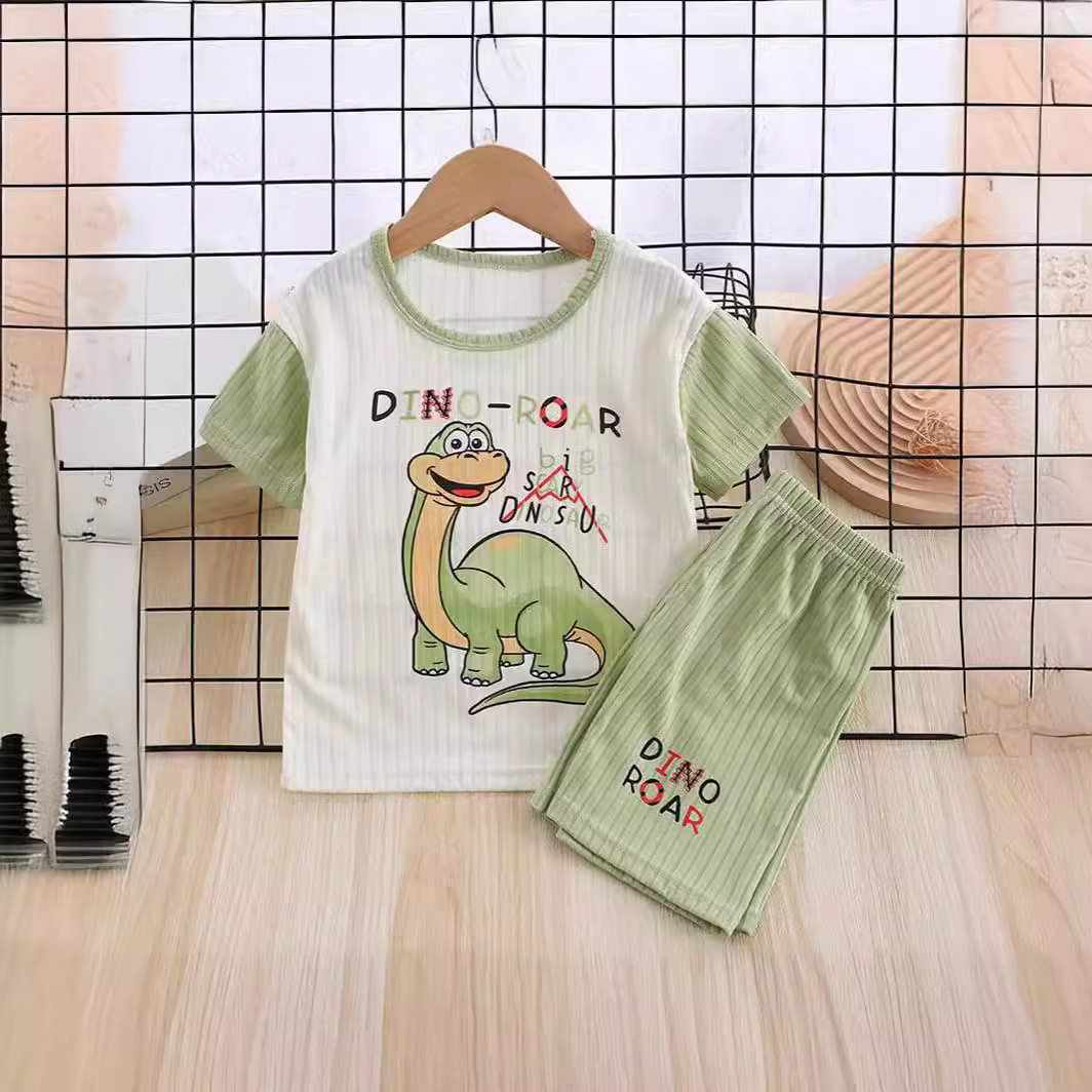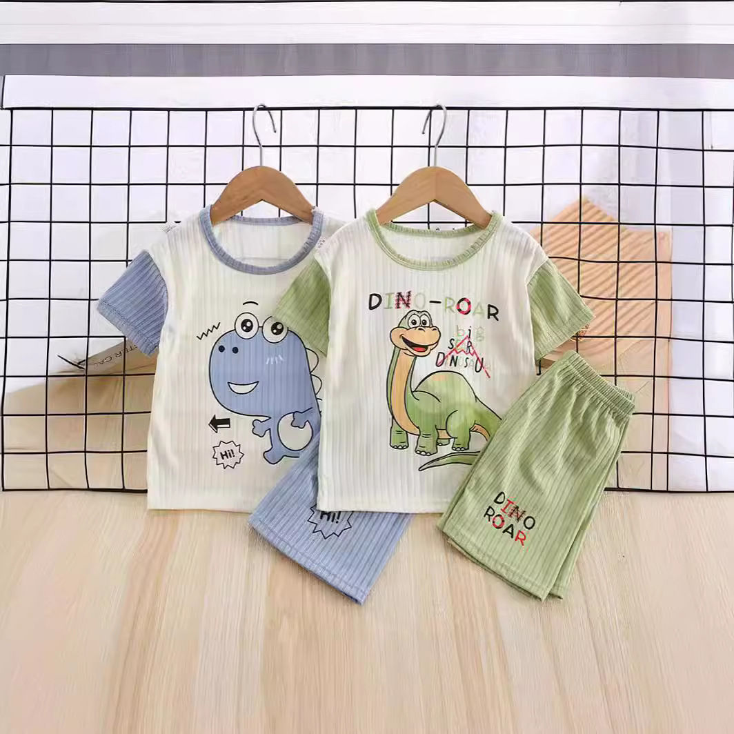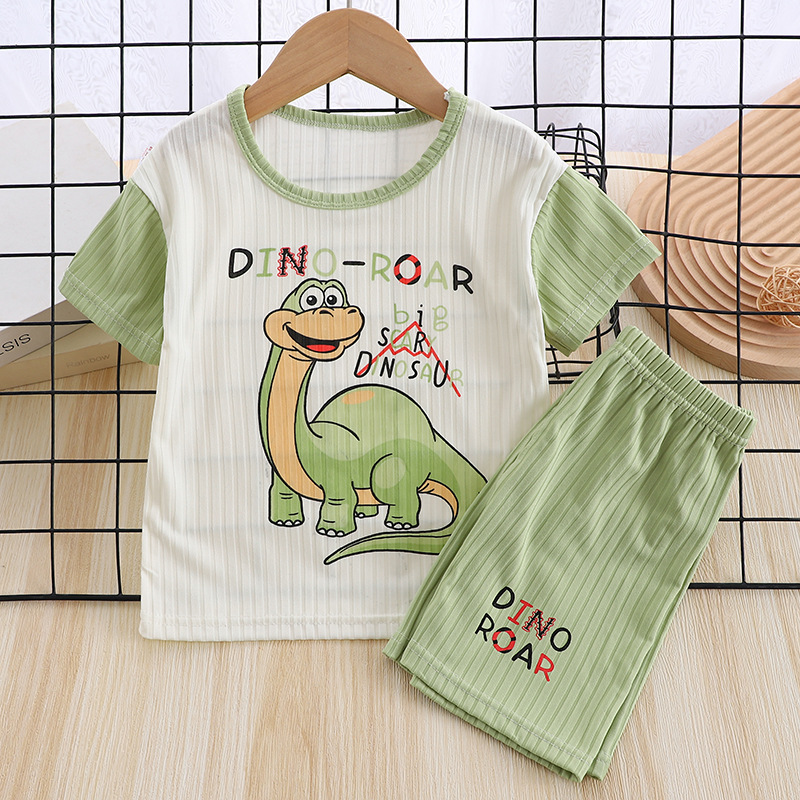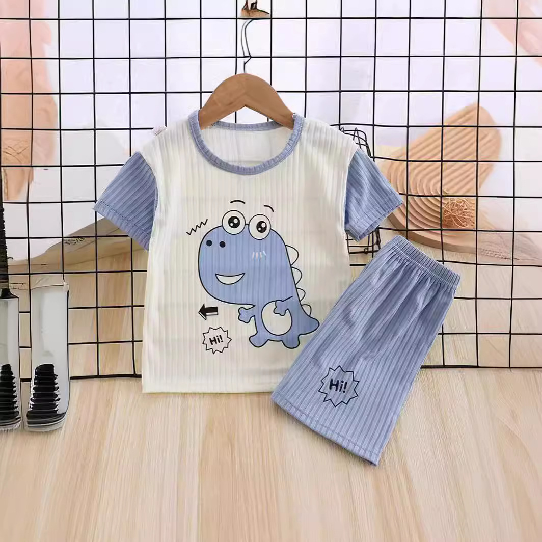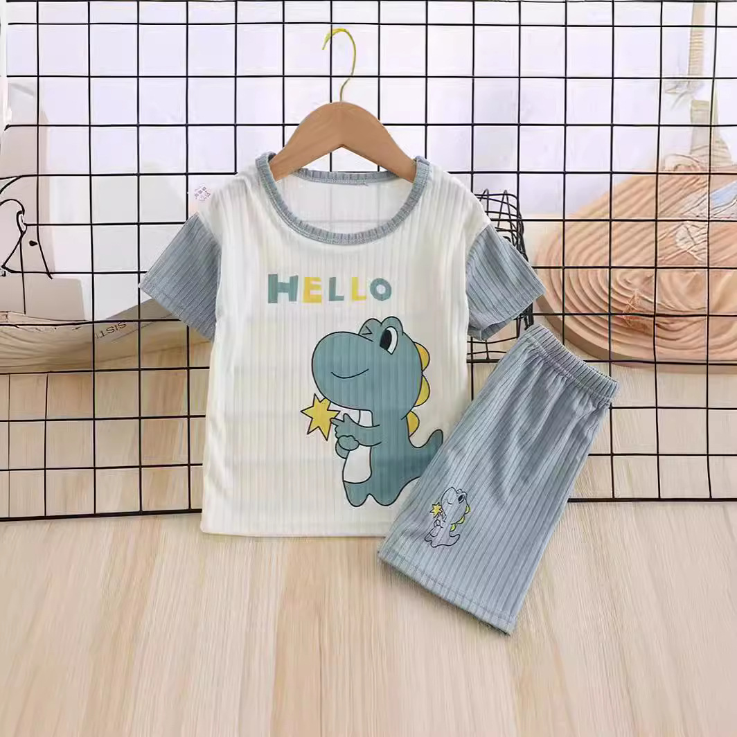 여름 어린이 반팔 티셔츠 세트 소년 잠옷 홈 옷 어린이 매일 레저 에어컨 옷 통기성 폭발스토어 가기