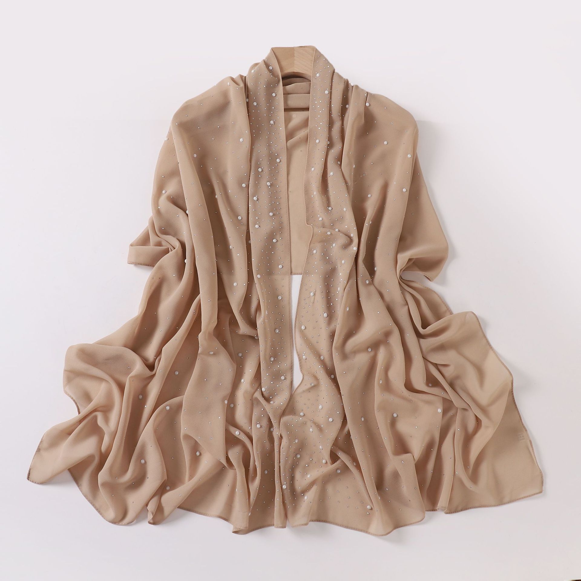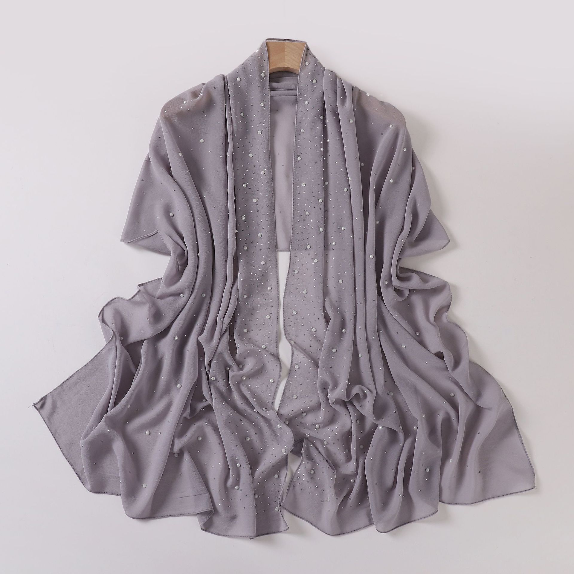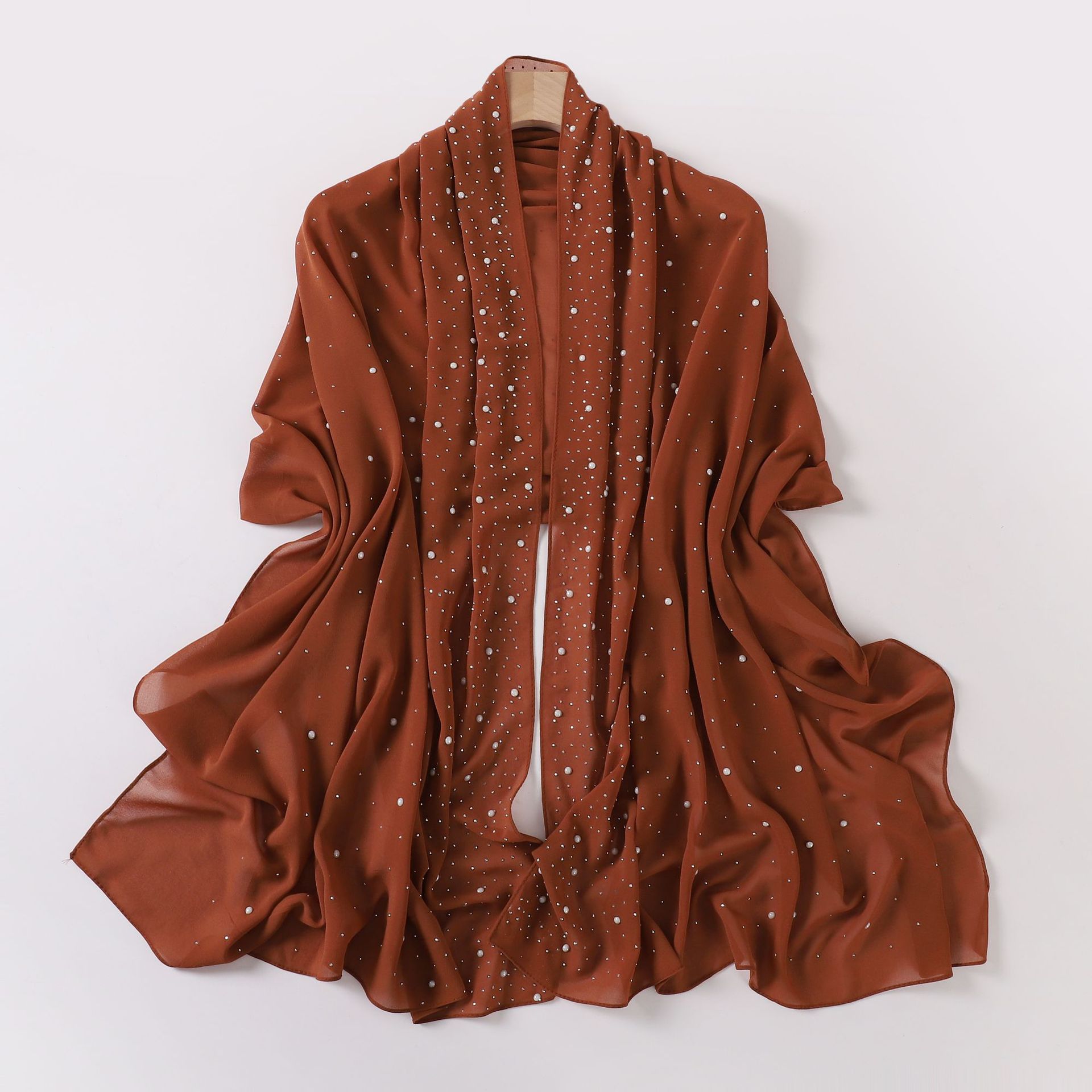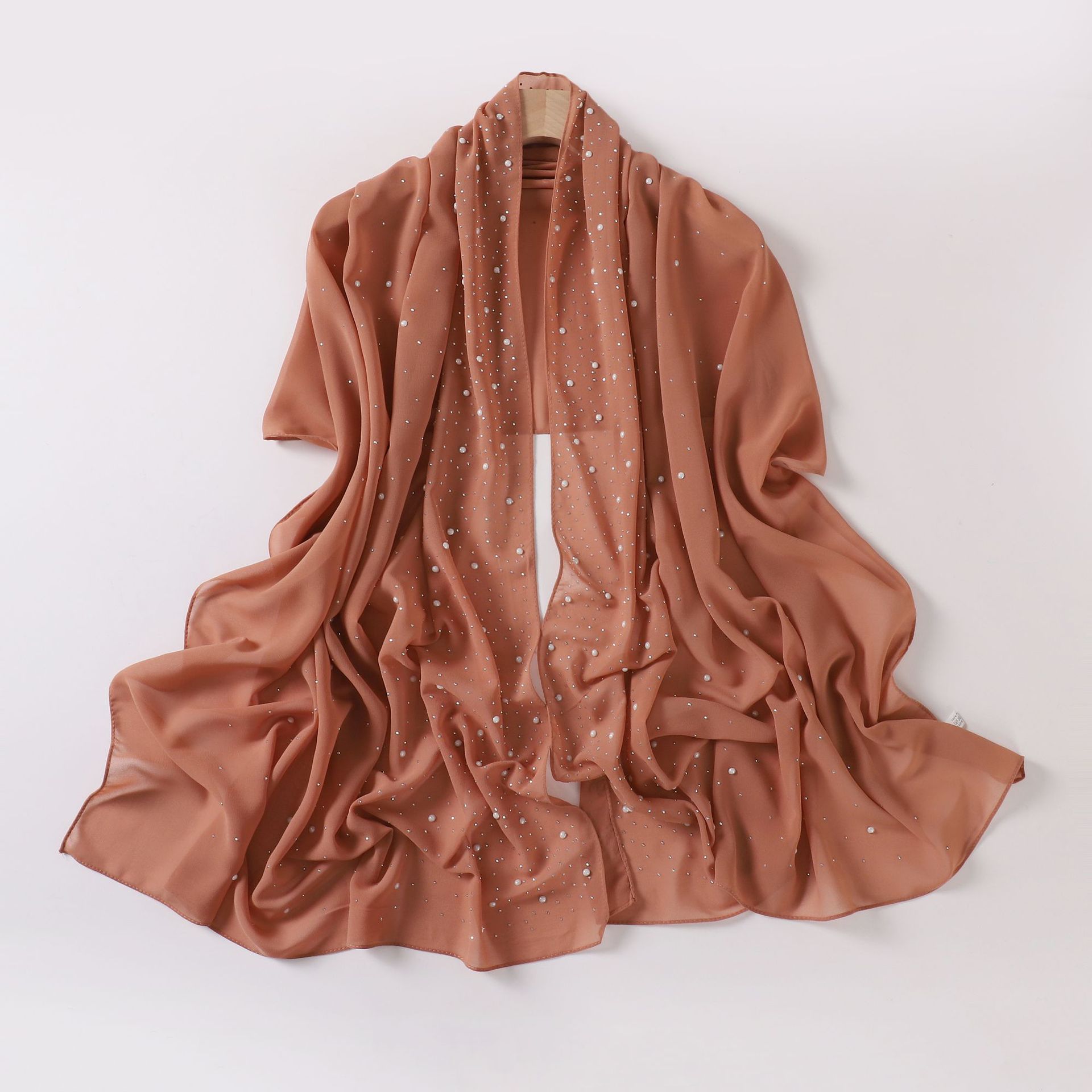 국경 간 도매 진주 쉬폰 세라믹 석판 핫 드릴 롱 스카프 Hui 스카프 인도네시아 중동 아프리카 터번