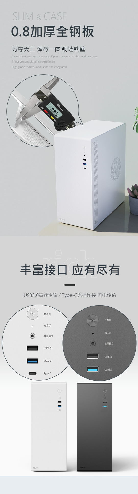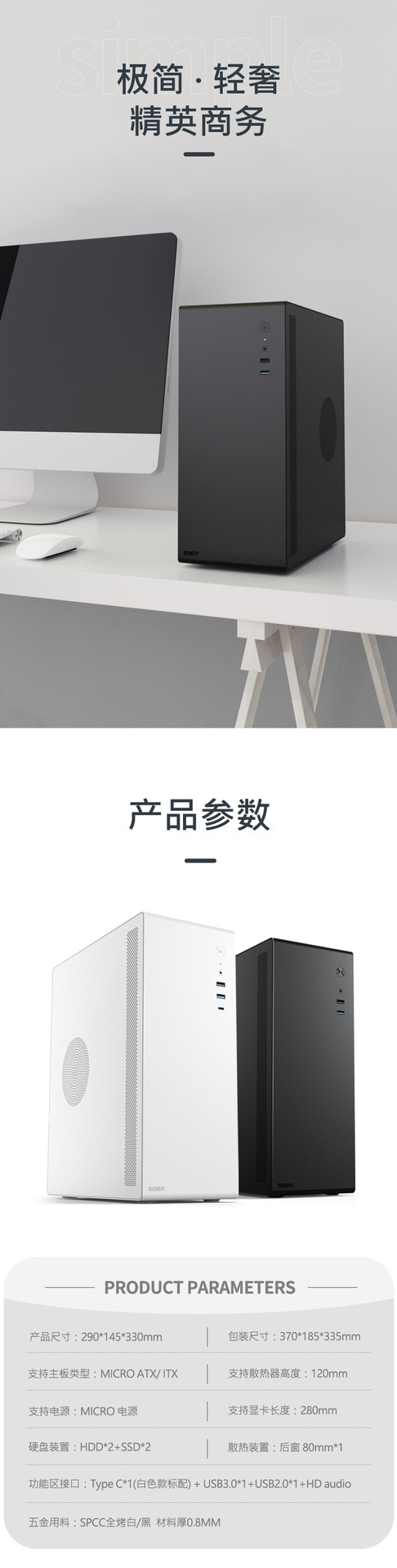 홈 오피스 학습 컴퓨터 케이스 휴대용 컴퓨터 케이스 미니 컴퓨터 작은 케이스 전원 공급 장치/200W