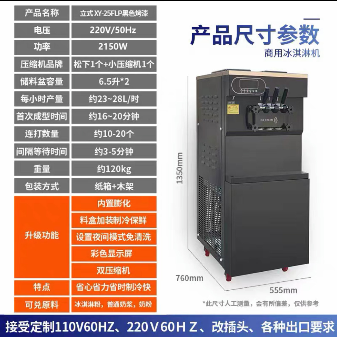 부드러운 아이스크림 기계 상업 작은 큰 아이스크림 기계 짧은 알림 신선한 달콤한 콘 기계 아이스크림 기계 수직
