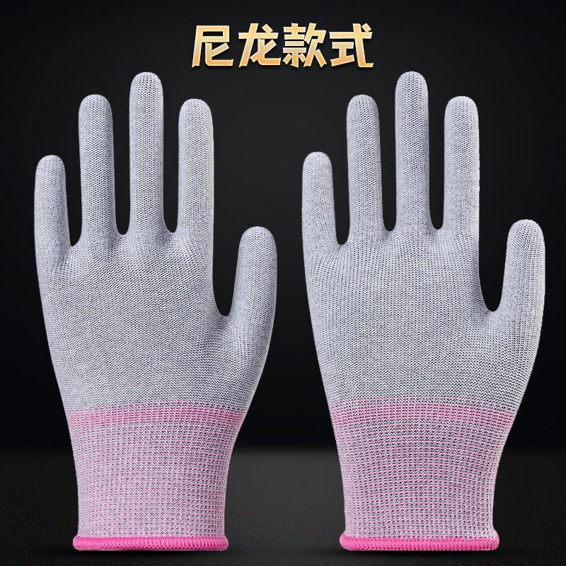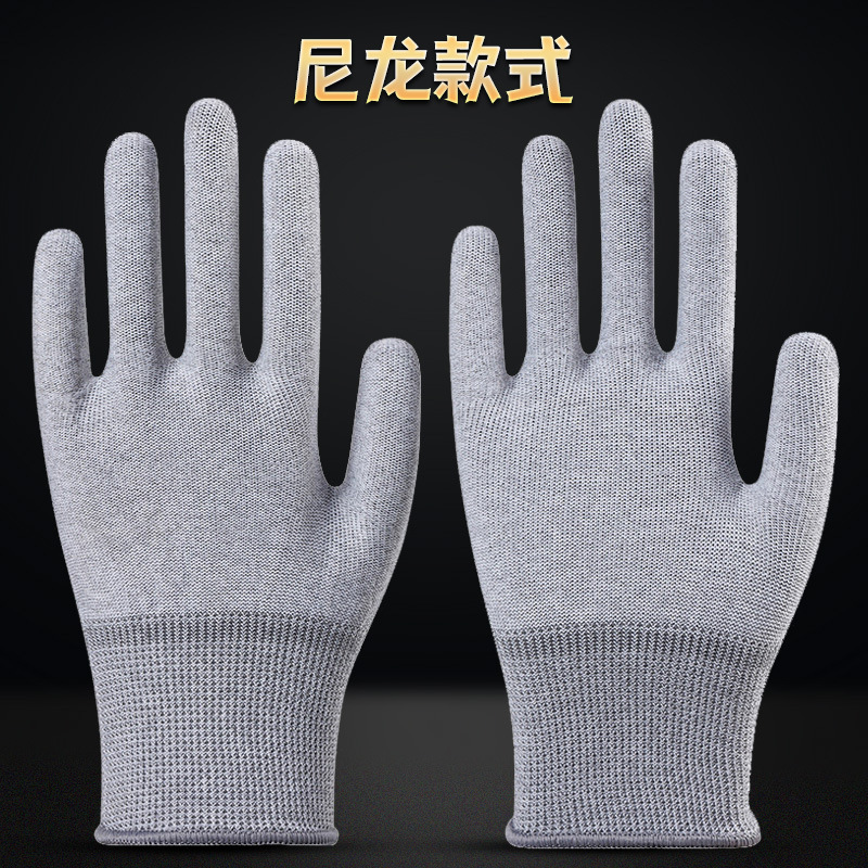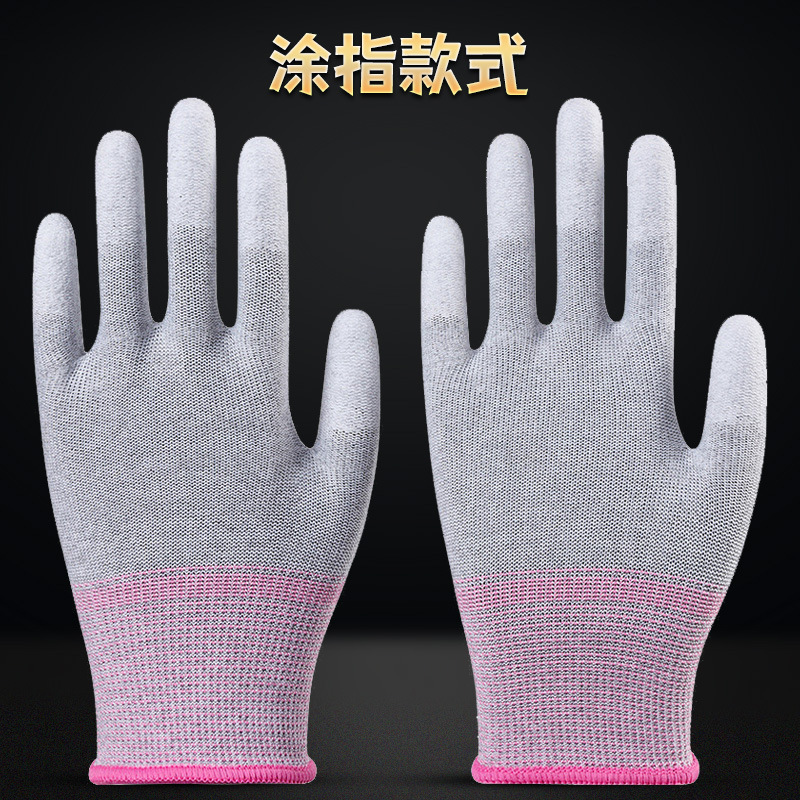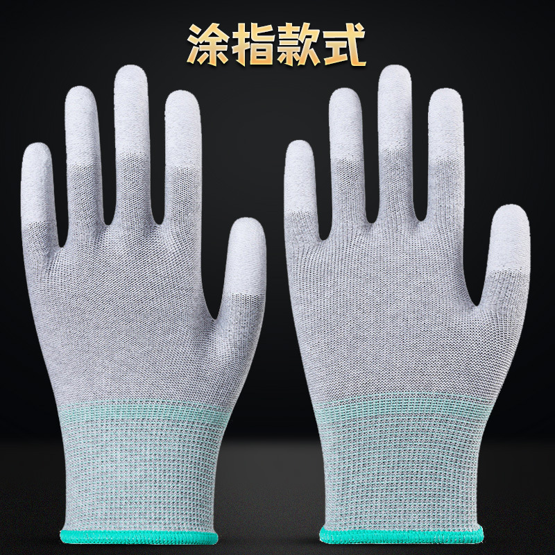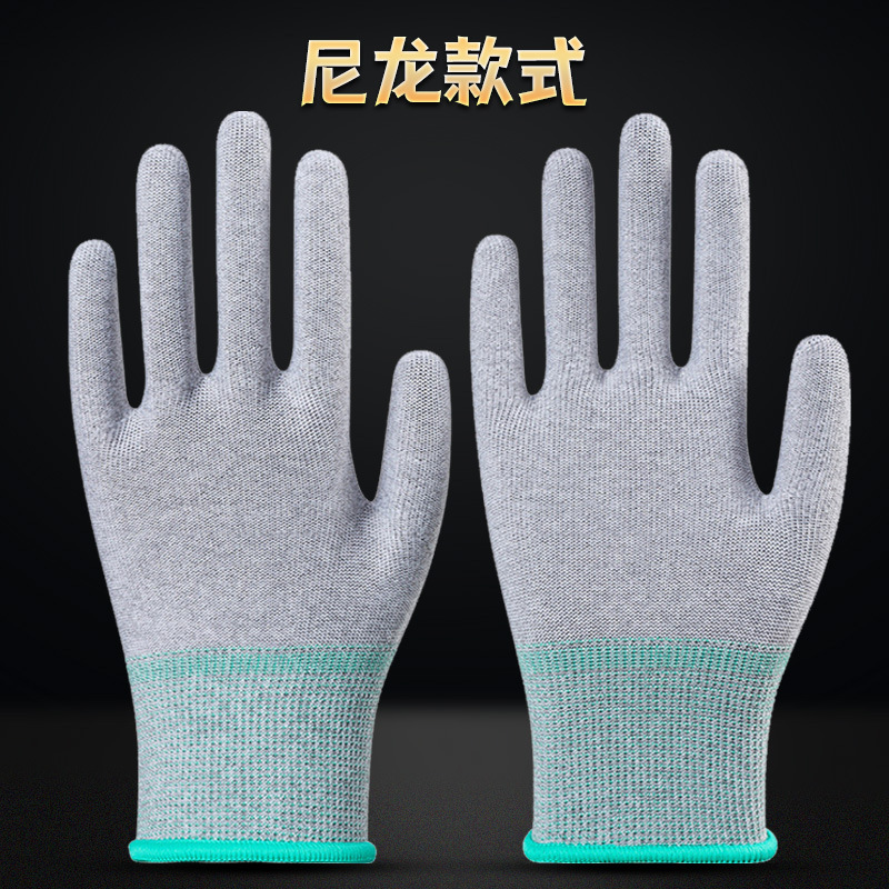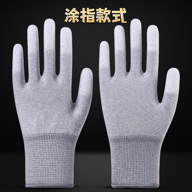 정전기 방지 나일론 장갑 PU 손가락 코팅 13 핀 탄소 섬유 코팅 전자 공장 노동 보호 작업 내마모성 통기성 미끄럼 방지
